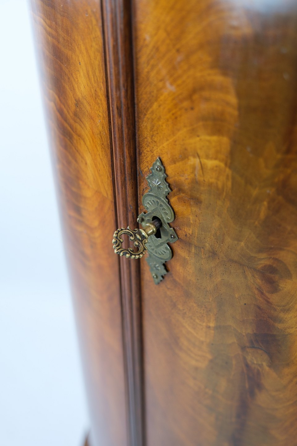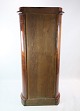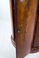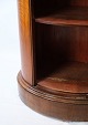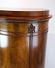 Antikt ovalt piedestalskab i mahogni med udskæringer og smuk struktur i træet fra omkring år 1840'erne.
