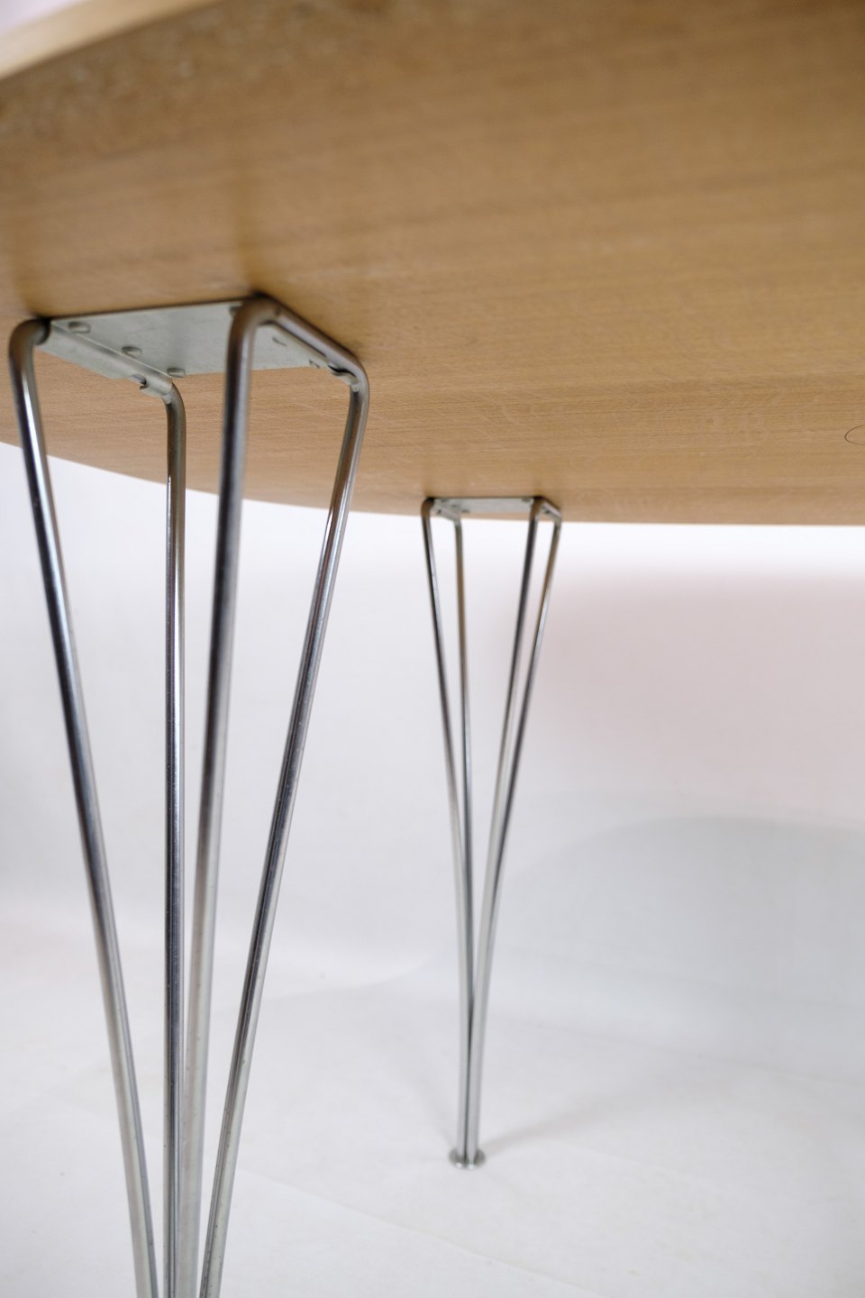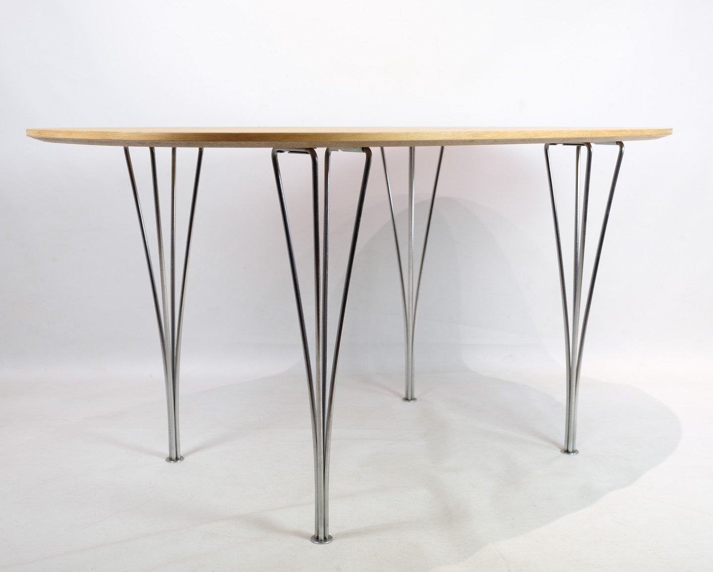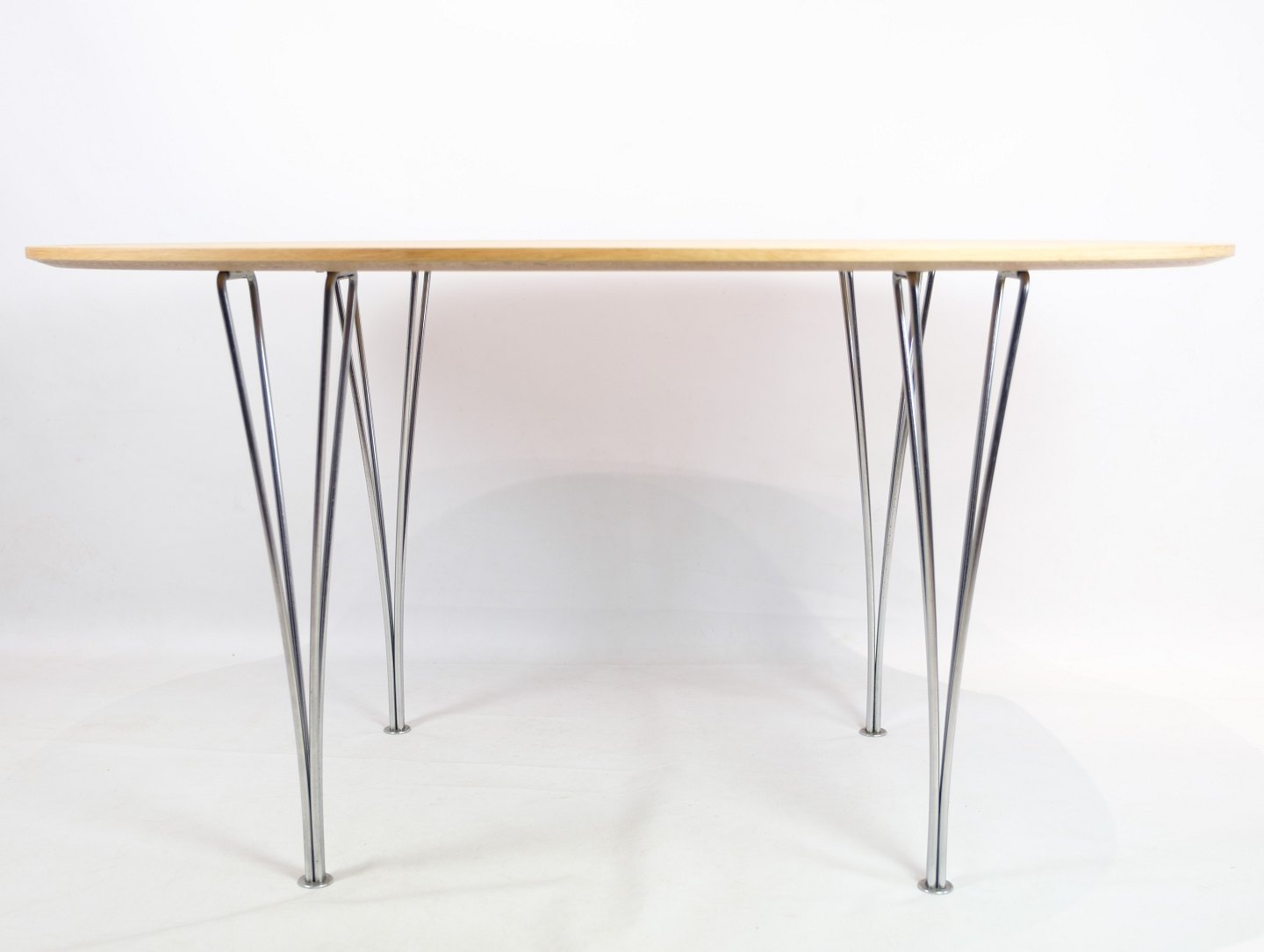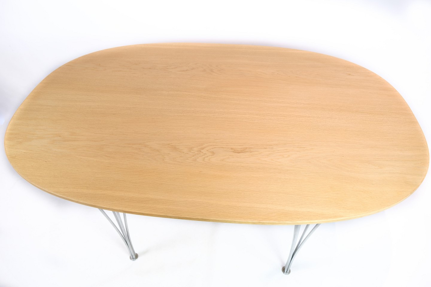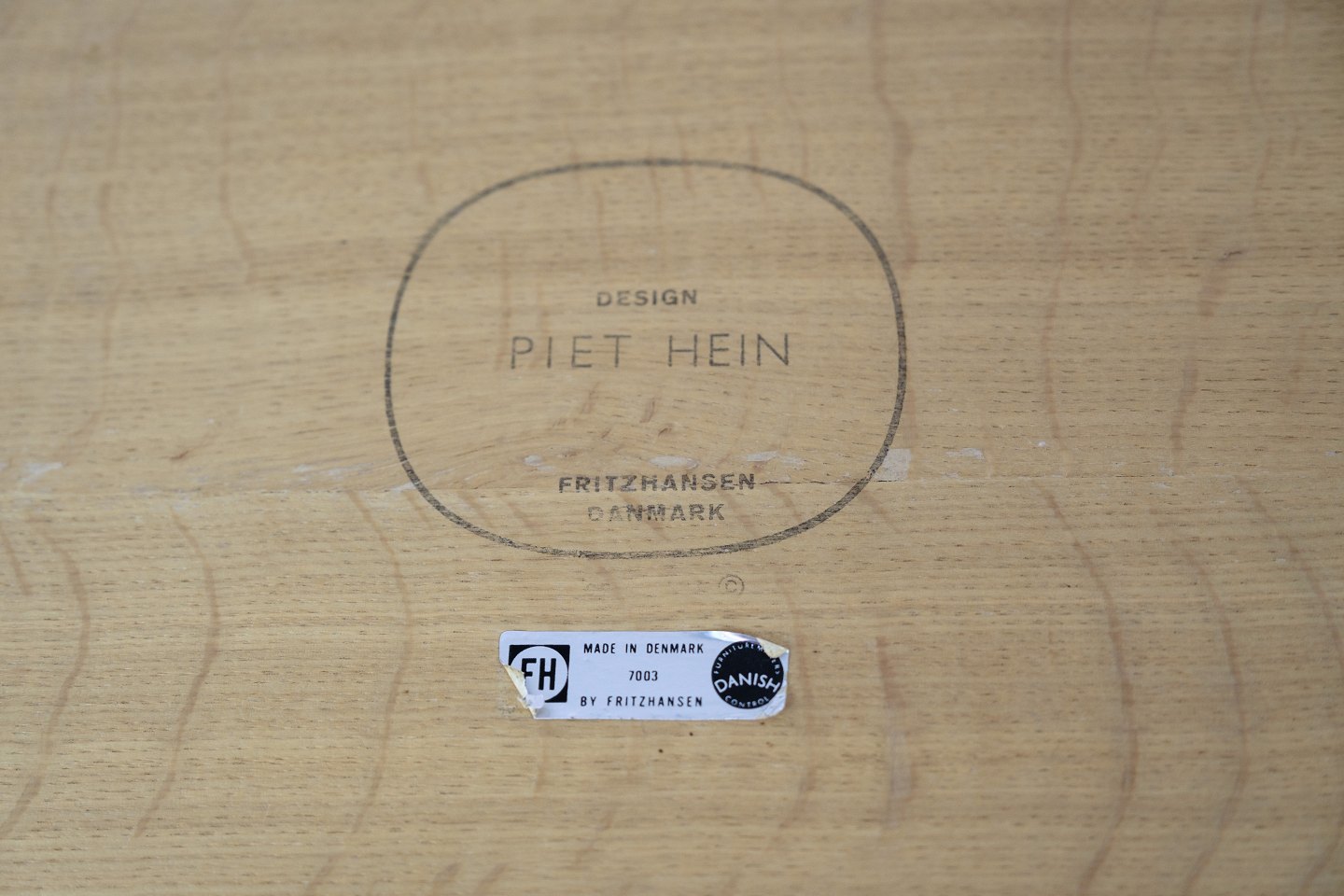 SolgtSpisebord, model B611 i lys egetræ, designet af Piet Hein og Bruno mathsson i 1968 og fremstillet af Fritz Hansen. Et vintage spisebord med original label i meget fin stand.