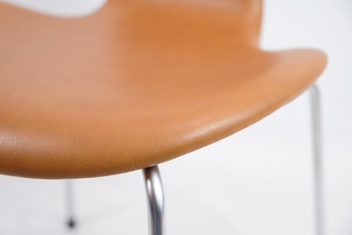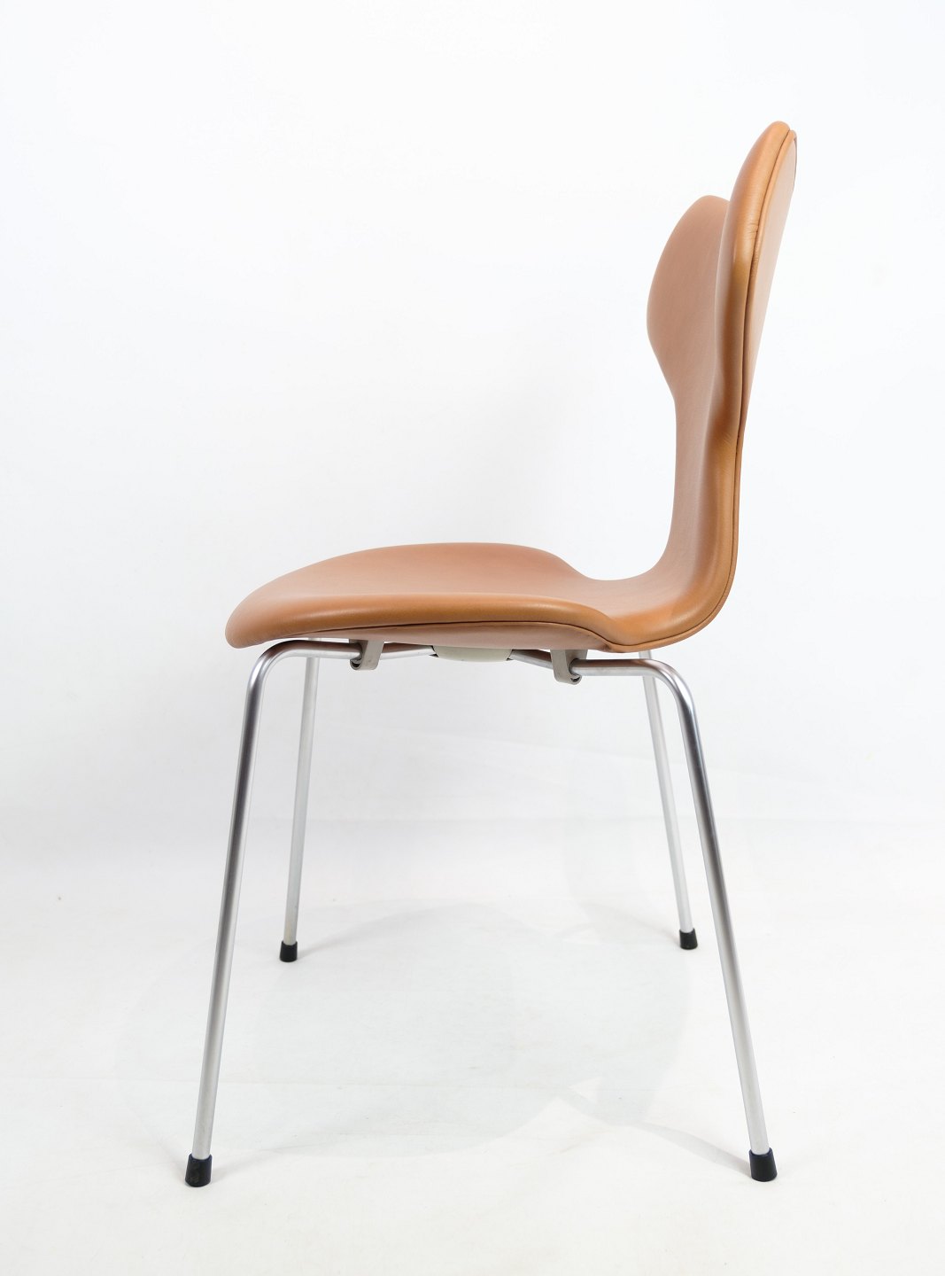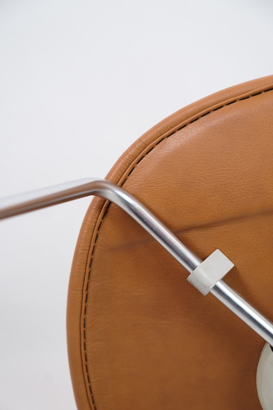 Grand Prix-stolen er kendt for sin smukke og højkvalitets læderindtræk, og cognaclæderet, der er brugt i denne model, er ingen undtagelse. Cognaclæderet er af højeste kvalitet, og dets varme, rige farve tilføjer et strejf af elegance og sofistikering til stolen.