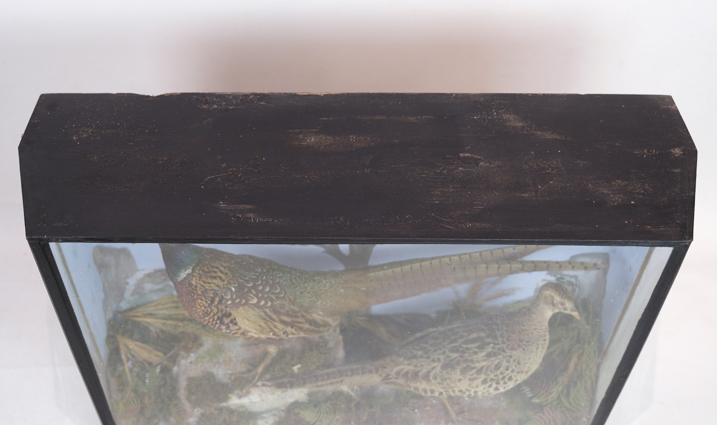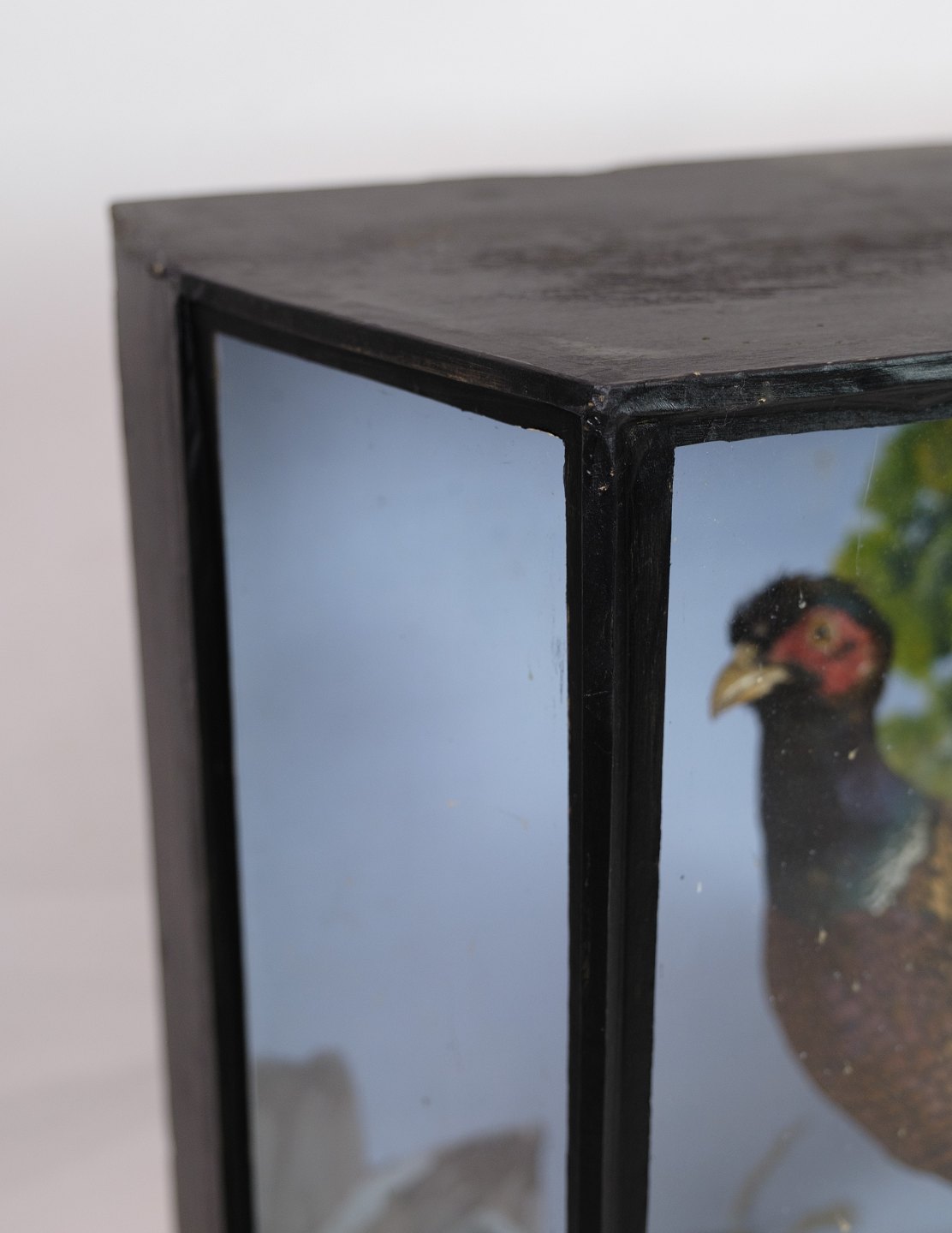 Malet udstilllings skab med fasaner fra omkring år 1960'erne.