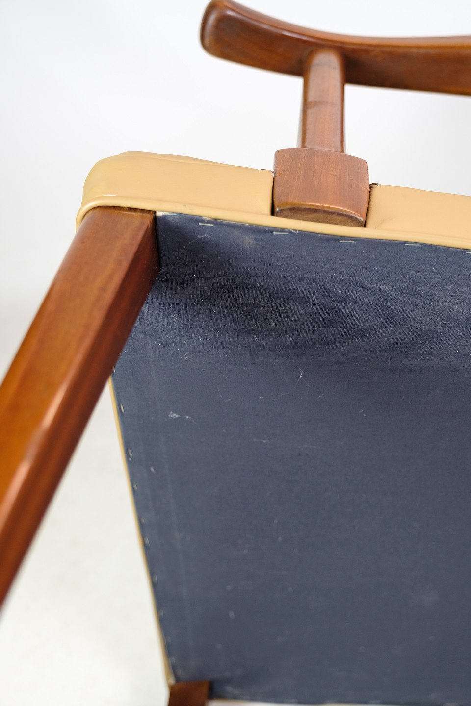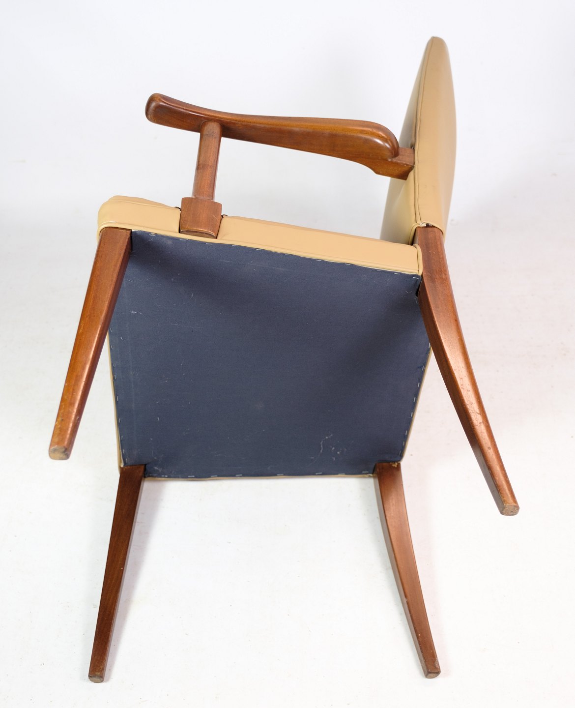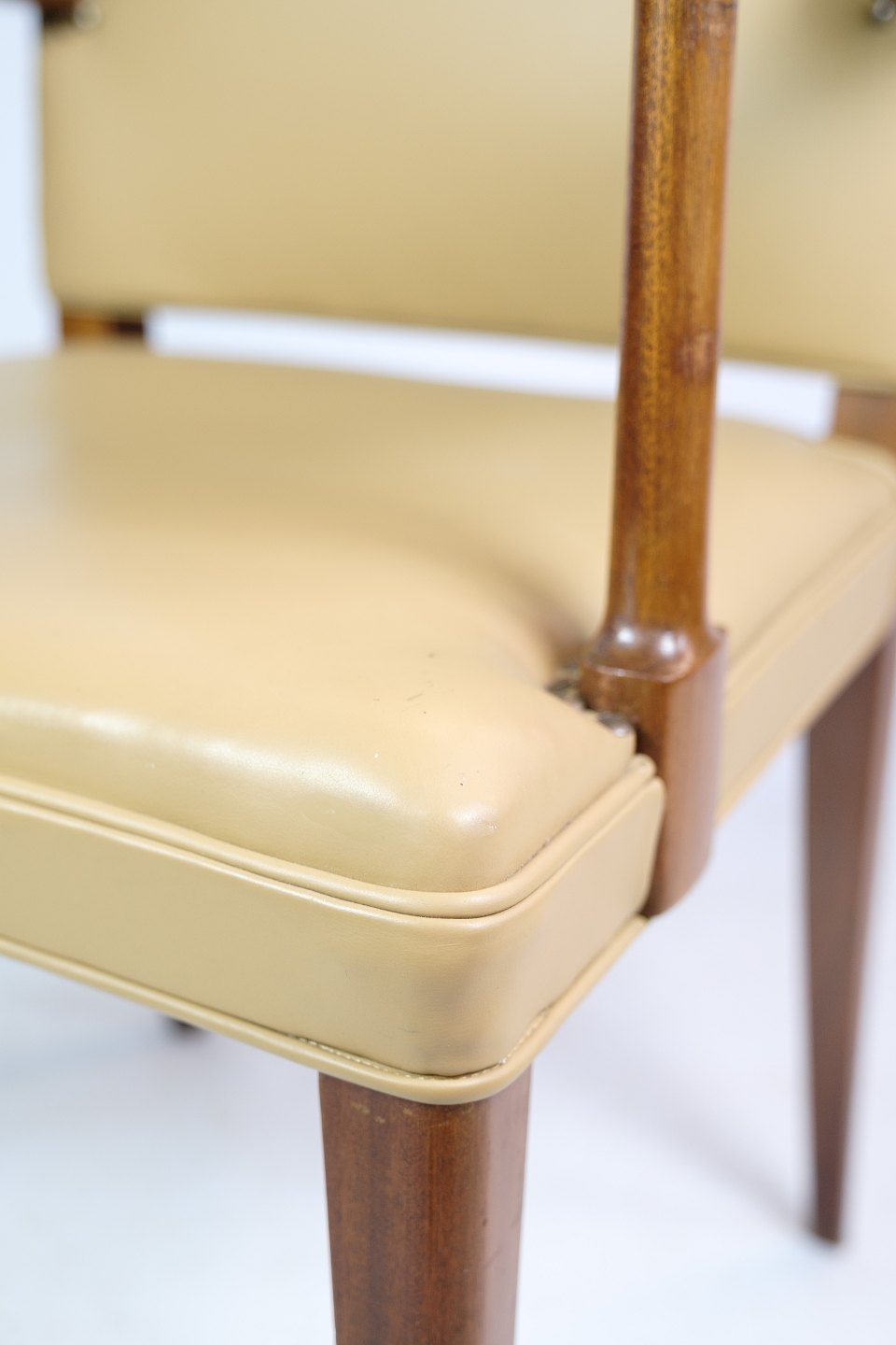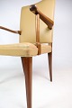 Armstol, designet af Jacob Kjær i træsorten mahogni med lyst ny polstret læder fra omkring 1950'erne. En stol med god sidde komfort og i meget fin stand.