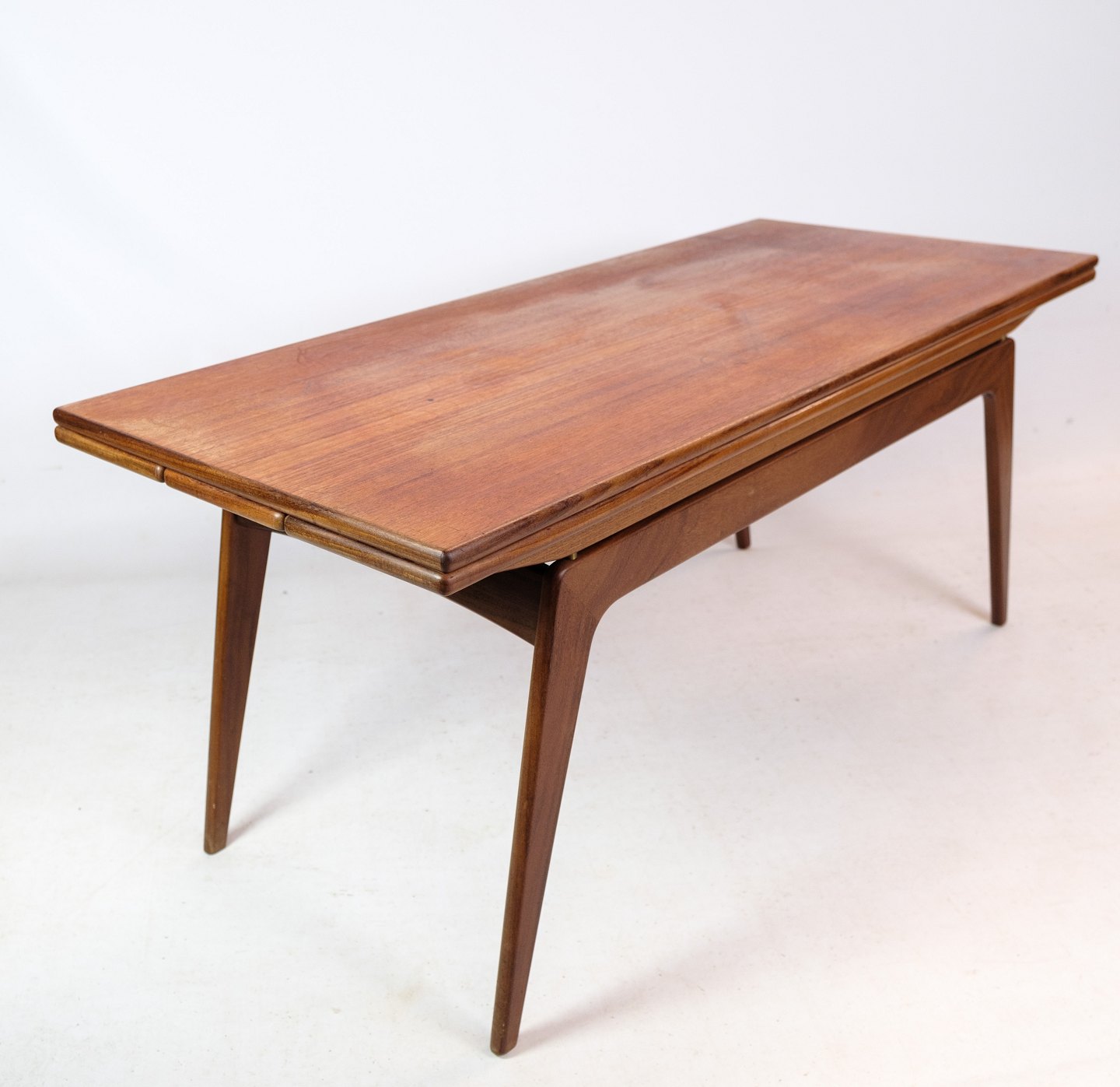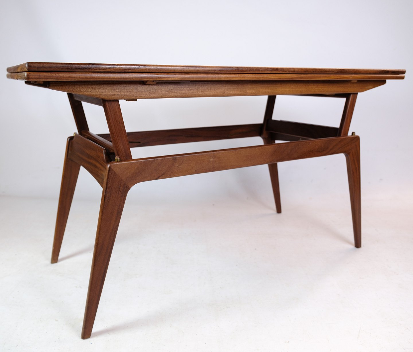 Sofabord / spisebord i træsorten teaktræ ofte kaldet Københavner bord fremstillet af dansk møbelproducent fra omkring 1960'erne.
