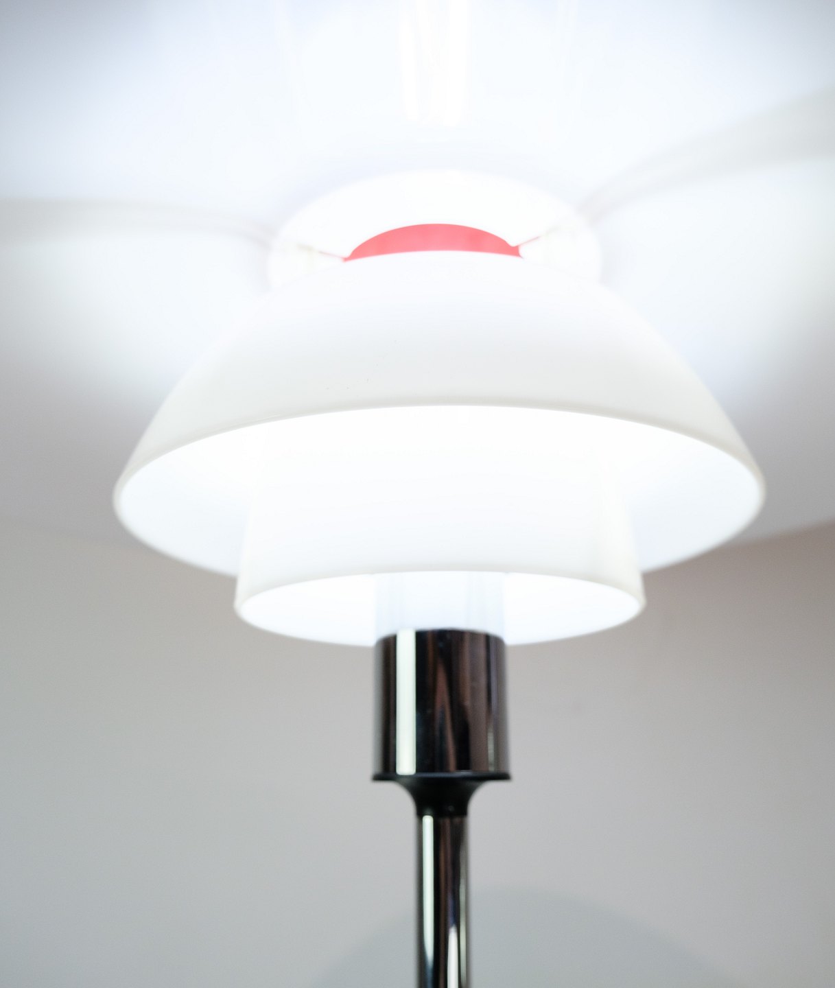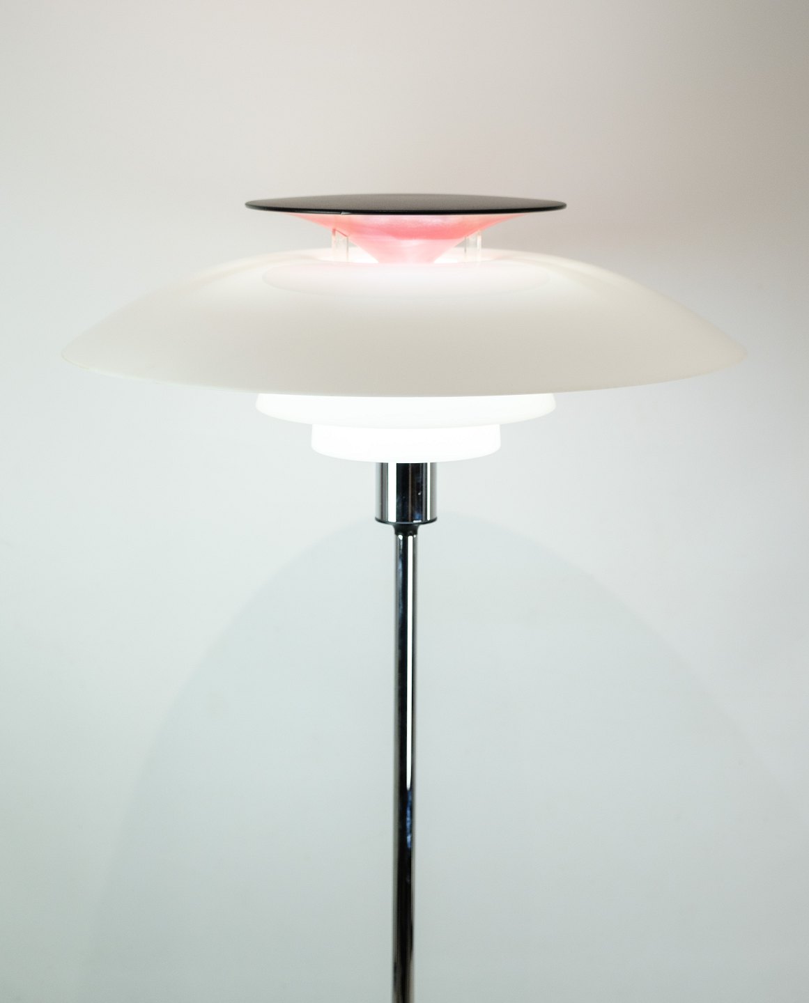 PH80 gulvlampe designet af Poul Henningsen og fremstillet af Louis Poulsen. Lampen blev introduceret i 1974 i anledning af Poul Henningsens 80 års fødselsdag.