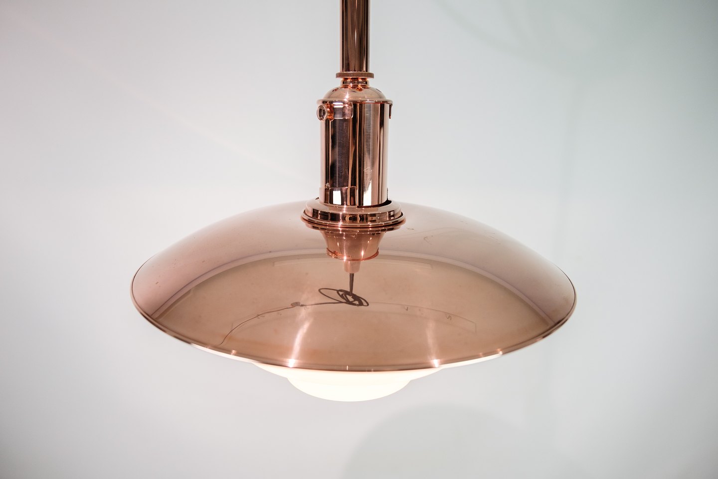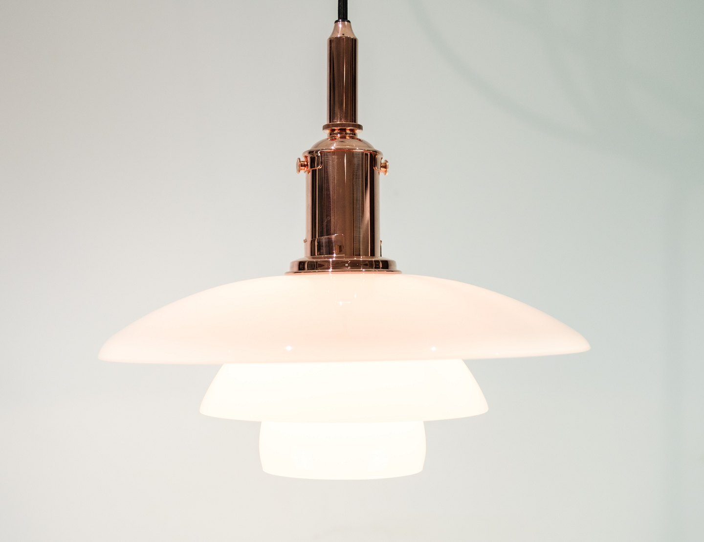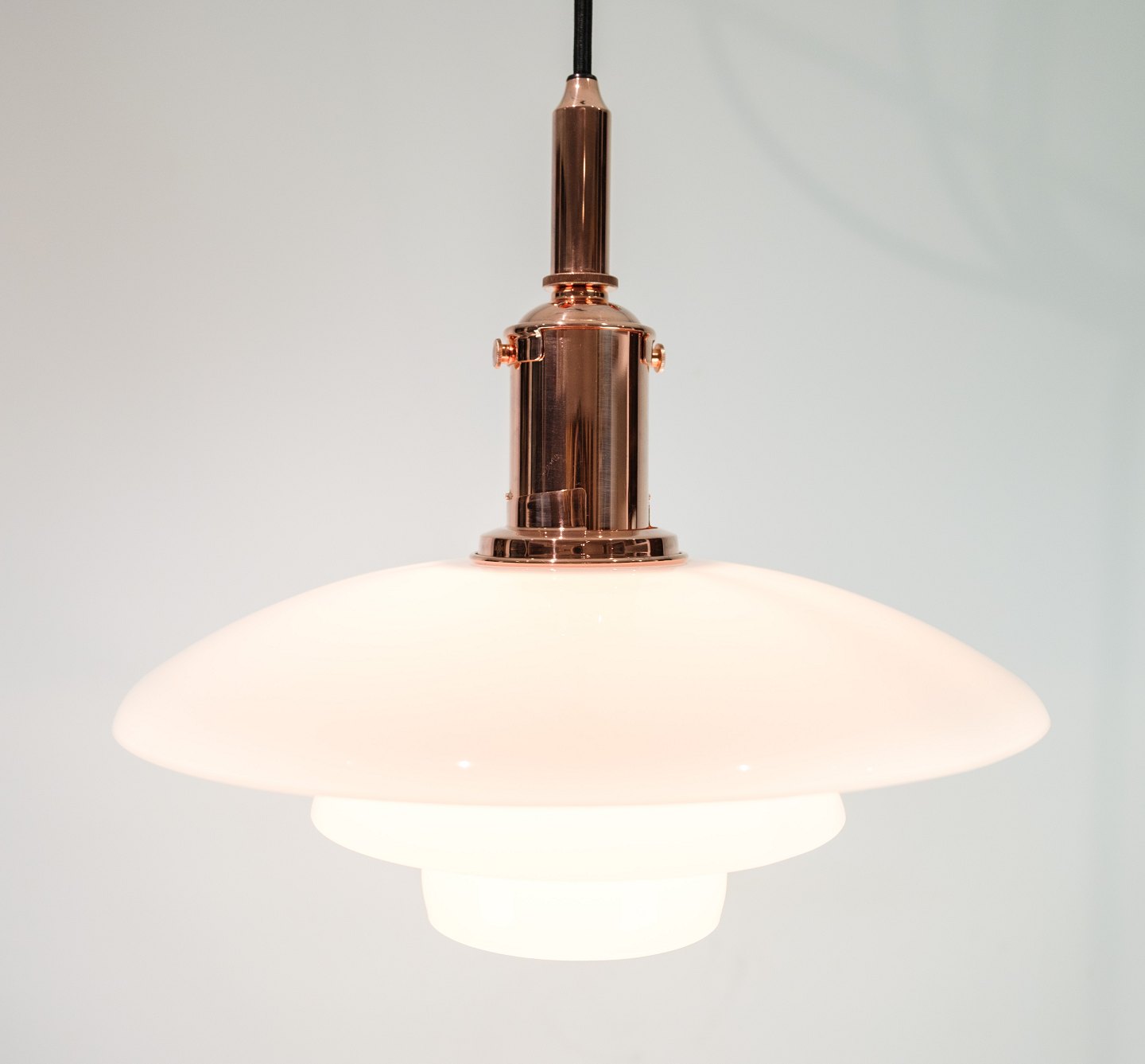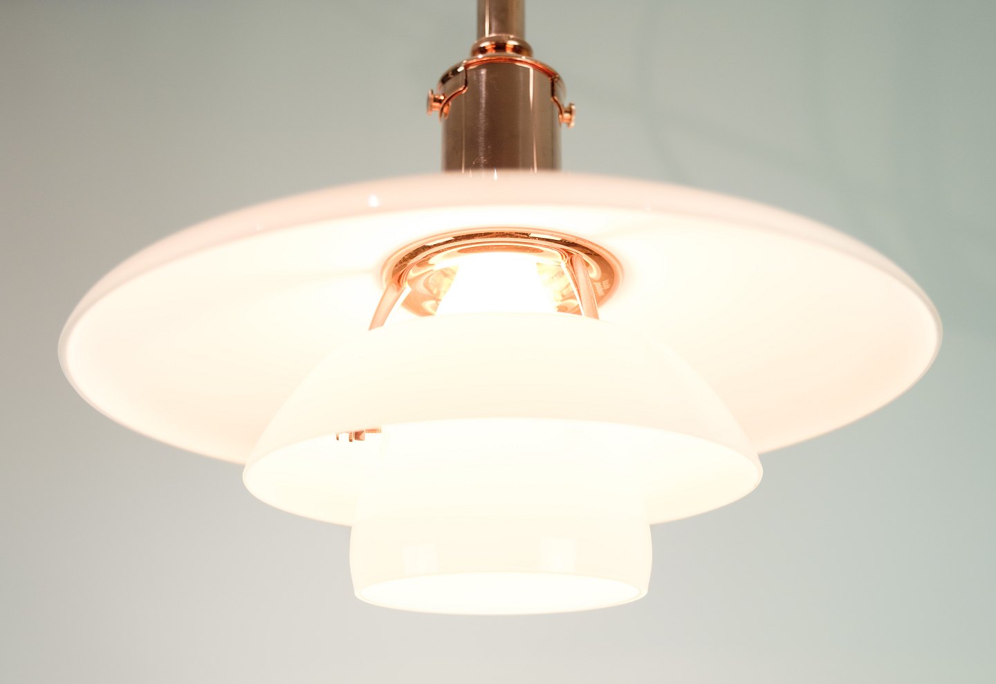 PH pendel, model 3½-3, limited edition i kobber, designet af Poul Henningsen og produceret af Louis Poulsen. I anledning af Poul Henningsen 120 års fødselsdag. Blev kun produceret mellem 1. Marts 2014 til 30. Maj 2014. Lampen er fremstillet i kobber med to underskærme af hvid opal glas. Der medfølger også en overskærm i hvid opal glas med.