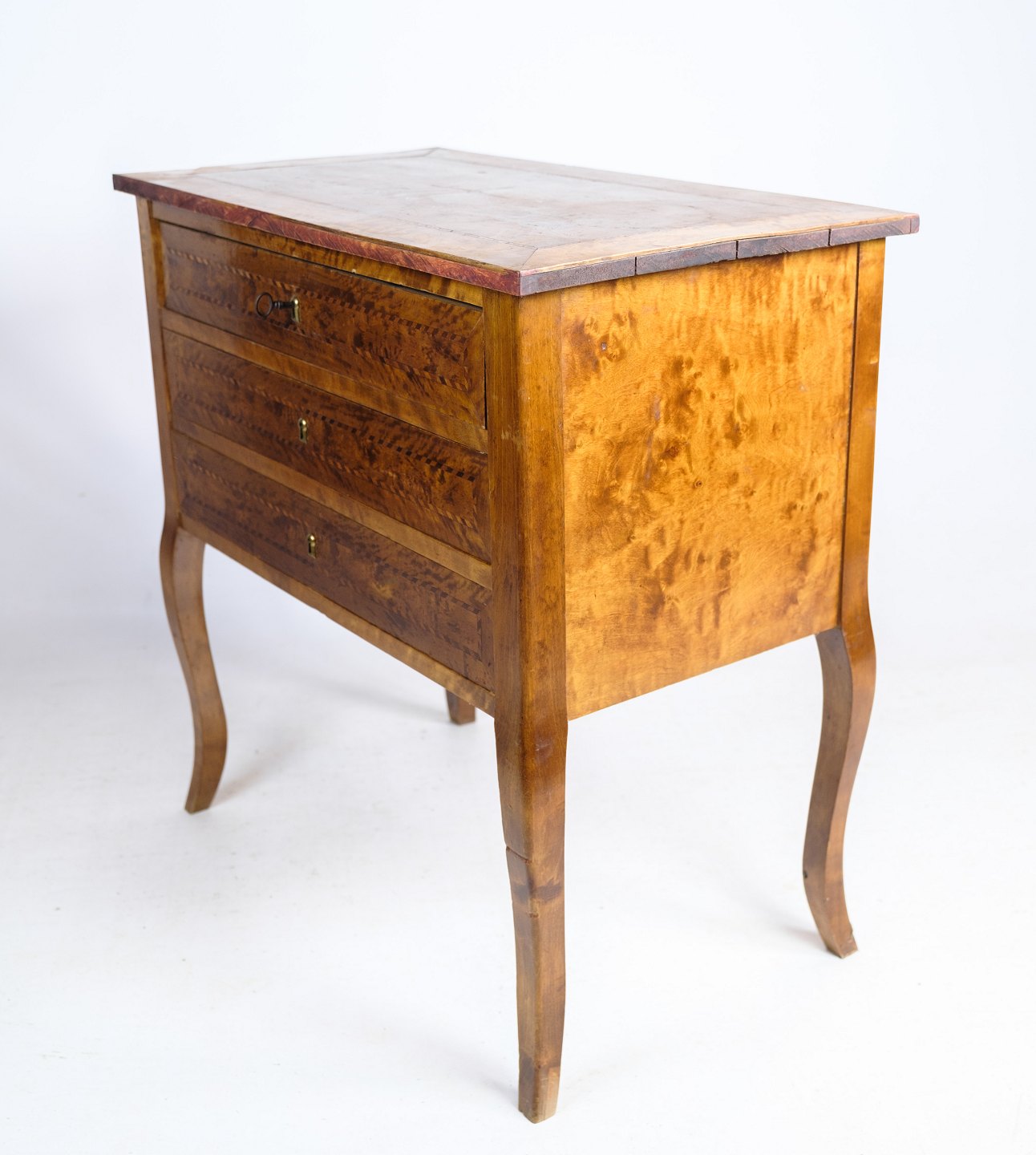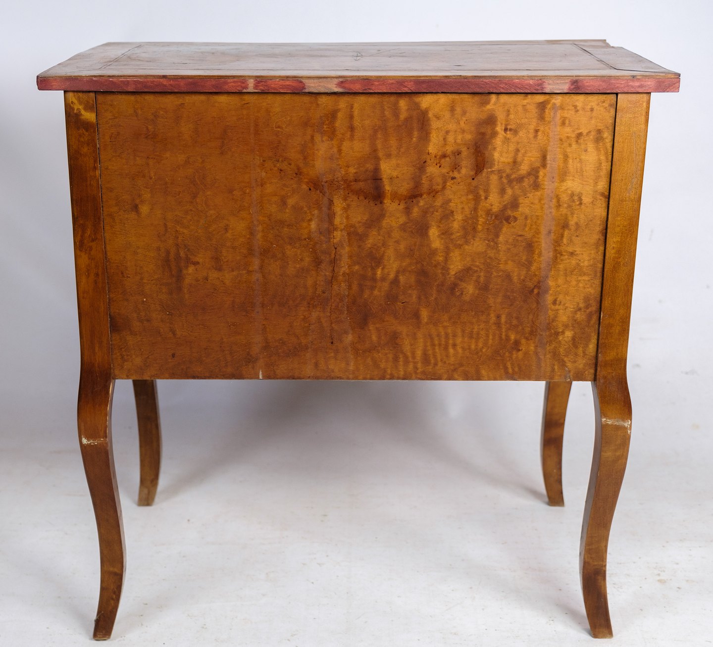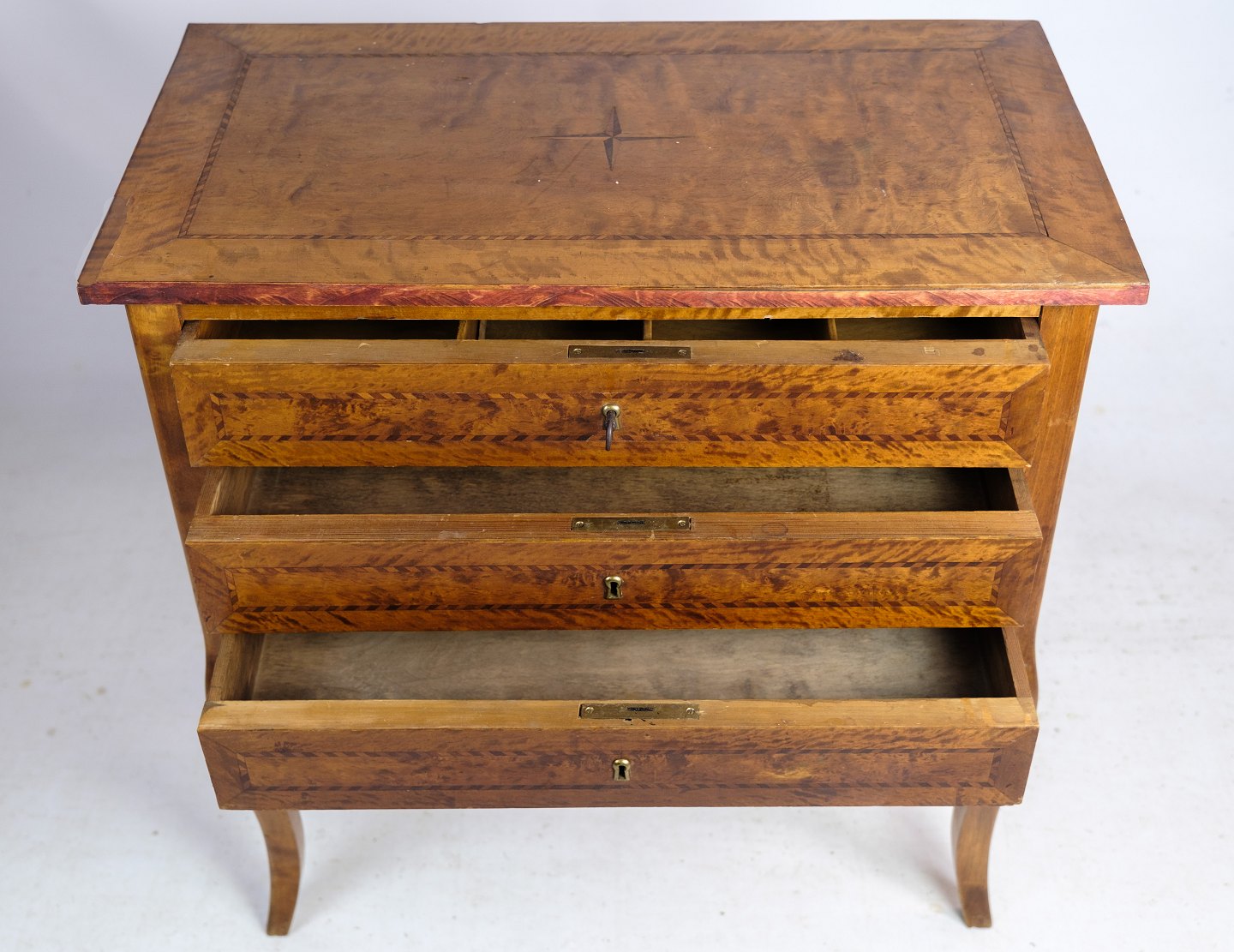 SolgtAntik kommode i rosentræ med intarsia og messing nøglehuller fra omkring 1920'erne. Nøgle medfølger.