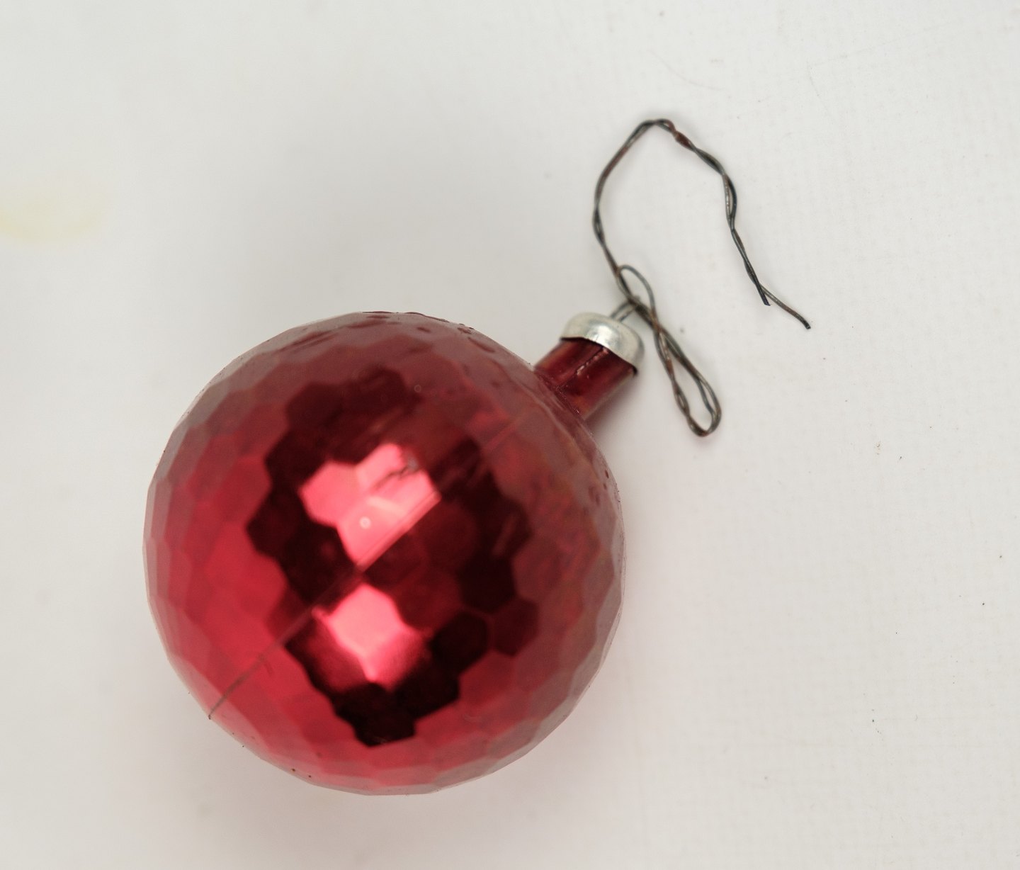 Antik Julekugle i en rød farve fra omkring 1930'erne.