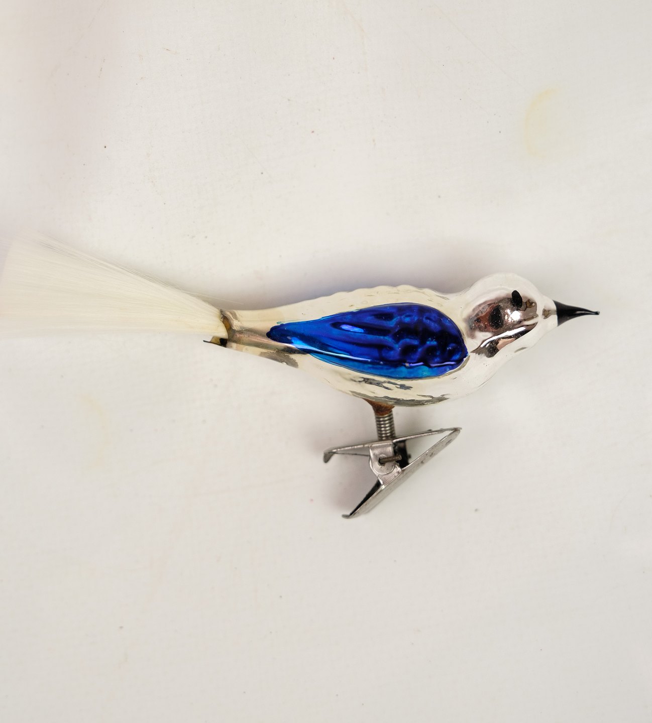 SolgtGammel julepynt af håndmalet glas fugl fra omkring år 1930'erne.