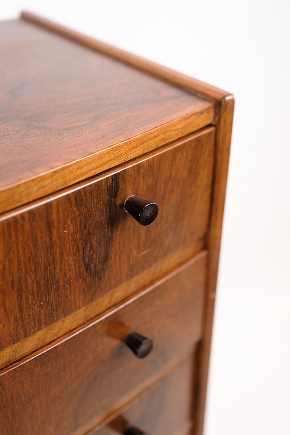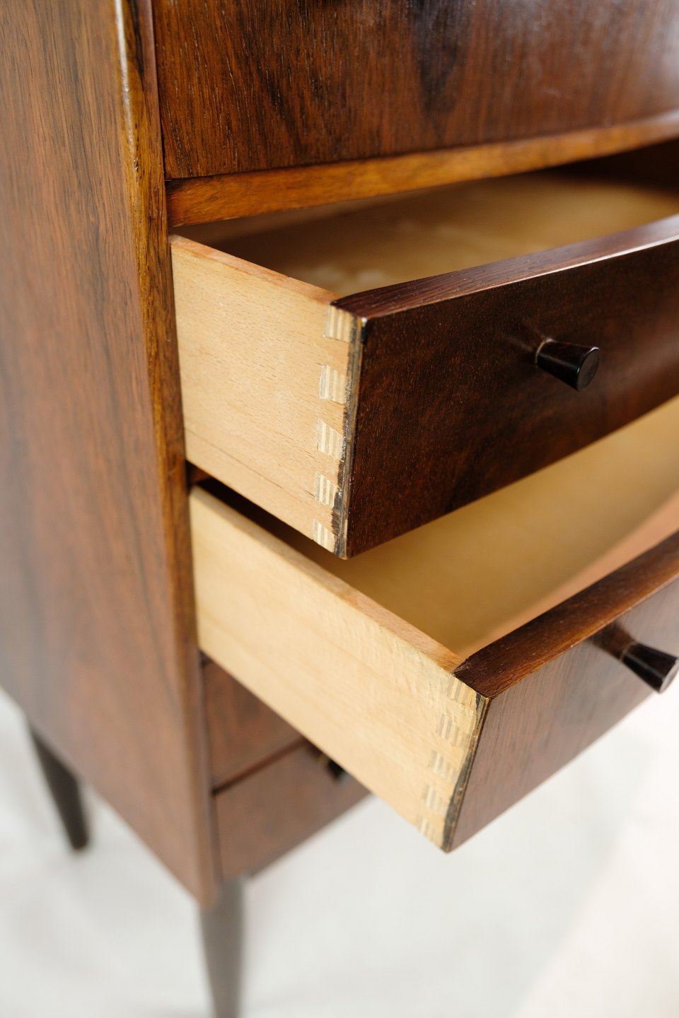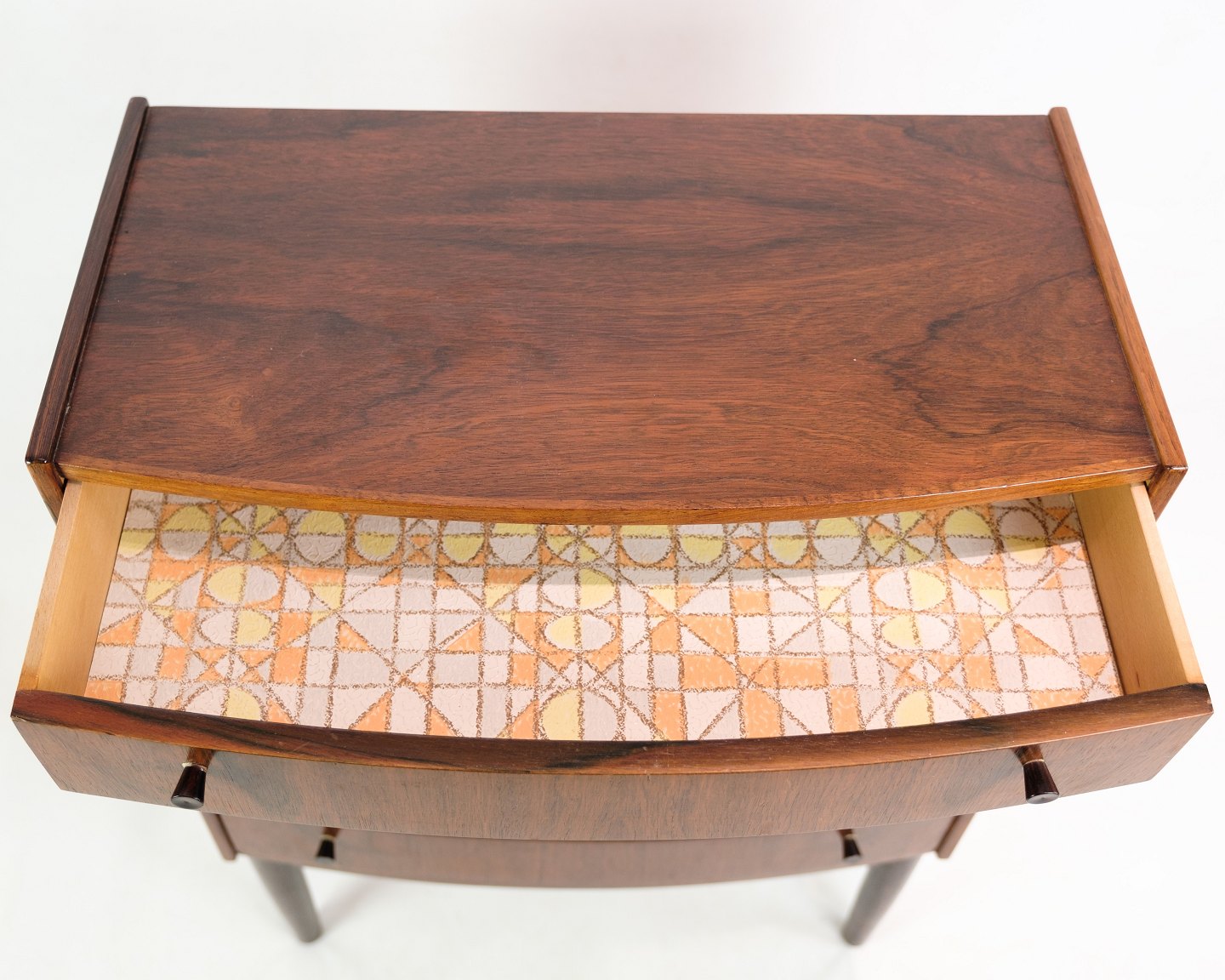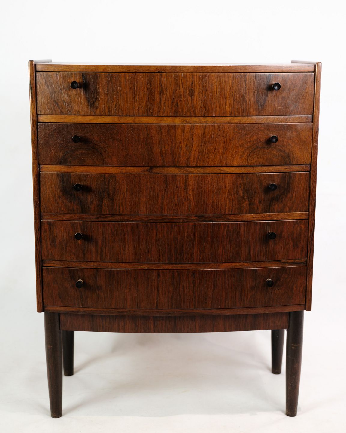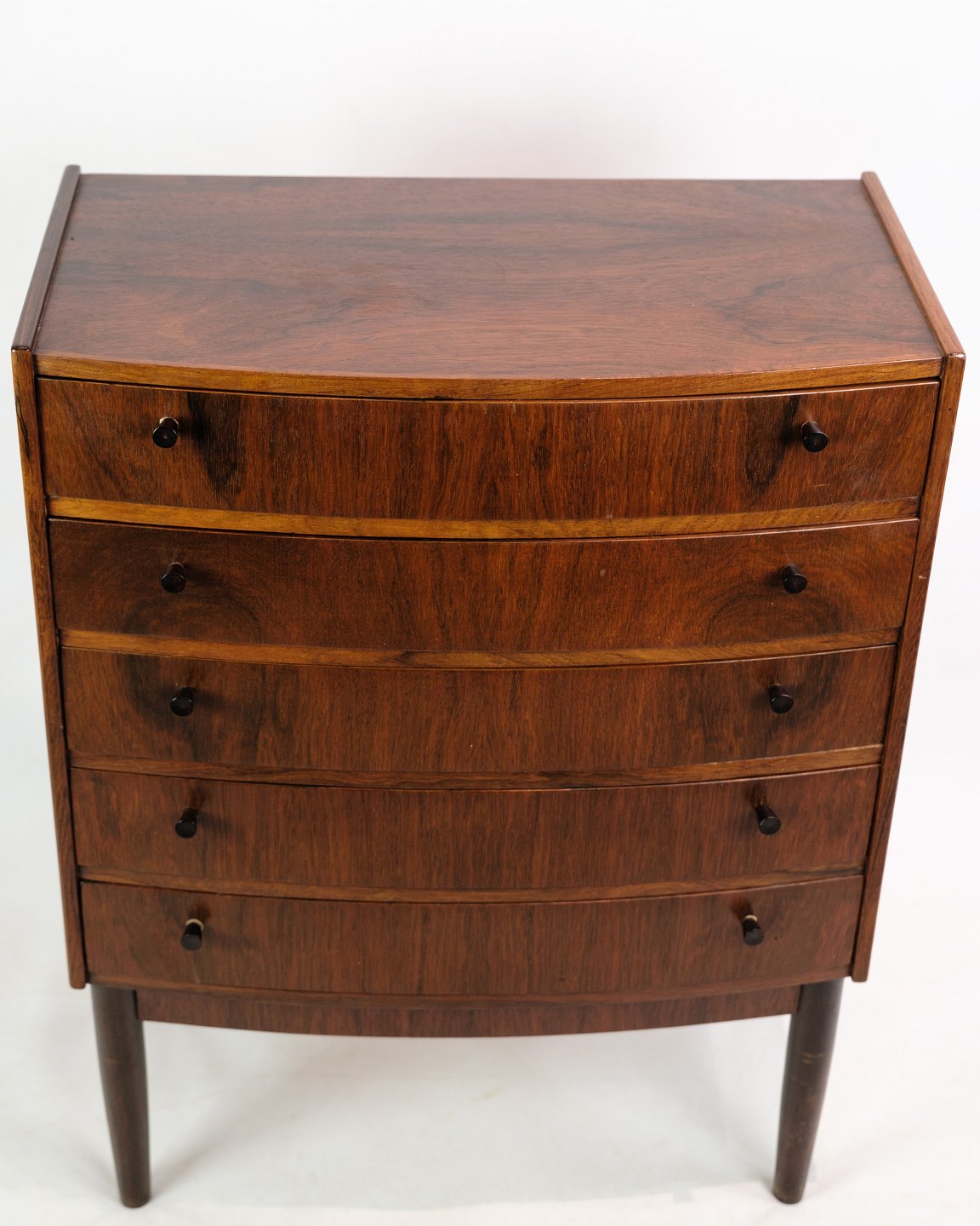 Kommode i træsorten palisander af dansk design med en buede front fra omkring 1960'erne.
