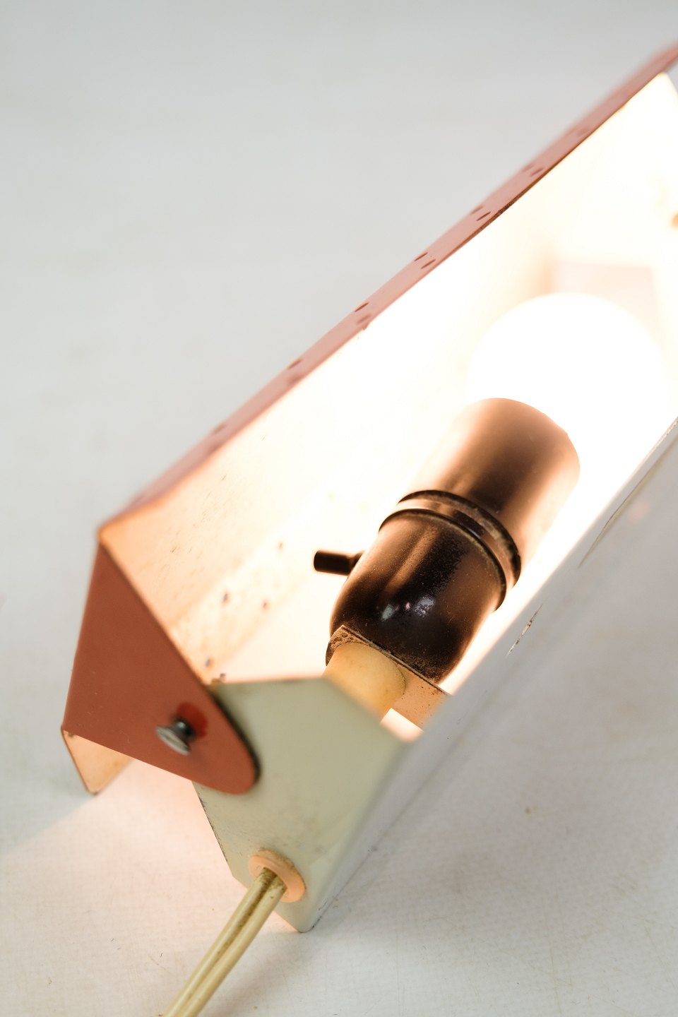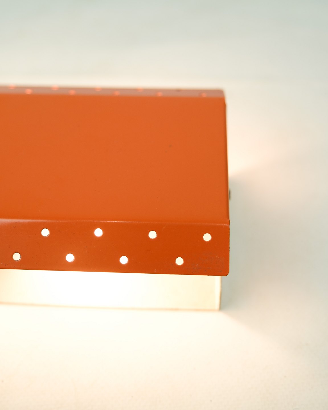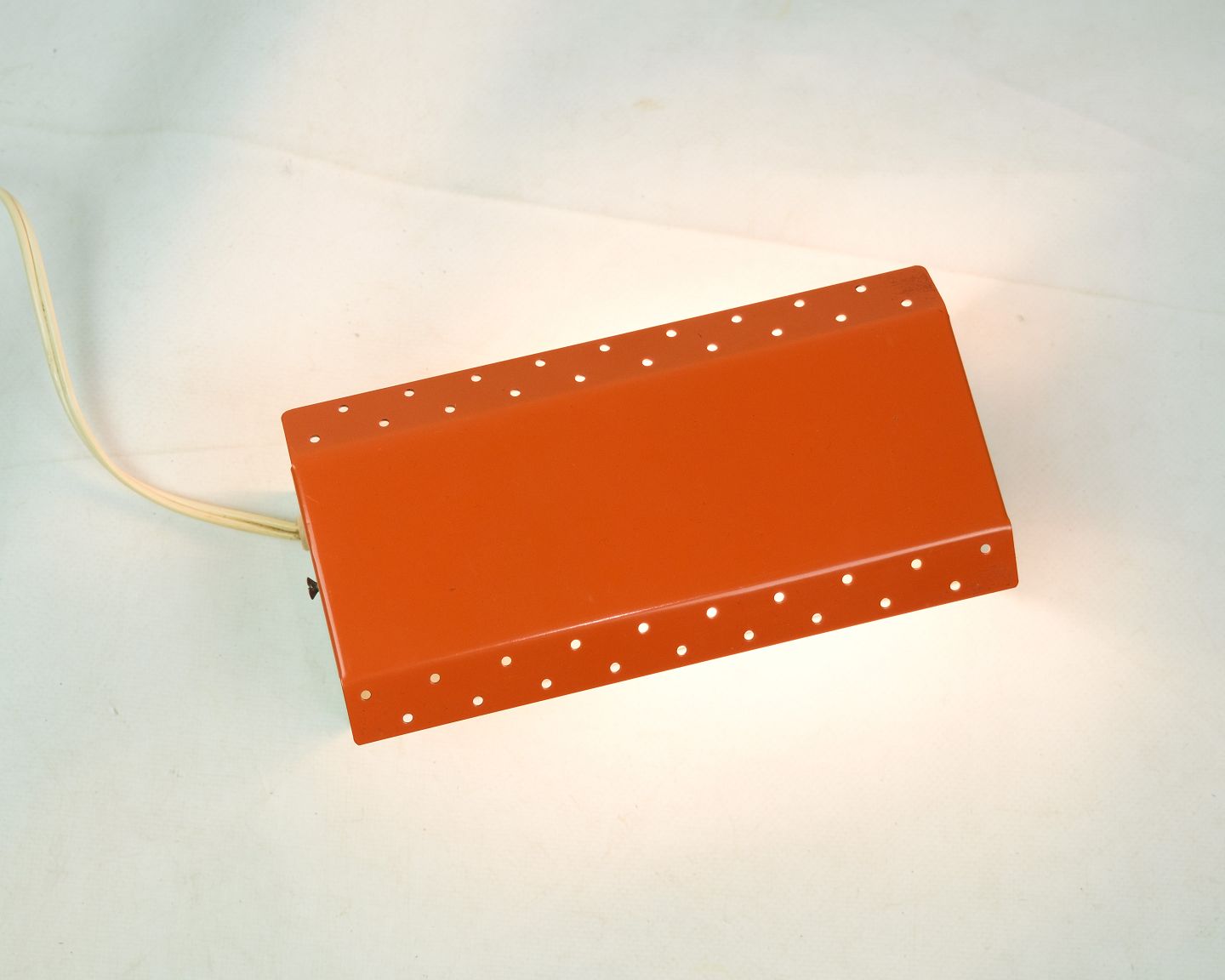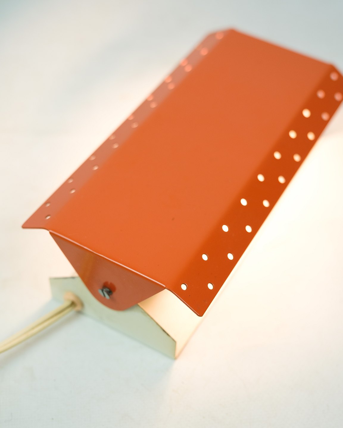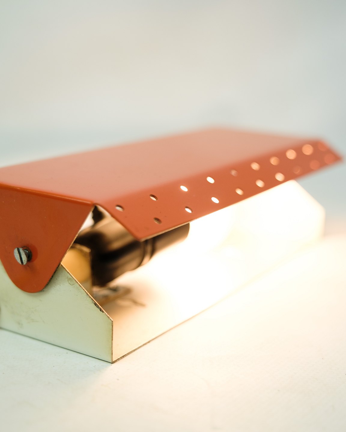 SolgtSæt af to væglamper i en orange farve med lys ledning af dansk design fra omkring 1970'erne.