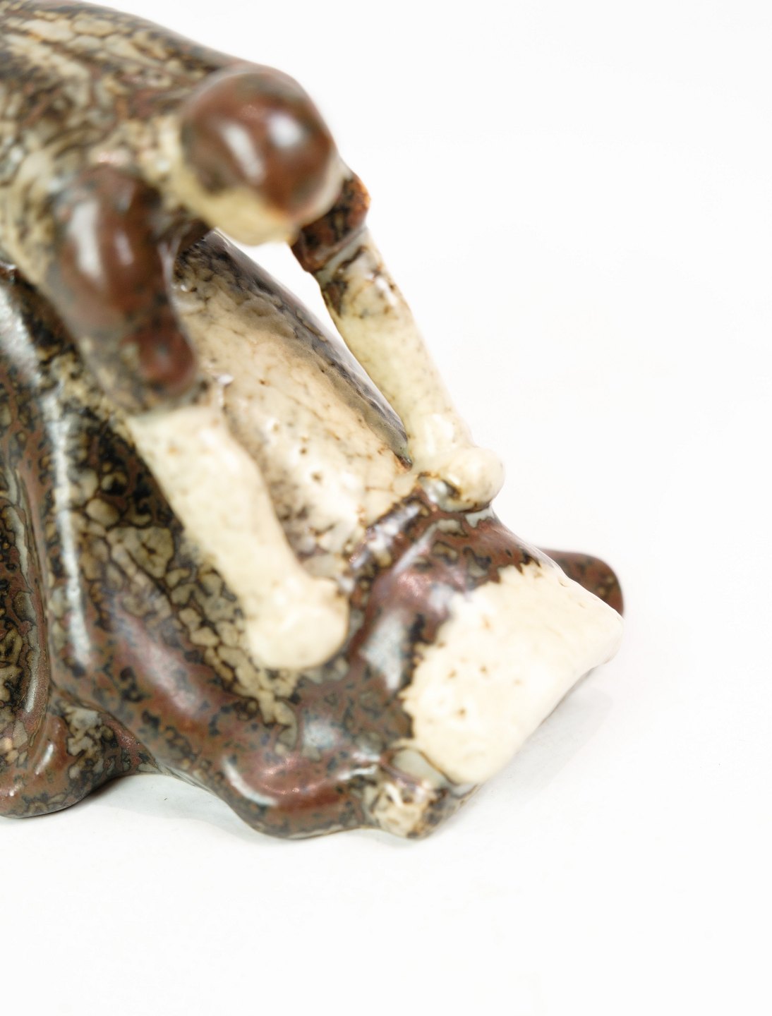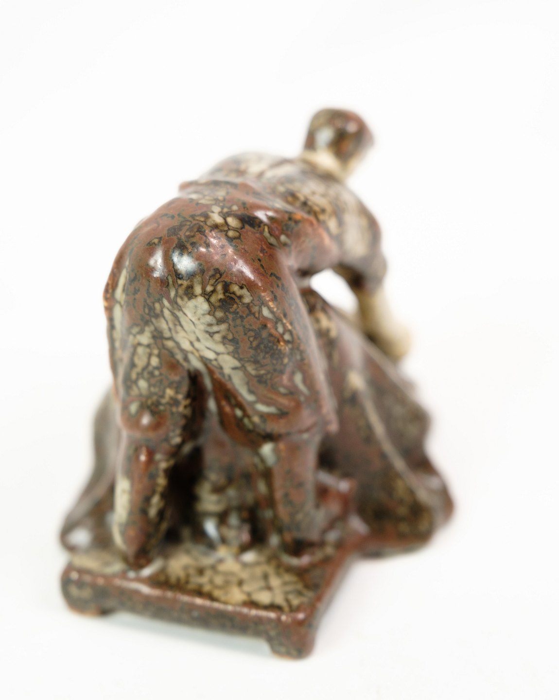 SolgtKeramik figur, designet af Hugo Liisberg og fremstillet af Saxbo keramik fra omkring 1960'erne. Figuren har en flot glasur i hvide og brunlige farver.