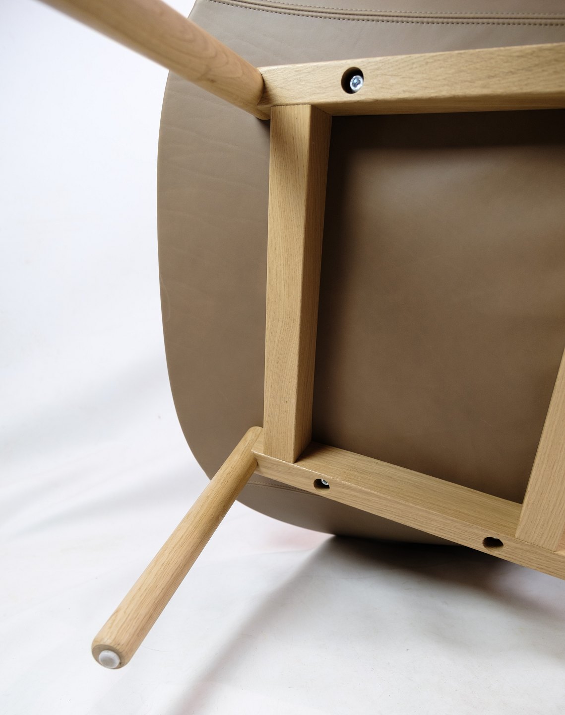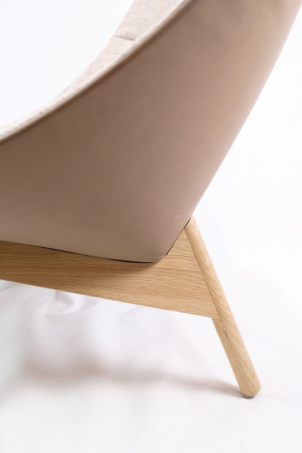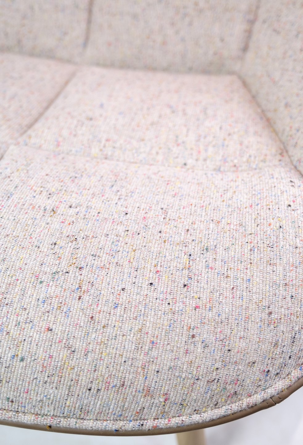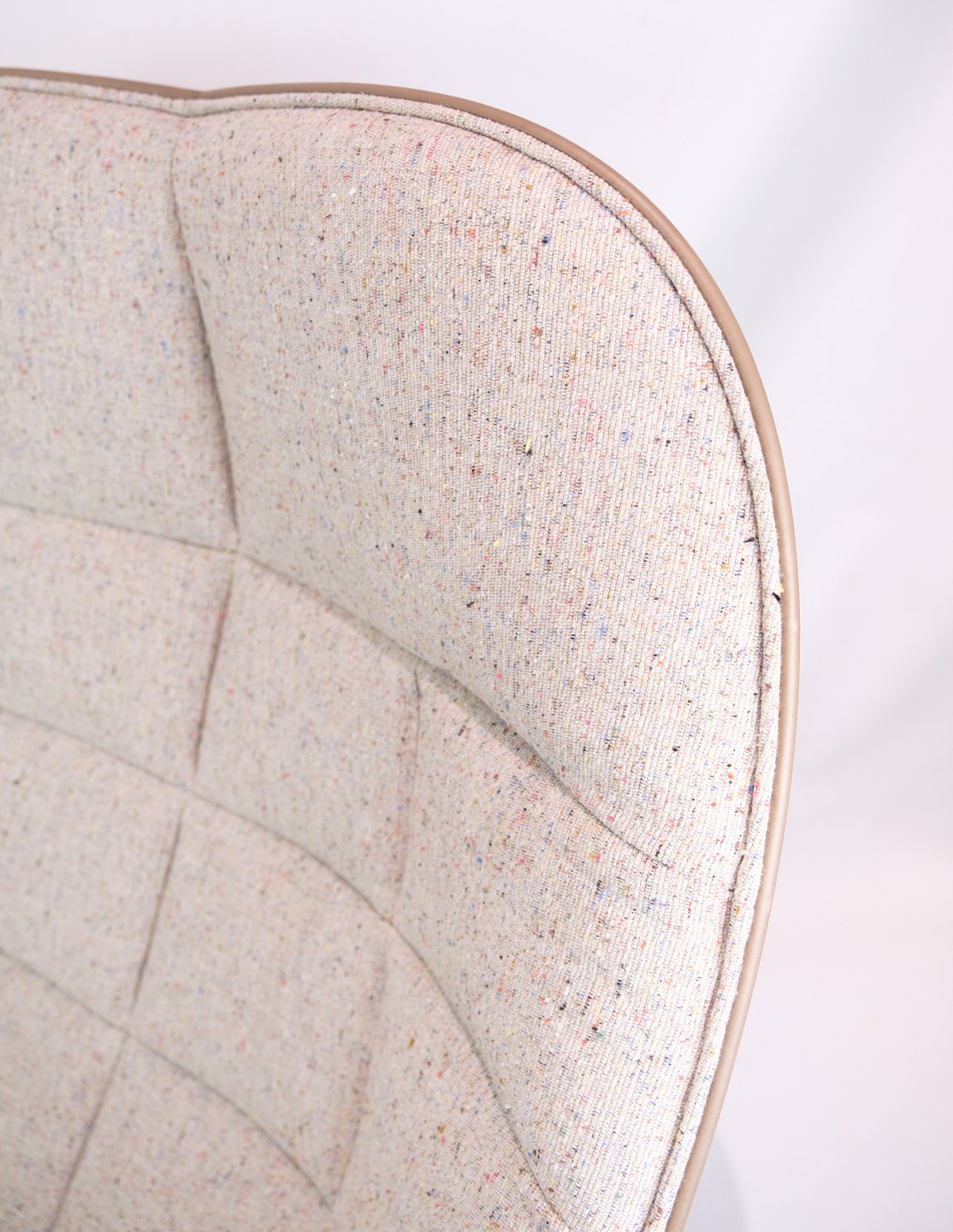 SolgtLænestol, model Quilt, designet af Doshi Levien fremstillet af Hay. Stolen er med stel af egetræ og stoffarven Bolgheri LGG70 / Sense Nougat