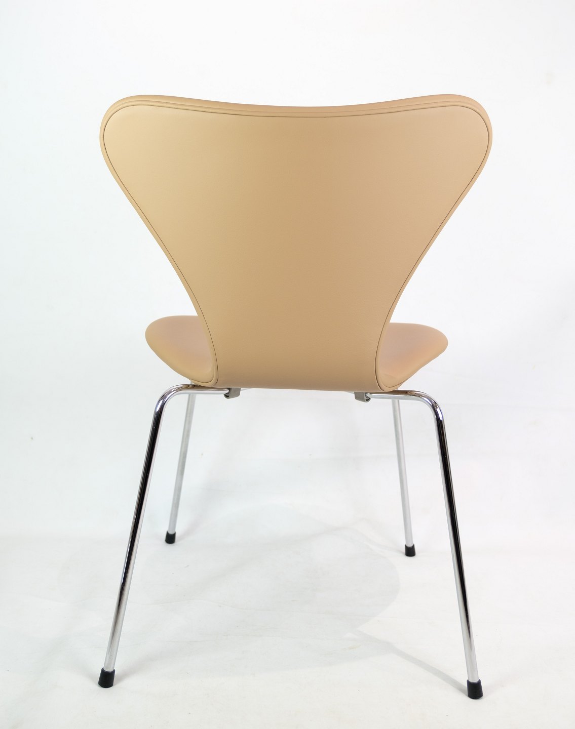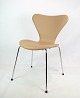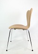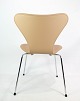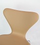 Et sæt af 4 Syver stole, model 3107, designet af Arne Jacobsen og fremstillet hos Fritz Hansen. Stolene er polstret i cream farvet elegance læder og i rigtig flot brugt stand. Vi kan polstre flere efter ønske.