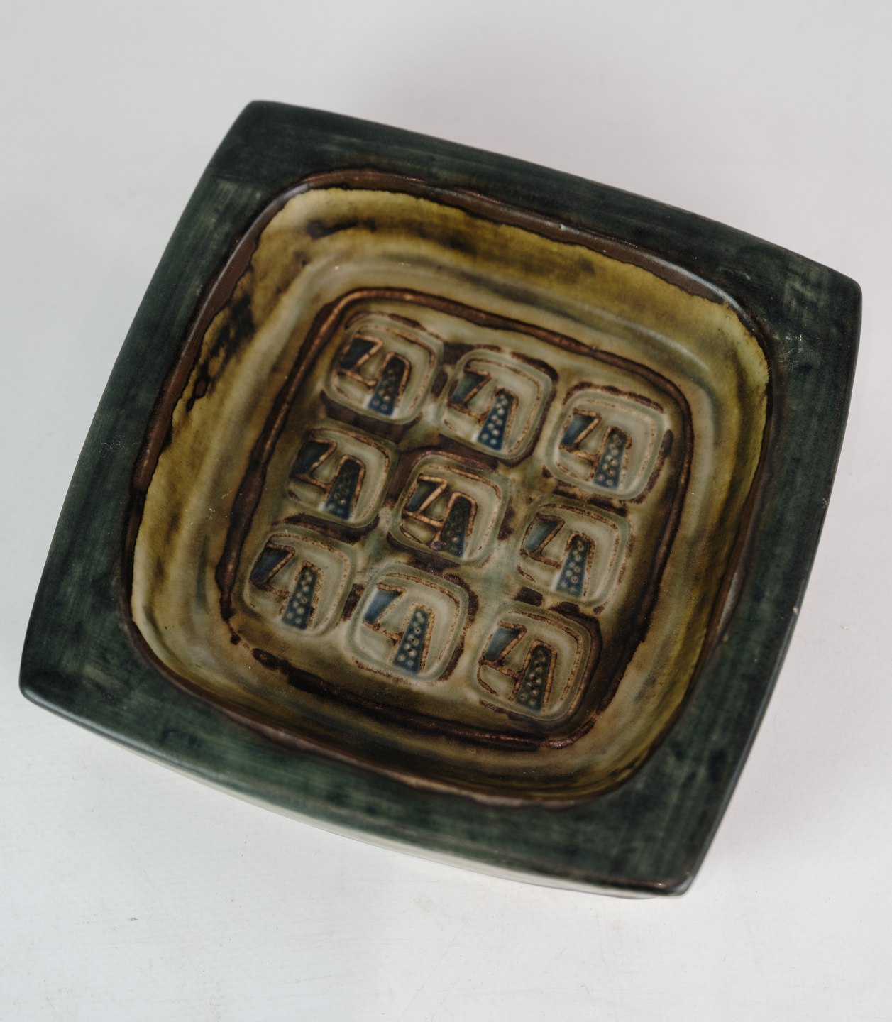 SolgtStentøjsskål af Royal Copenhagen, designet af Jørgen Mogensen i en firkantet form.