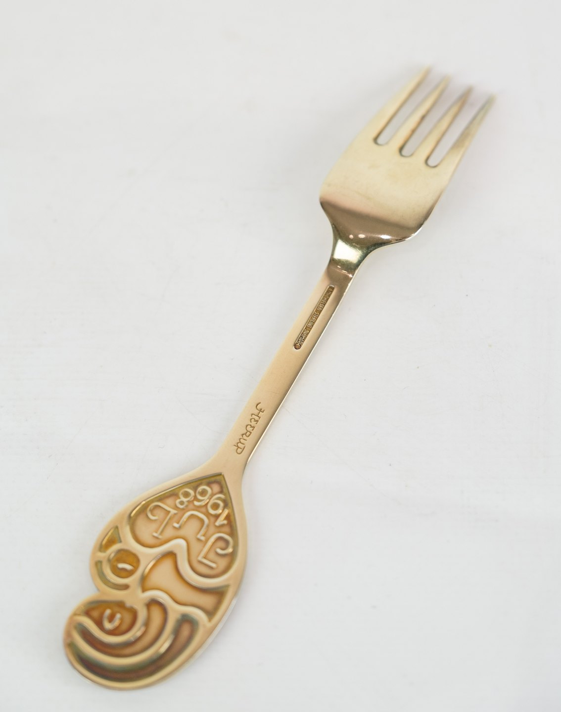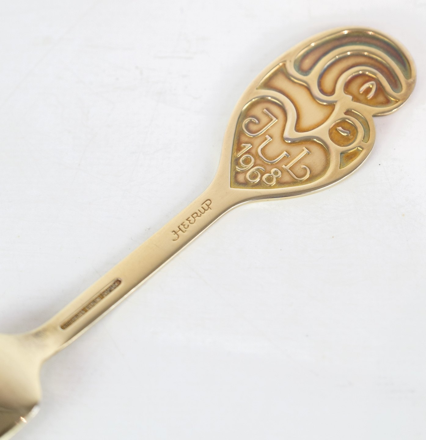 Michelsen juleskeen i 1968 er lavet af forgyldt sterling sølv og har et flot motiv af Madonna og Barnet eller et Moders Hjerte, som er skabt af kunstneren Henry Heerup. Skeen er i pæn stand og vil være et værdifuldt og unikt supplement til ethvert juletræ. Michelsen er kendt for at skabe smukke, håndlavede julegaver af høj kvalitet, og denne juleske er ingen undtagelse. Det forgyldte sterling sølv giver skeen et elegant look, der vil gøre indtryk på alle, der ser den. Med sin smukke kunstneriske detaljer og håndlavede kvalitet vil denne juleske blive en værdsat del af dit juletræ i mange år fremover.