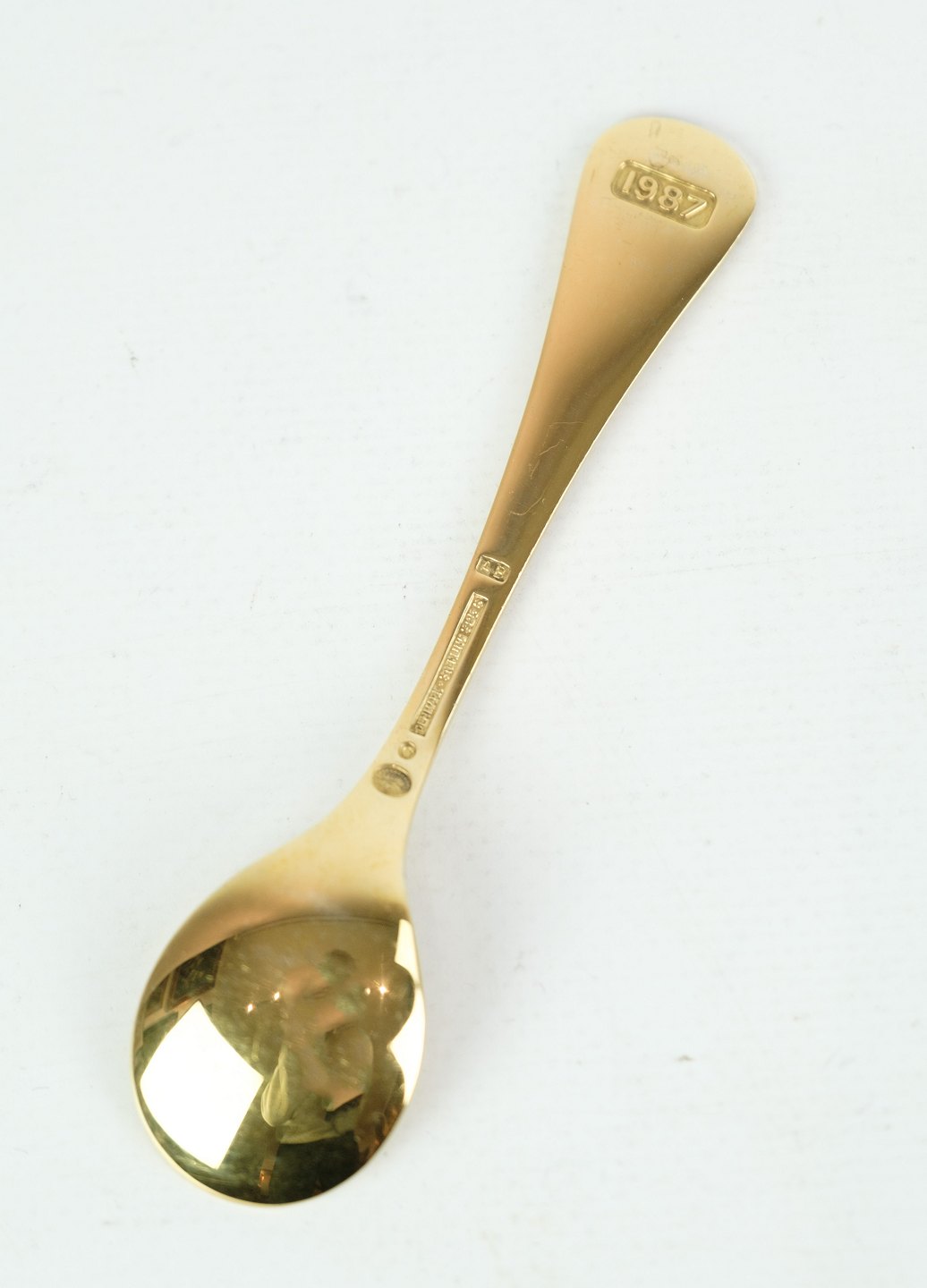 Georg Jensen annual spoon, gilded sterling silver, title "White Oxeye", 1987