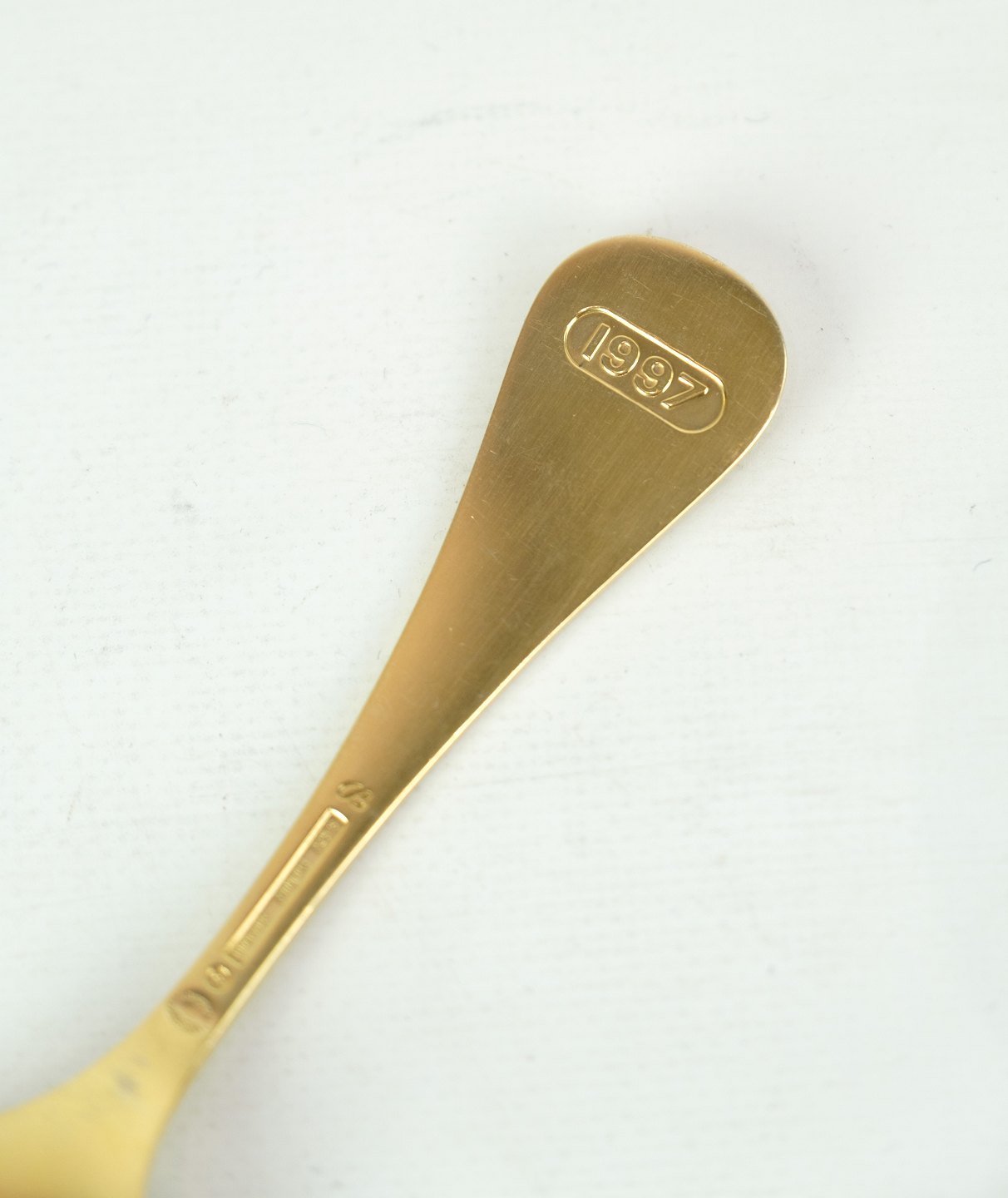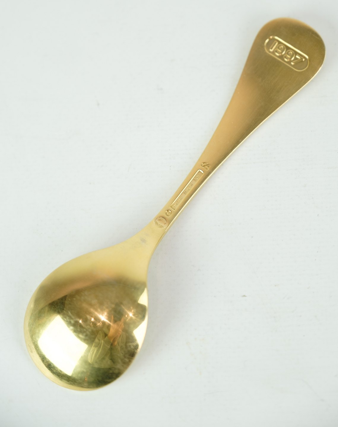 Georg Jensen årsske 1997 Kirsebær er et smukt og elegante tilbehør til enhver festlig lejlighed. Det er lavet i forgyldt sterling sølv og har et detaljeret design af kirsebær, der er skabt af den berømte designer Annelise Bjørner (designer for Georg Jensen 1971-03). Skeen er i pæn, brugt stand, og vil være en værdifuld tilføjelse til enhver samling af Georg Jensen-sølvtøj. Med sin unikke og smukke form vil det være et bemærkelsesværdigt element på ethvert bord.
