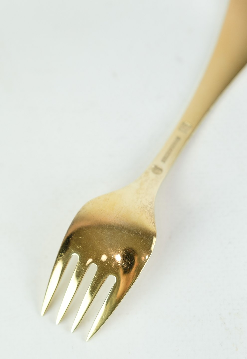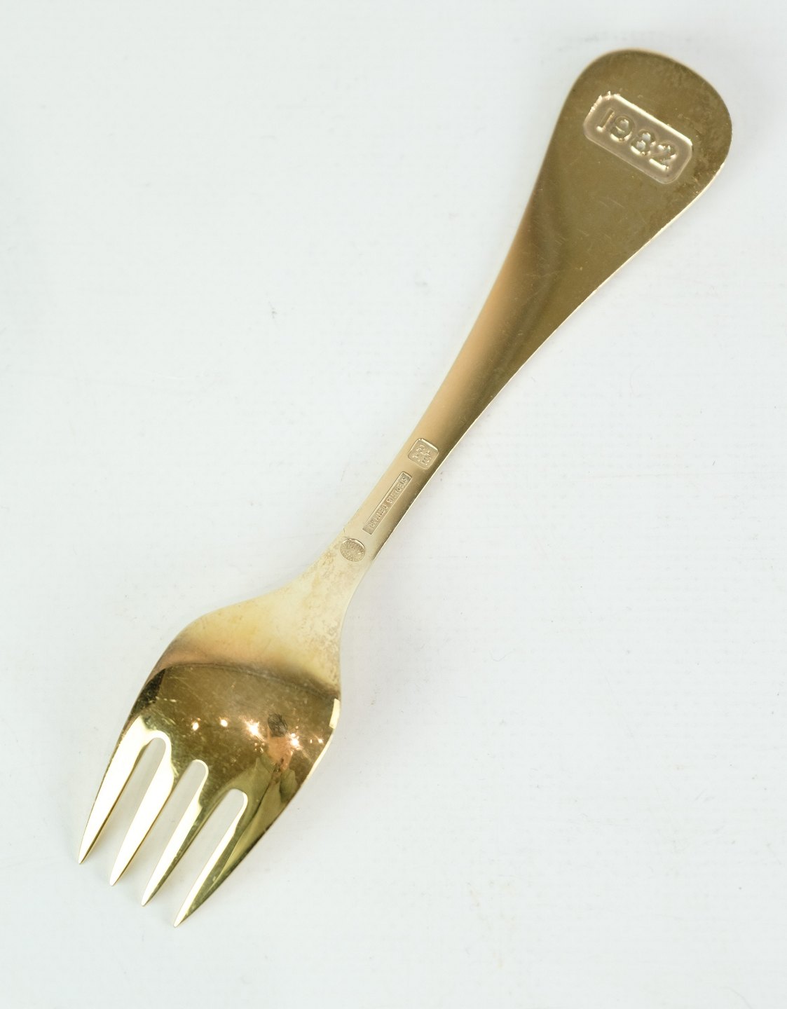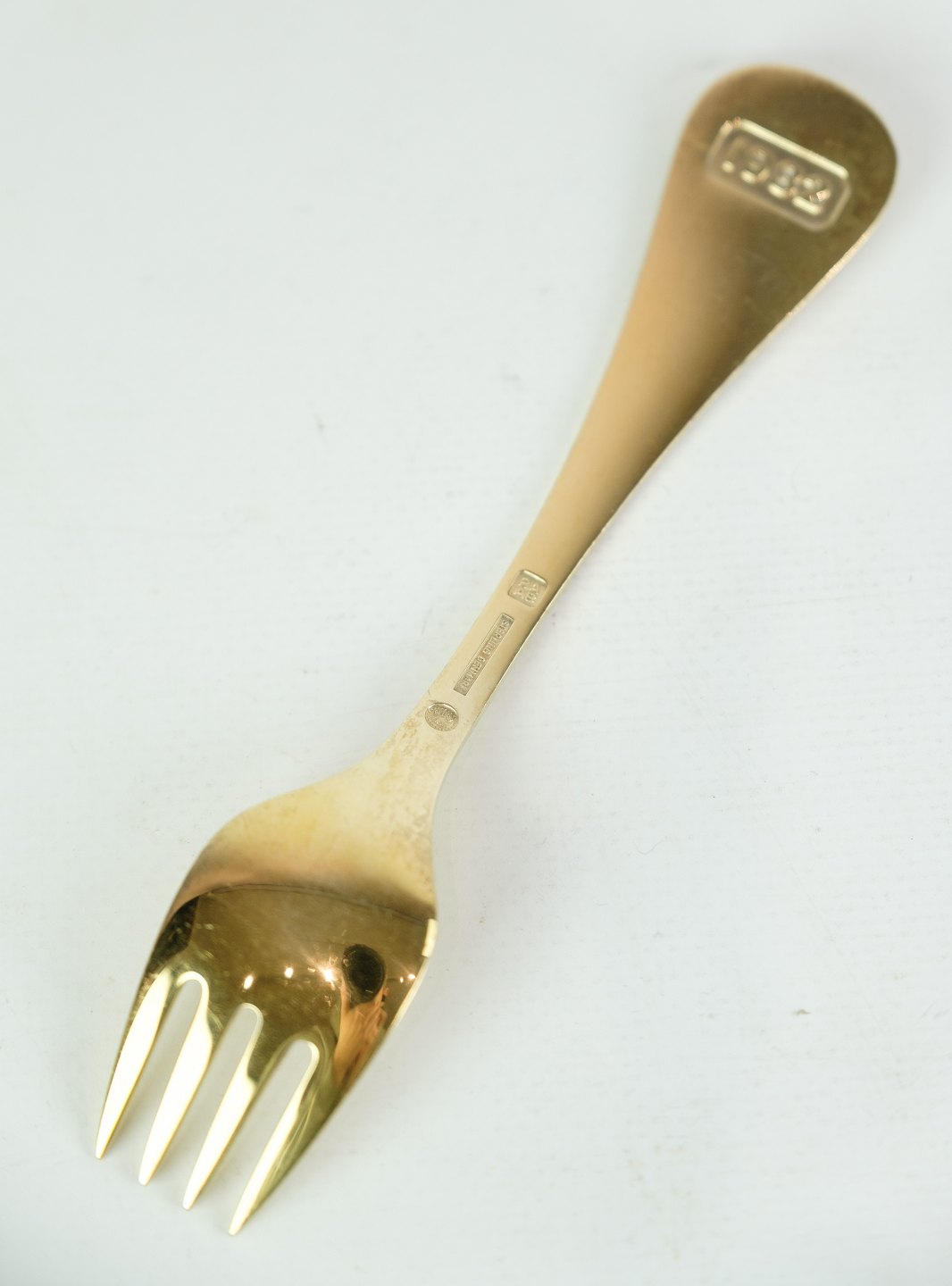 Georg Jensen årsgaffel, forgyldt sølv, titel "Erantis", 1982