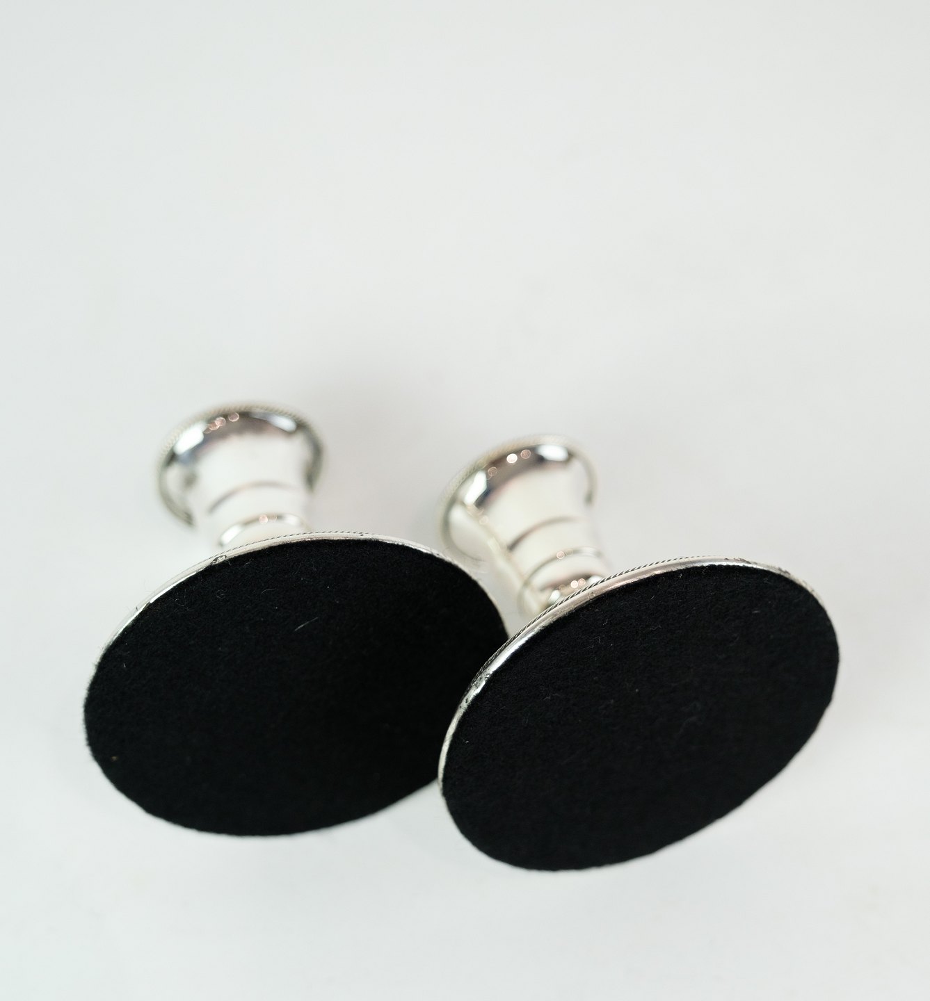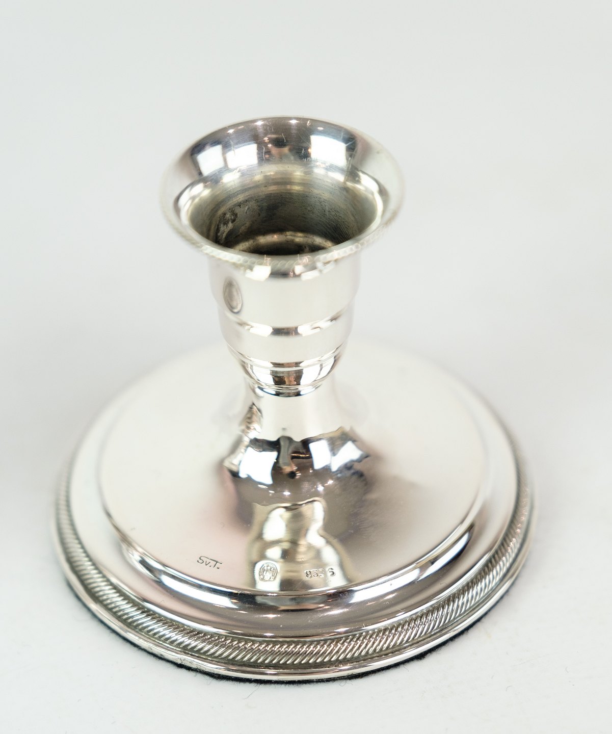 Dette par sølvlysestager i sølv 830 med perlekant er fremstillet af sølvsmed Svend Toksværd og er i perfekt stand. Lysestagerne vil bringe elegance og charme til enhver borddækning eller indretning, mens deres høje kvalitet og holdbarhed gør dem til en værdifuld tilføjelse til enhver samling. Lysestagerne er et must-have for fans af klassiske eller traditionelle stile