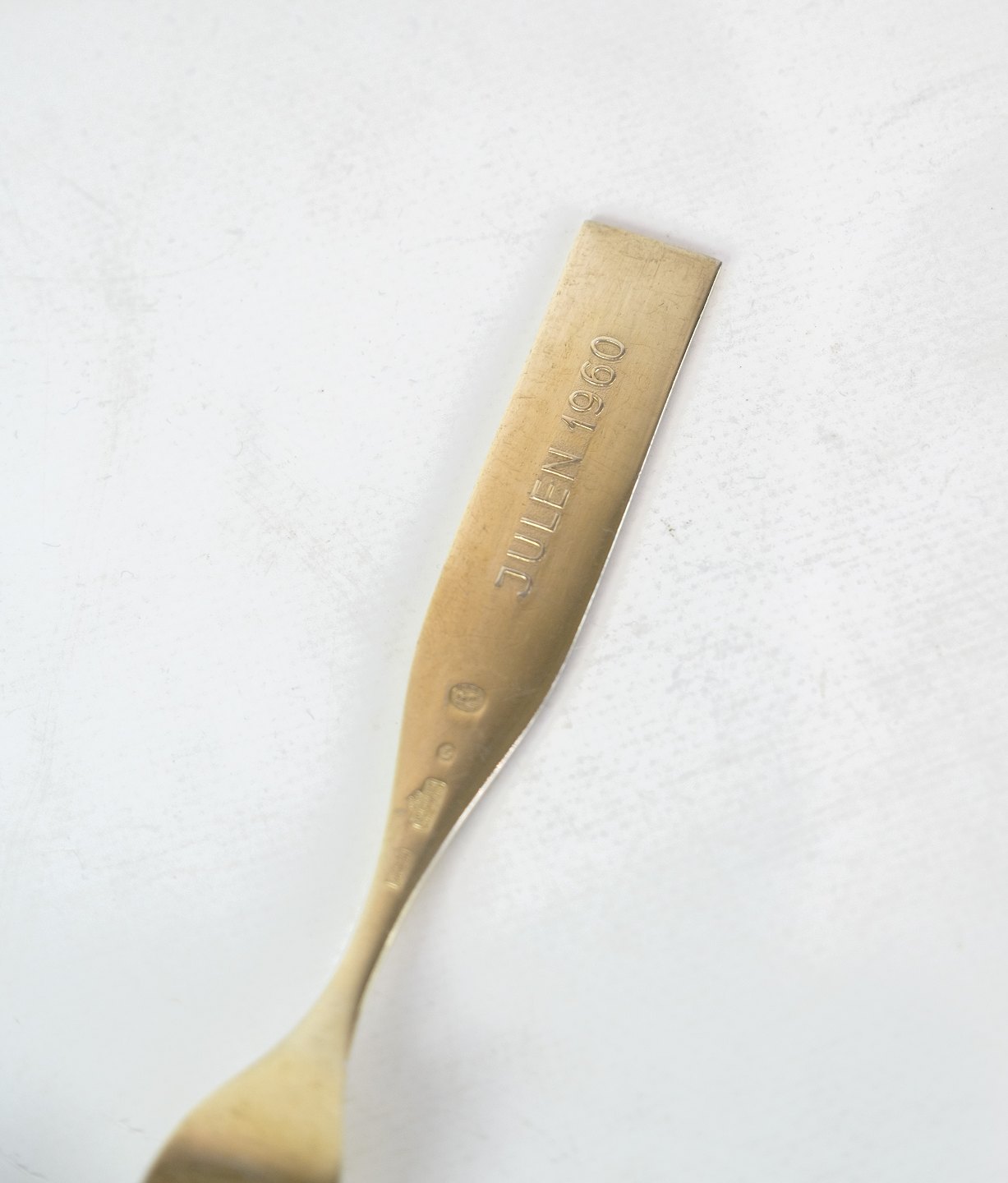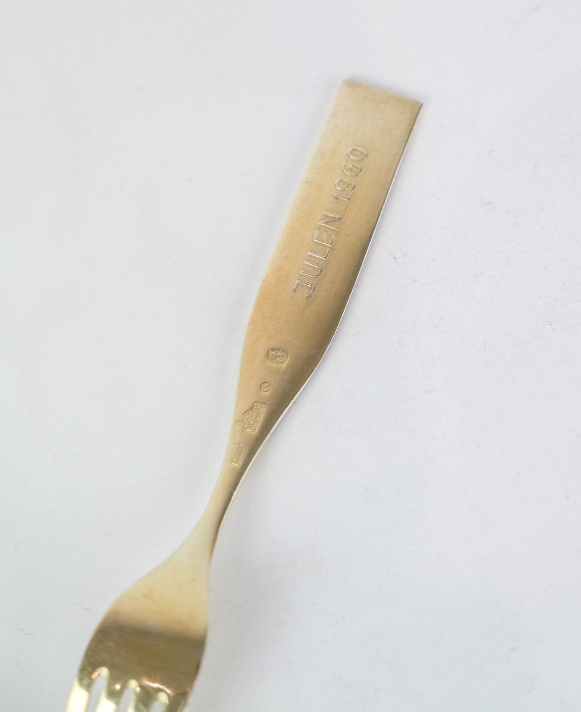 Anton Michelsen julegaffel i forgyldt sølv med motiv af Vintersolhverv af kunstneren Rolf Middelboe i år 1960. Gaflen står i meget fin stand.