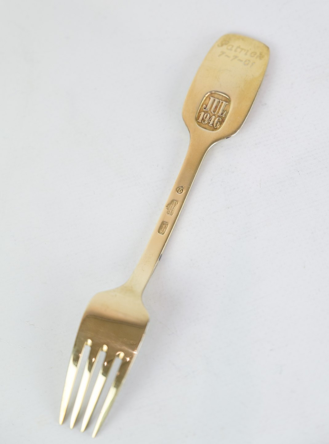 Anton Michelsen julegaffel fra 1946 er en gaffel lavet af forgyldt sterling sølv, med et motiv af en Kristtjørn eller Kristtorn, designet af Johan Pedersen. Skeen er produceret af Anton Michelsen, en dansk sølvsmed og smykkedesigner, der grundlagde et firma i København i 1841. Anton Michelsen firmaet var kendt for at producere højkvalitets sølv- og guldgenstande, herunder julegafler gaflen er i pæn stand og kan være en værdifuld tilføjelse til en samling af danske sølvgenstande eller juleskeer.
