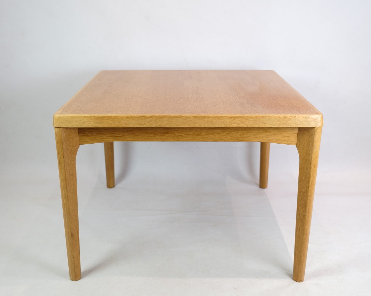 Sofabord i egetræ, designet af Henning Kjærnulf og fremstillet af Vejle stole og møbelfabrik fra omkring 1960'erne. Et firkantet kvadratisk sofabord i både god stand og af god kvalitet.