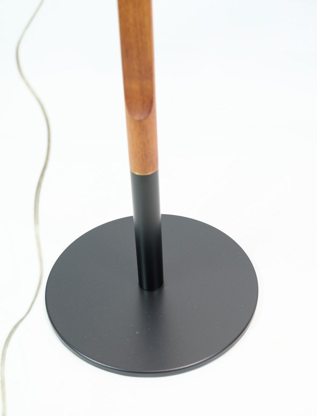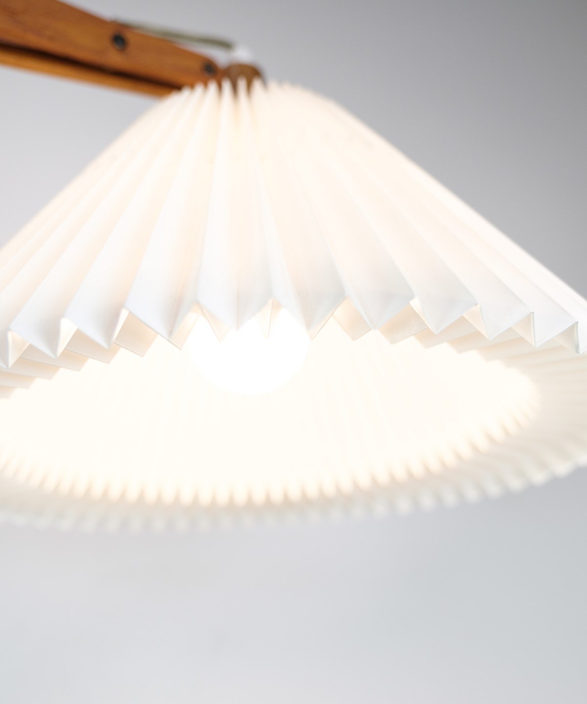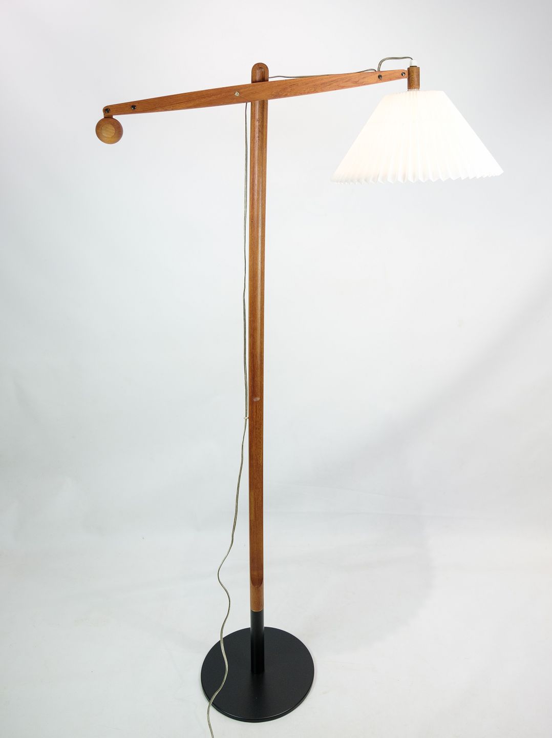SolgtGulvlampe, model 325 af Le Klint, designet af Vilhelm Wohlert i teaktræ med original skærm fra omkring 1950'erne, Danmark