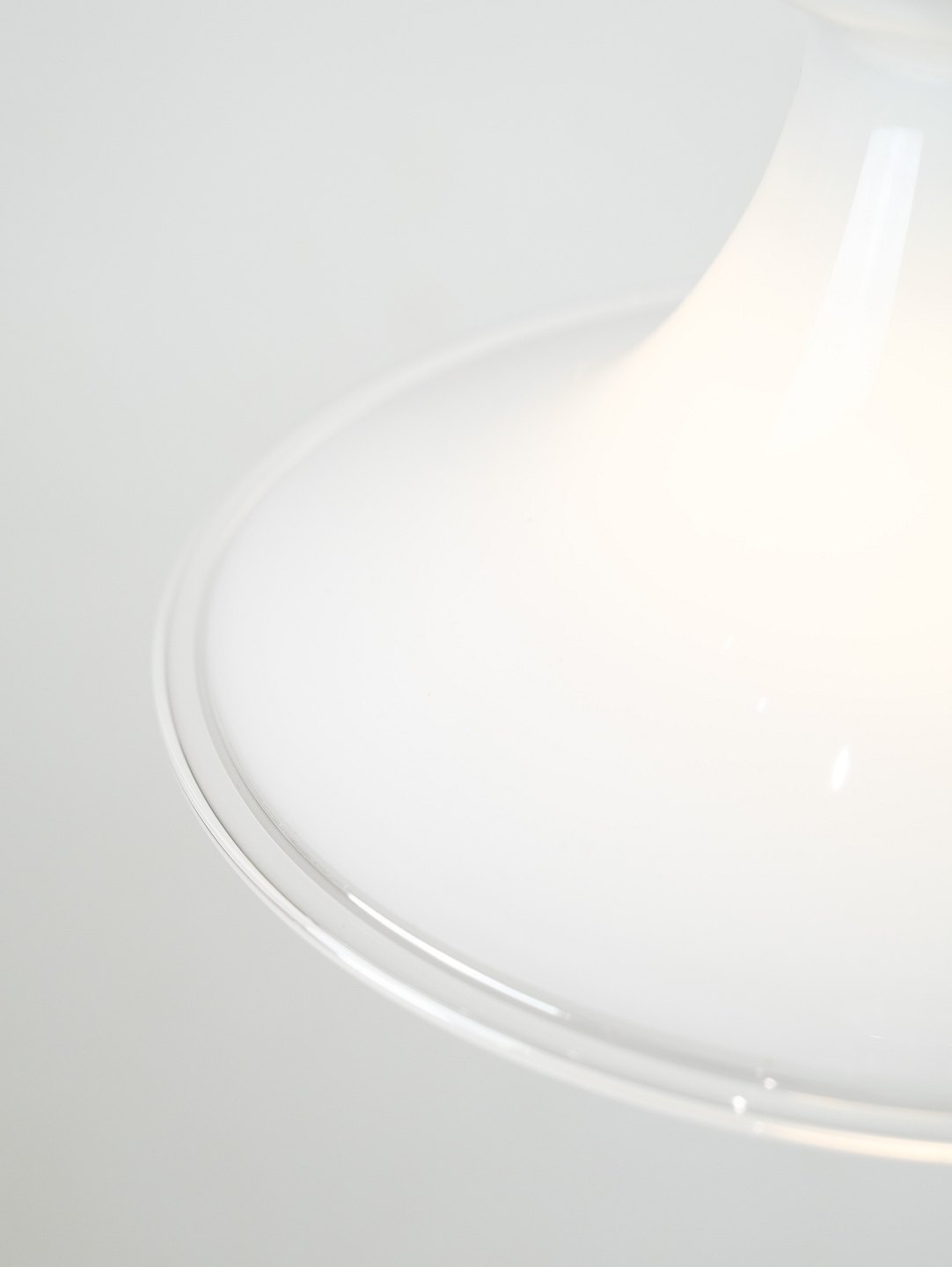 Pendel model Etude 1 er et smukt eksempel på Michael Bangs design fra 1978. Pendlen er udført i klart og hvidt opalglas og er fremstillet af Holmegaard, en af Danmarks mest anerkendte glasproducenter.