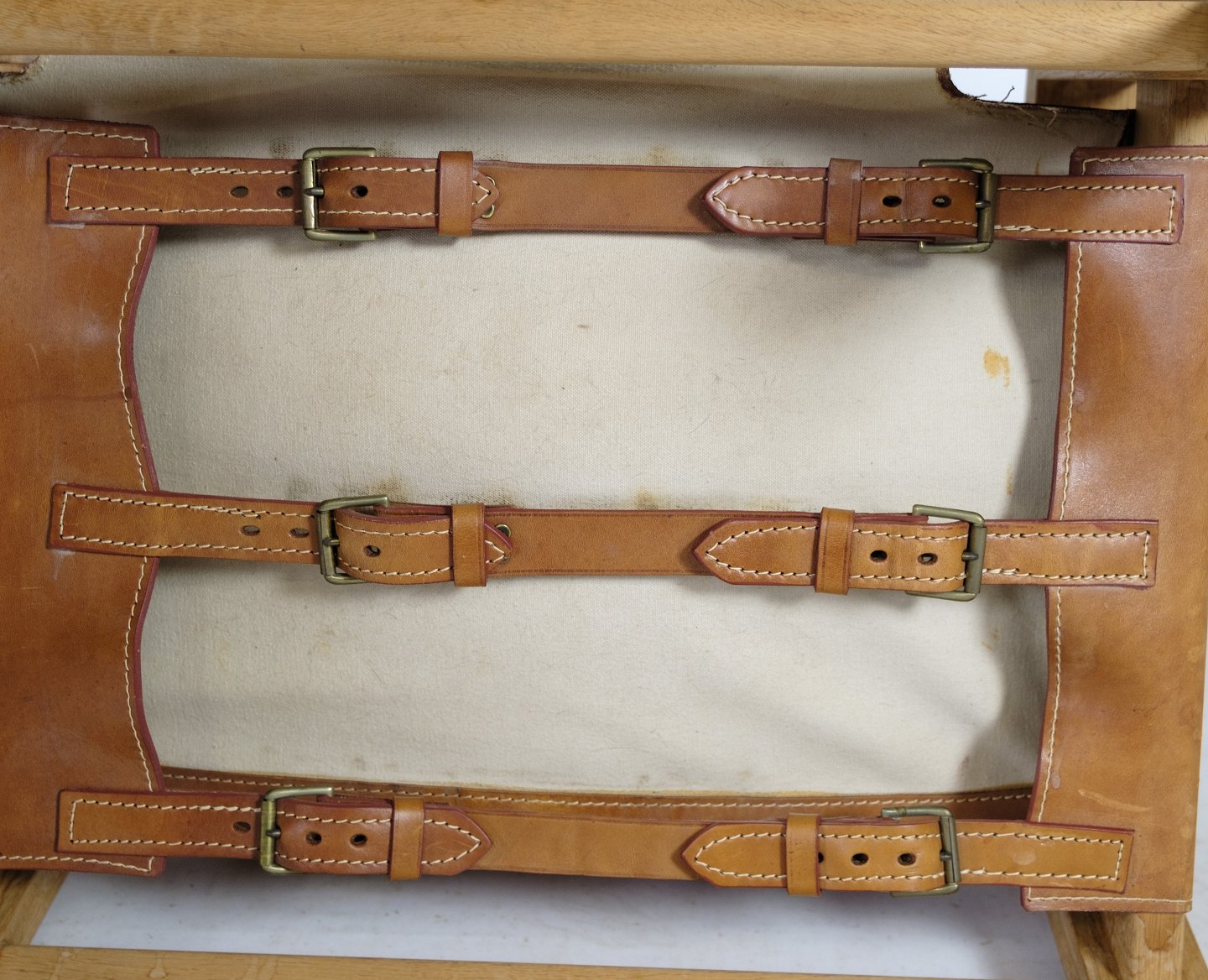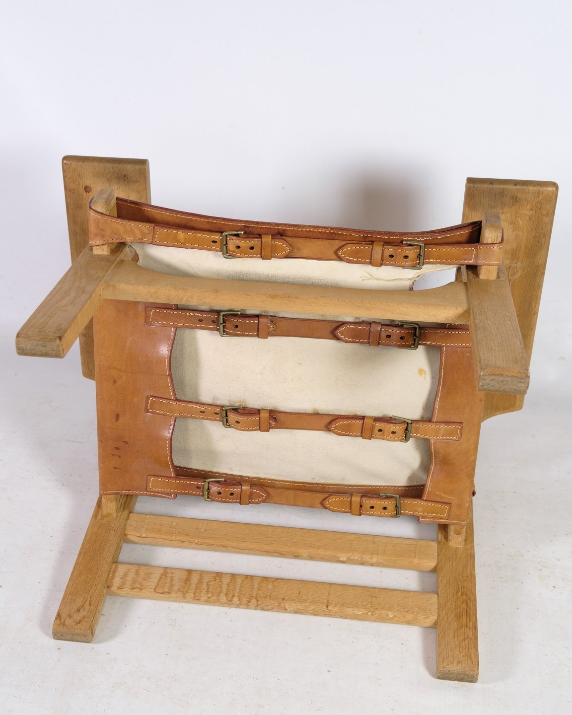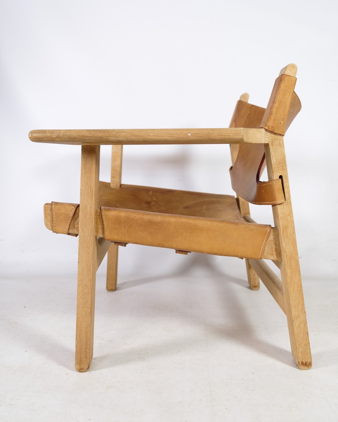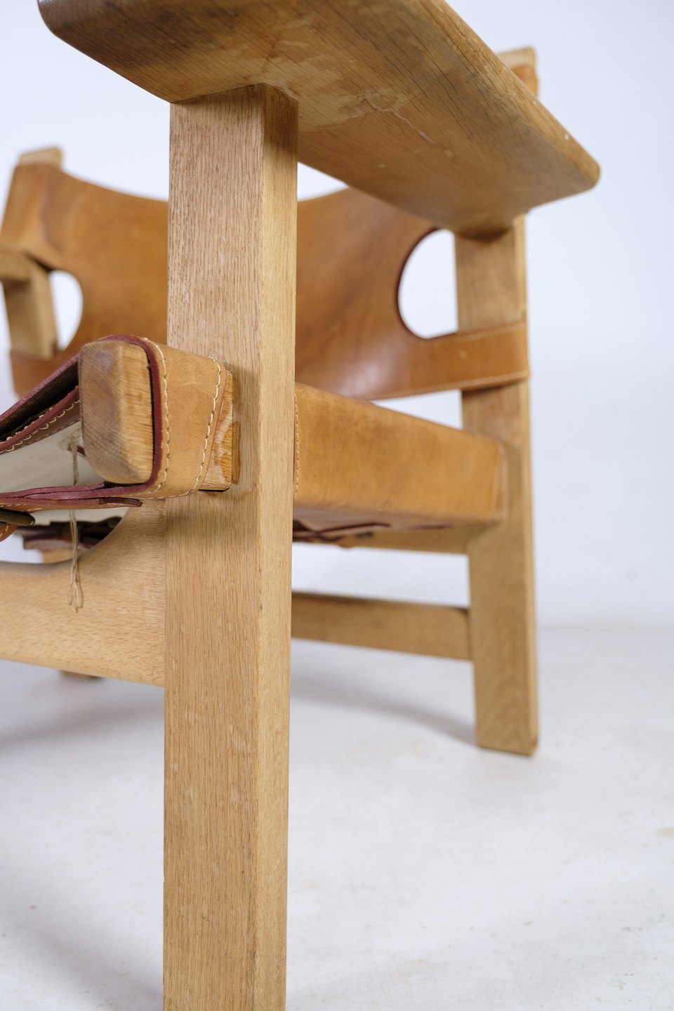 Den Spanske stol, model BM2226, egetræ & patineret læder, designet af Børge Mogensen i 1958.
