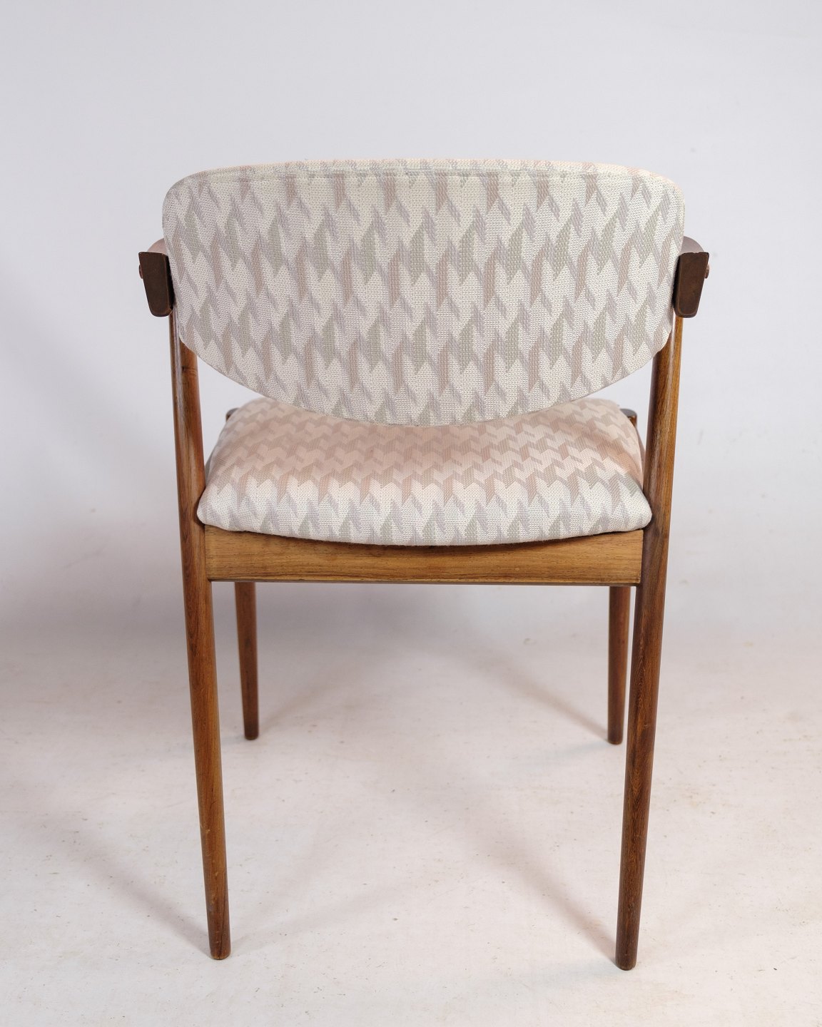 Stolens ryglæn er lavet af palisandertræ, der er kendt for sin varme og smukke farve. Træets naturlige årer og mønster giver hver stol sit eget unikke udseende. Stolens sæde er også lavet af palisandertræ og har en smuk, afrundet form, der giver en behagelig siddeoplevelse.