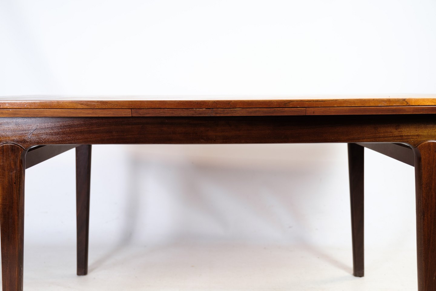 SolgtSpisebord i teaktræ med hollandsk udtræk af dansk design fra omkring 1960'erne. Står i fin brugt stand.