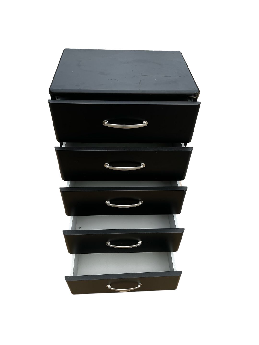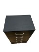 Kommodens robuste konstruktion og holdbare materialer gør den ikke kun til et stilfuldt møbelstykke, men også til et funktionelt opbevaringsmøbel. Den sorte farve giver den et tidløst udtryk, der passer ind i forskellige indretningsstile og gør den til et alsidigt valg for ethvert hjem eller kontor.