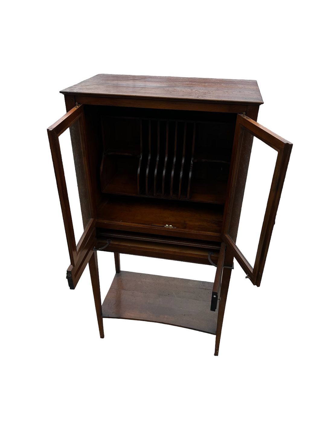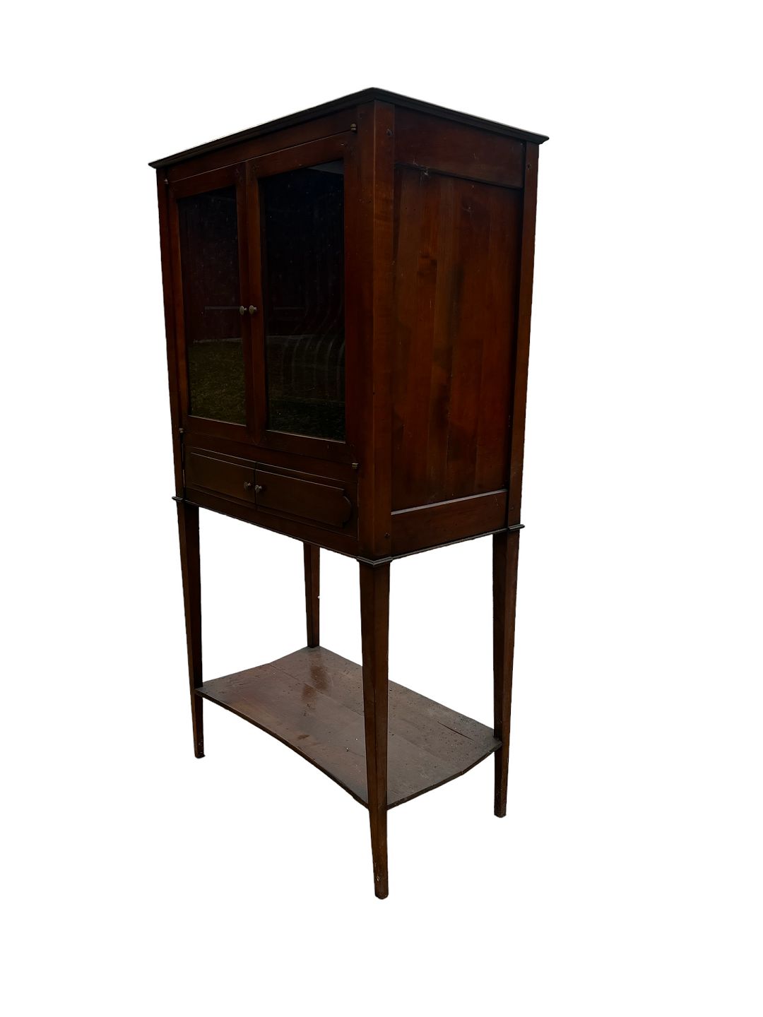 Fransk glasskab i mørkt træ med hylde fra omkring år 1890'erne