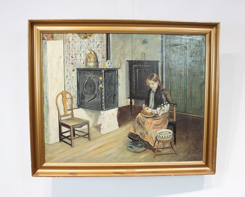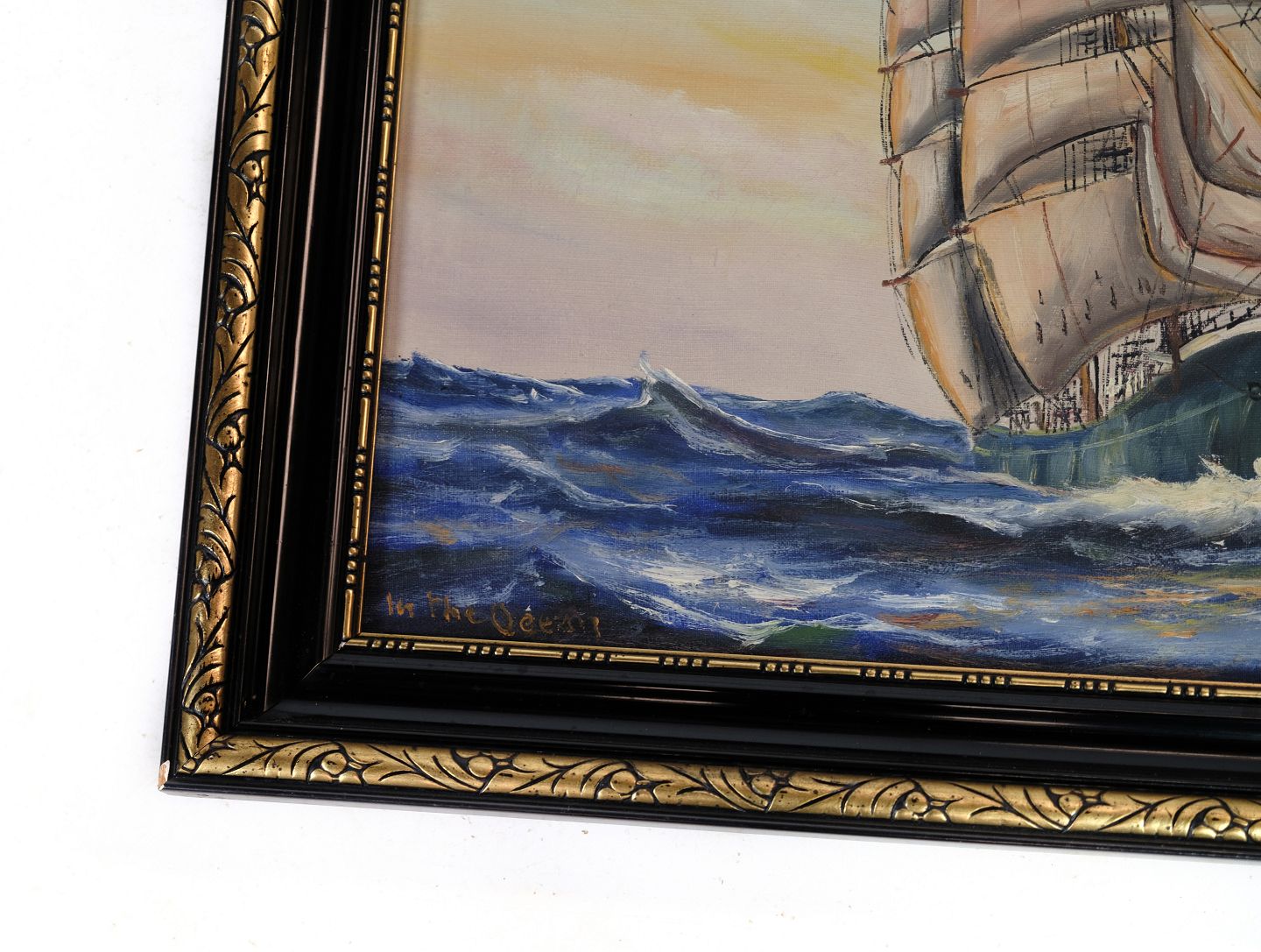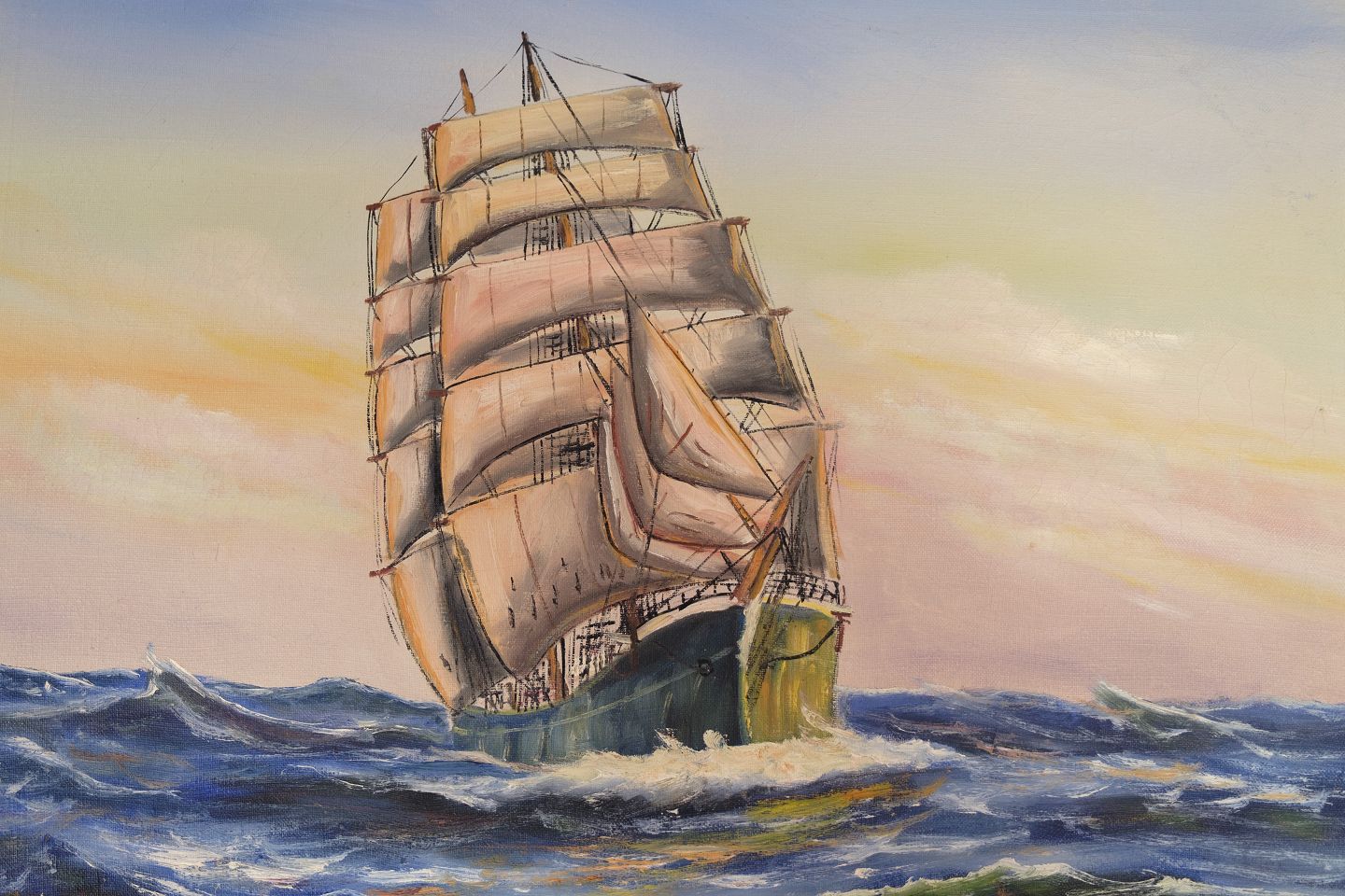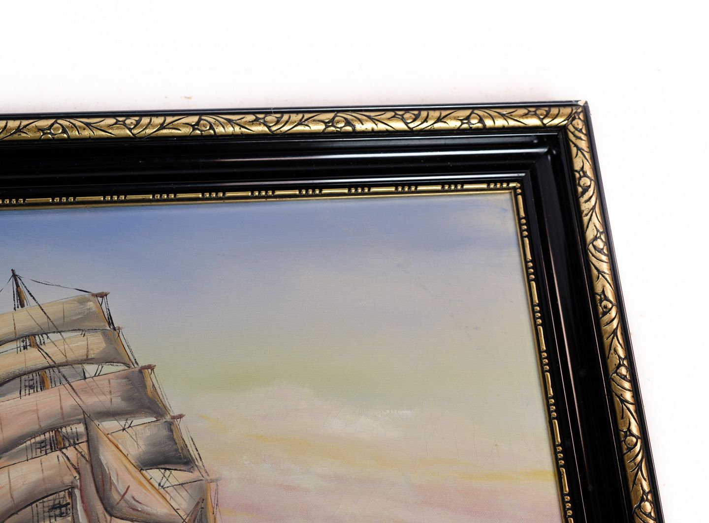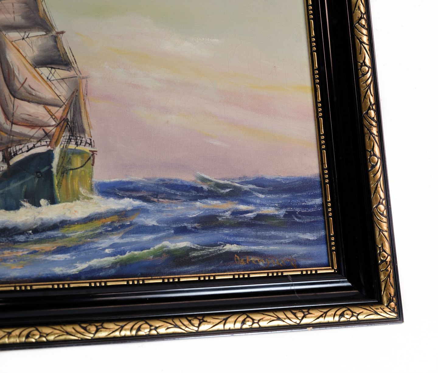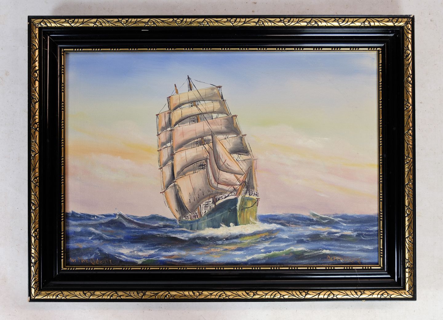 Oliemaleri med marine motiv og med sort ramme fra omkring 1890. Signeret
