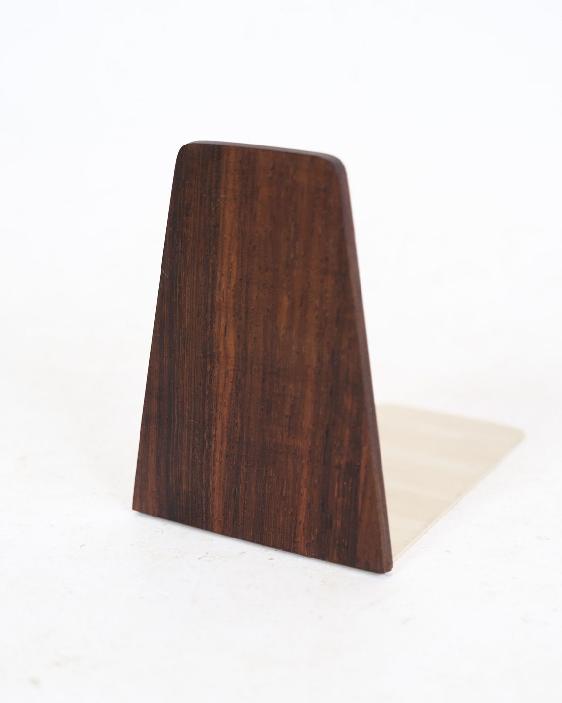 SolgtBogstøtte i palisander med stålbund fra omkring 1960'erne.