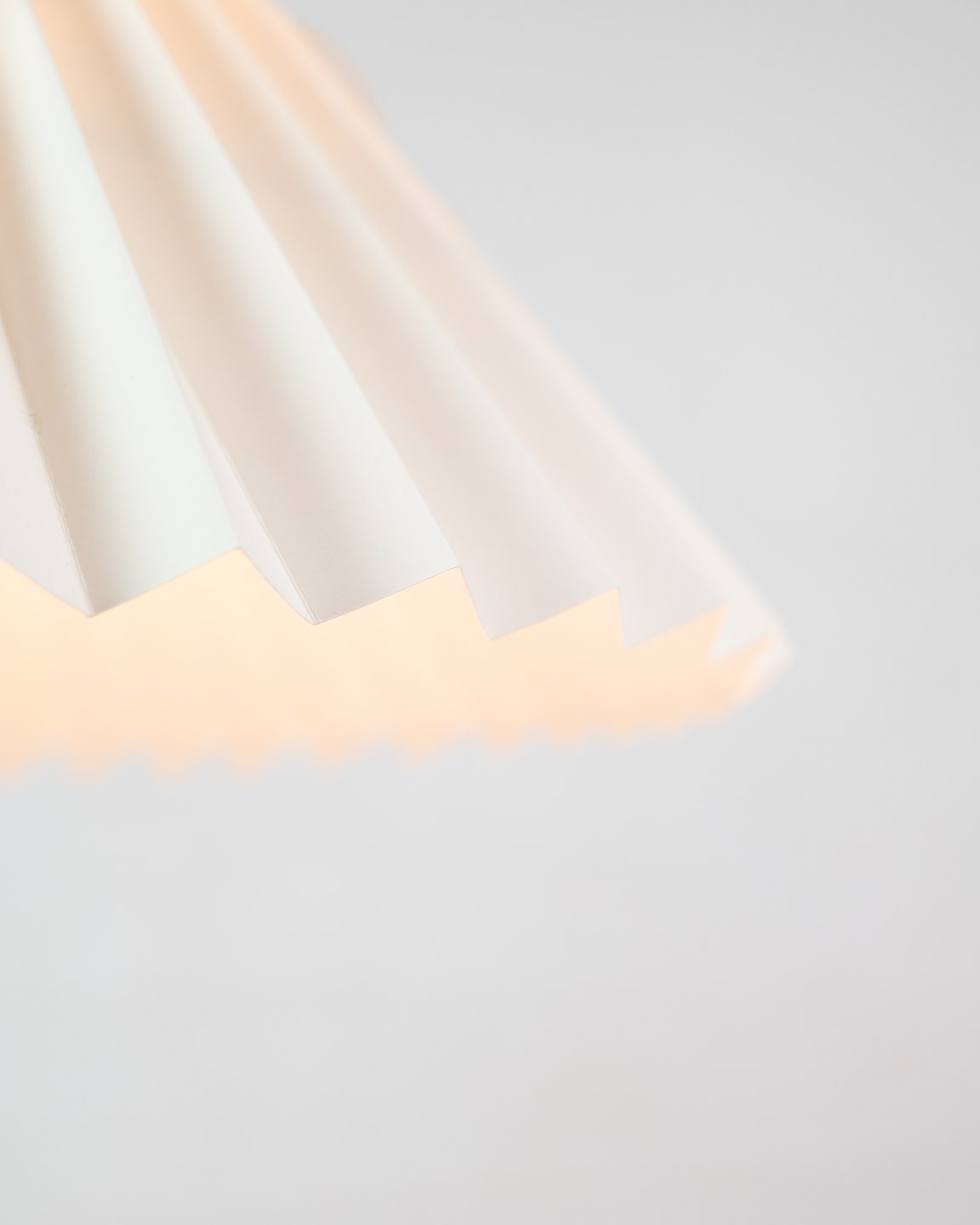 Mundblæst glas er et unikt materiale, der giver lampen et organisk udseende og tilfører den en vis skrøbelighed og kunstnerisk karakter. Hver lampe er håndlavet og unik på grund af den mundblæste proces.