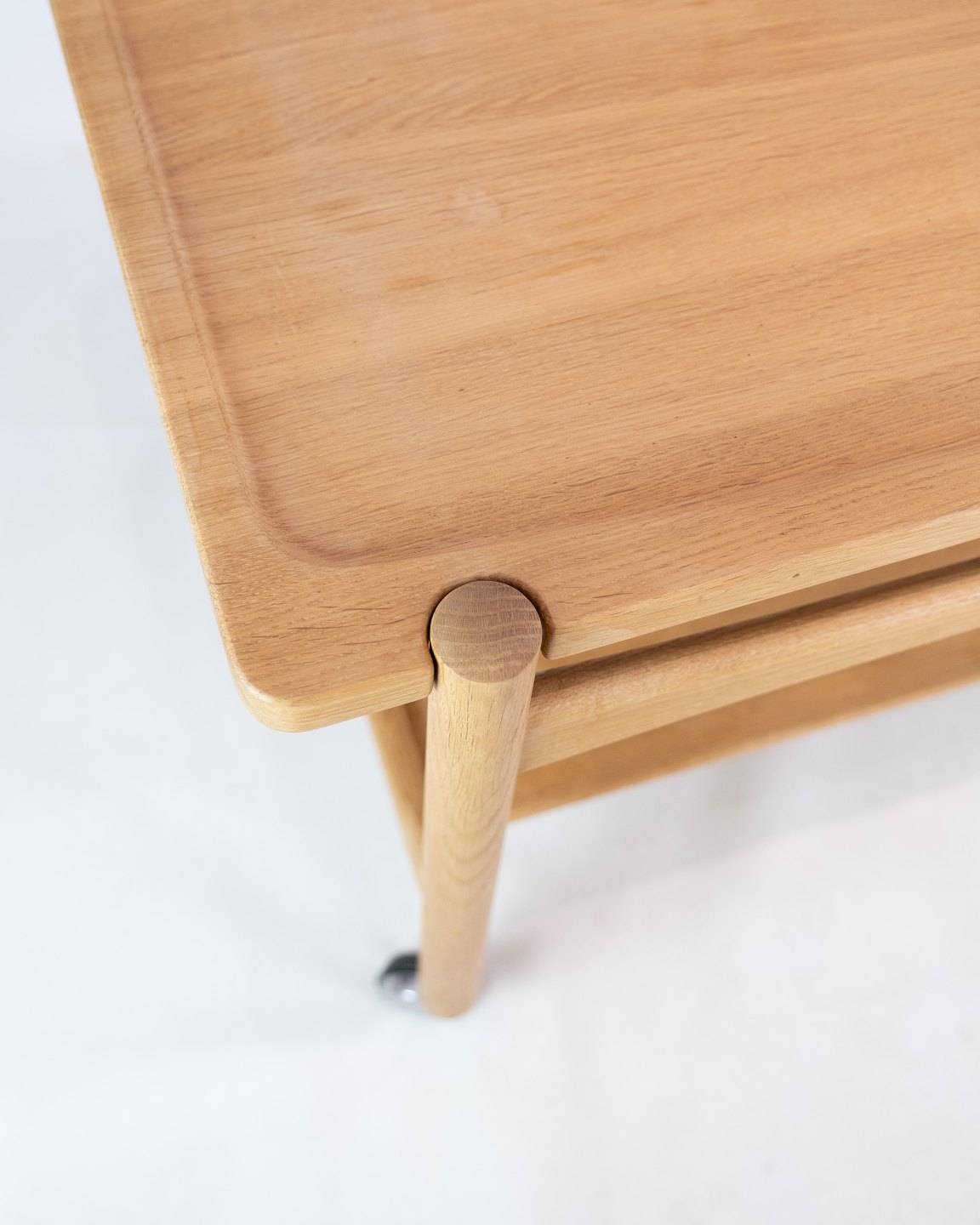 Hans J. Wegners design tilfører en tidløs elegance og funktionalitet til serveringsvognen, hvilket gør den til en eftertragtet og værdsat møbelgenstand. Med sin massivt egetræskonstruktion er "AT 48" serveringsvognen et smukt eksempel på dansk designarv, der vil tilføje en elegant touch til ethvert hjem eller interiør.