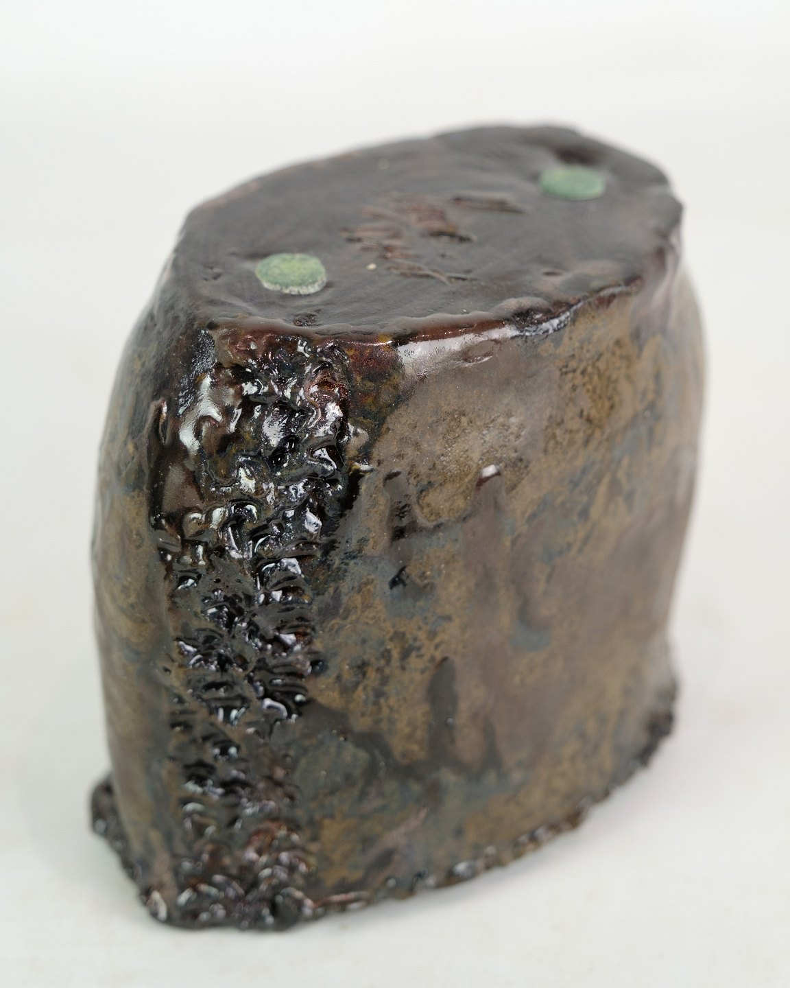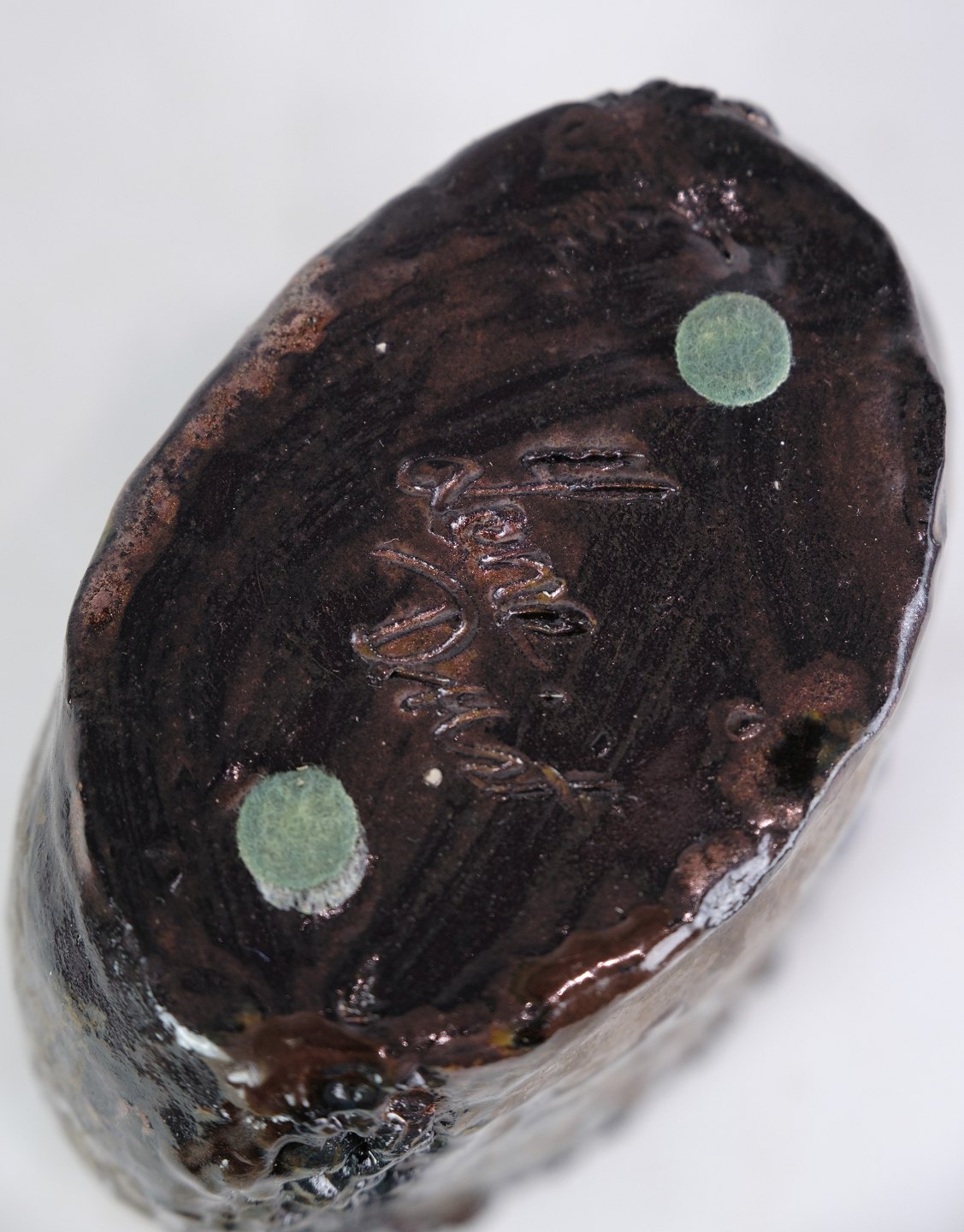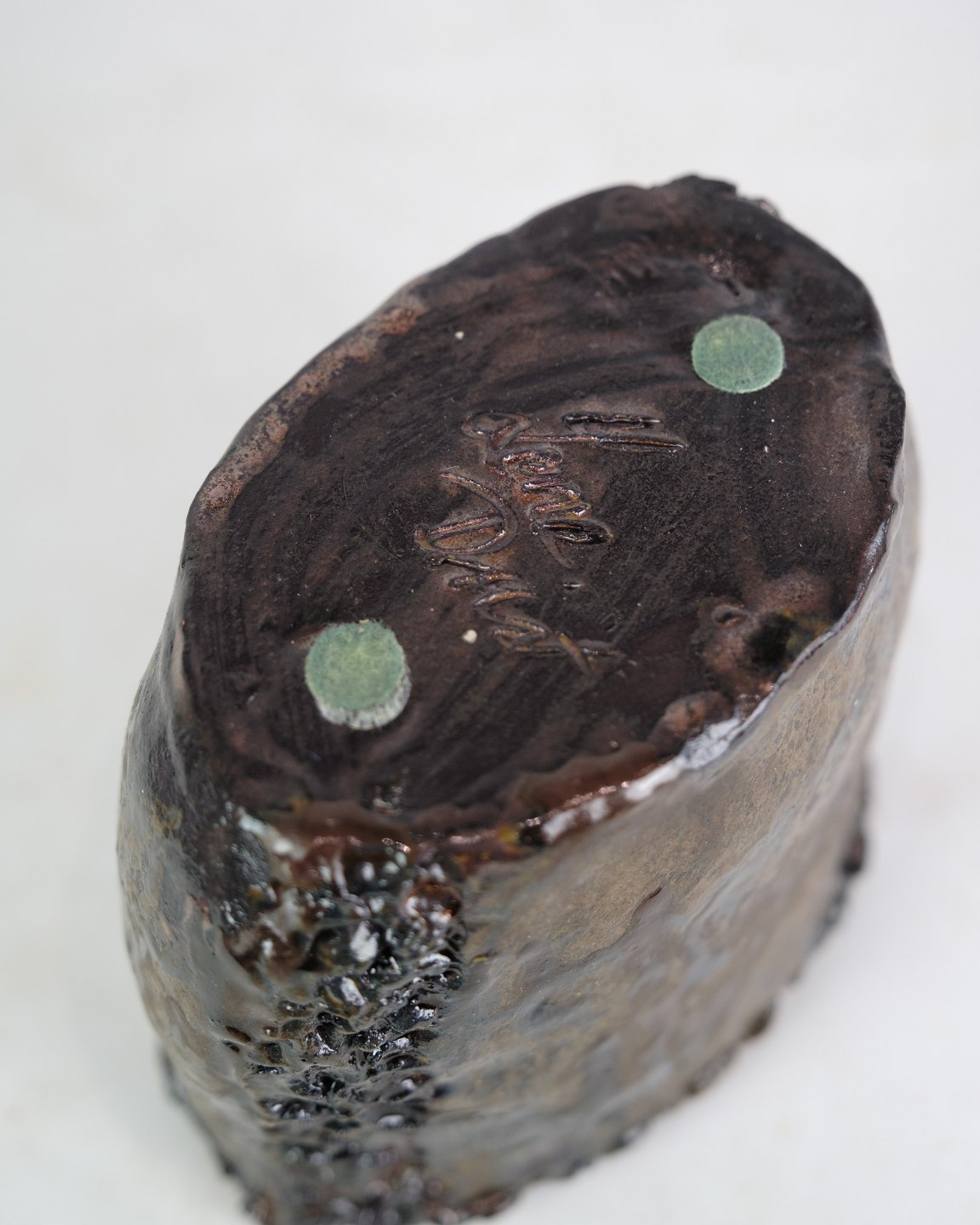 En oval keramik vase med brunlige farver med fin glassur fra omkring år 1960'erne.