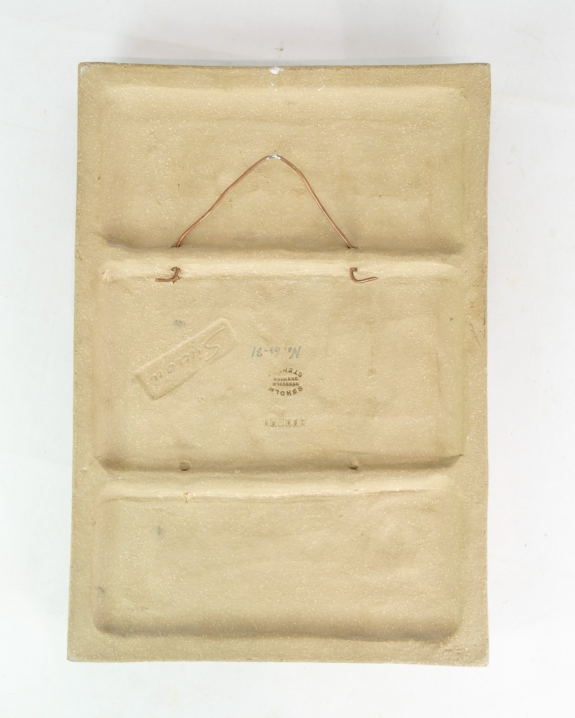 Relief af Søholm keramik med afrikansk motiv med brun og blålige farver fra omkring 1960'erne.