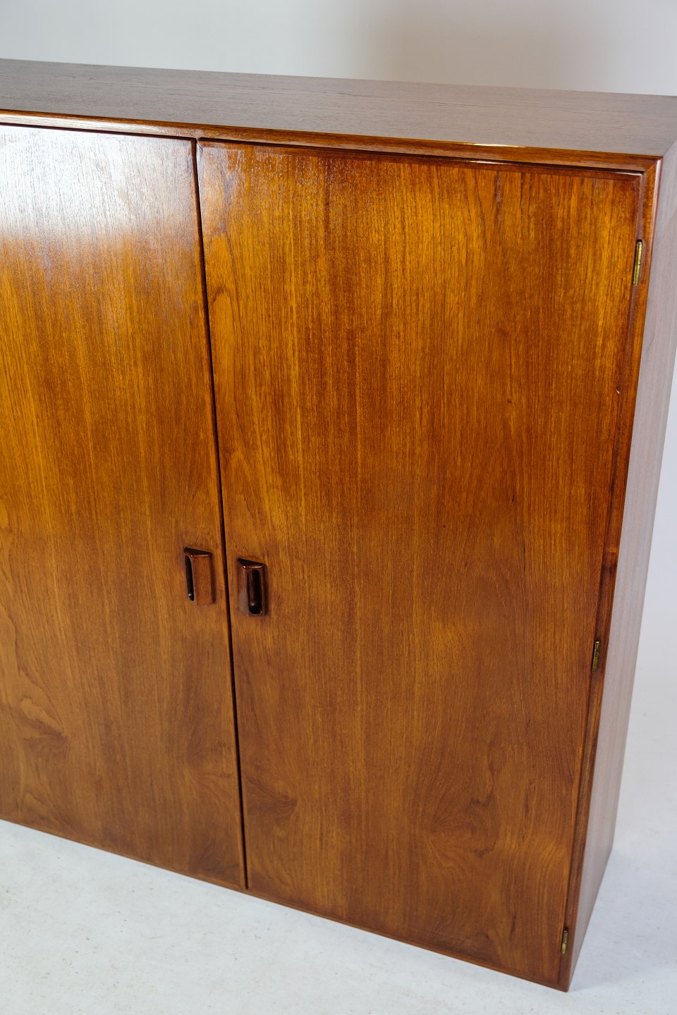 Skabet har fine greb, der tilføjer et elegant præg og gør det nemt at åbne og lukke dørene. Teaktræet giver skabet en varm og naturlig glød og tilføjer varme til ethvert rum. Mogensens designfilosofi om at kombinere æstetik med funktionalitet er tydeligt afspejlet i dette skab, som både er smukt at se på og praktisk i brug.
