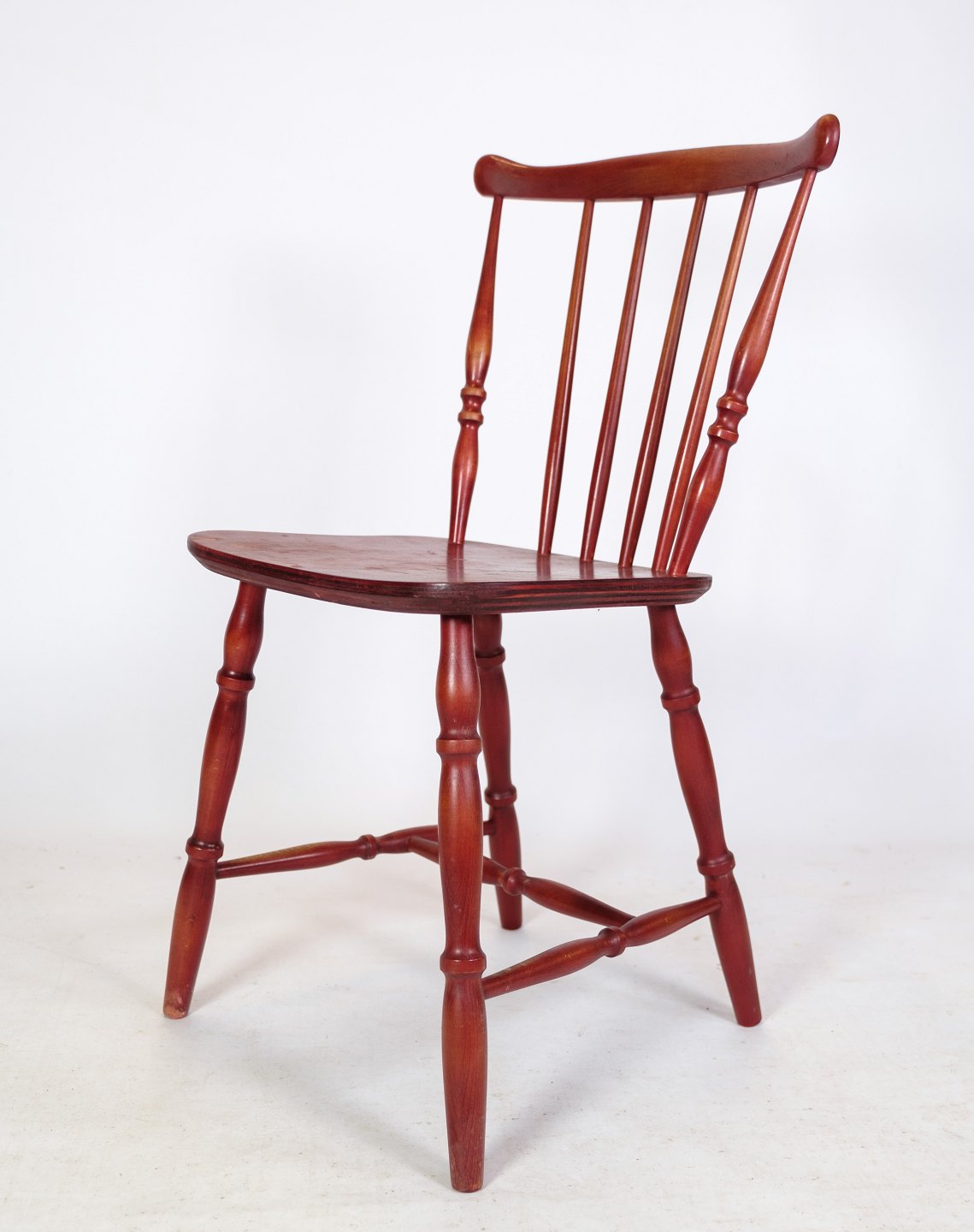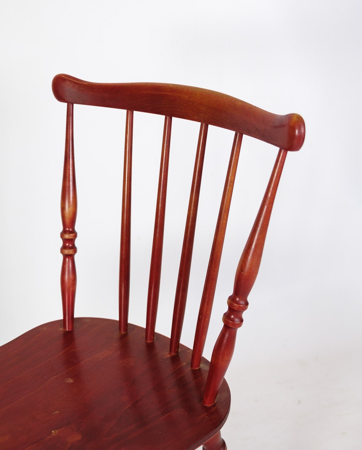 Dining room chairs / Stick chairs in both natural, brown and red colors of Danish design from Farstrup Møbelfabrik from around the 1960s.