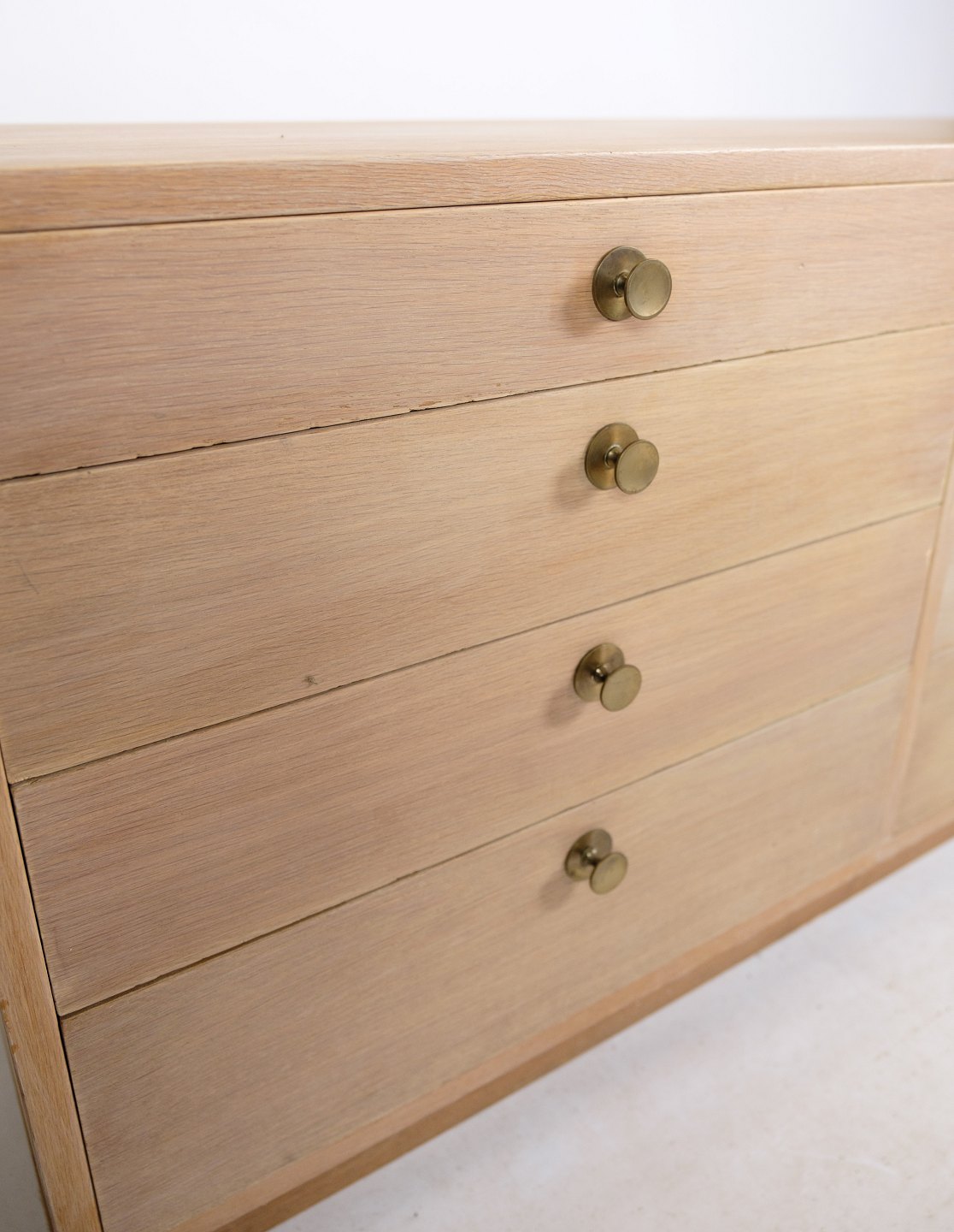 SolgtSkænk / Kommode, designet af Børge Mogensen af egetræ med 8 skuffer og messing greb fra omkring 1960'erne.