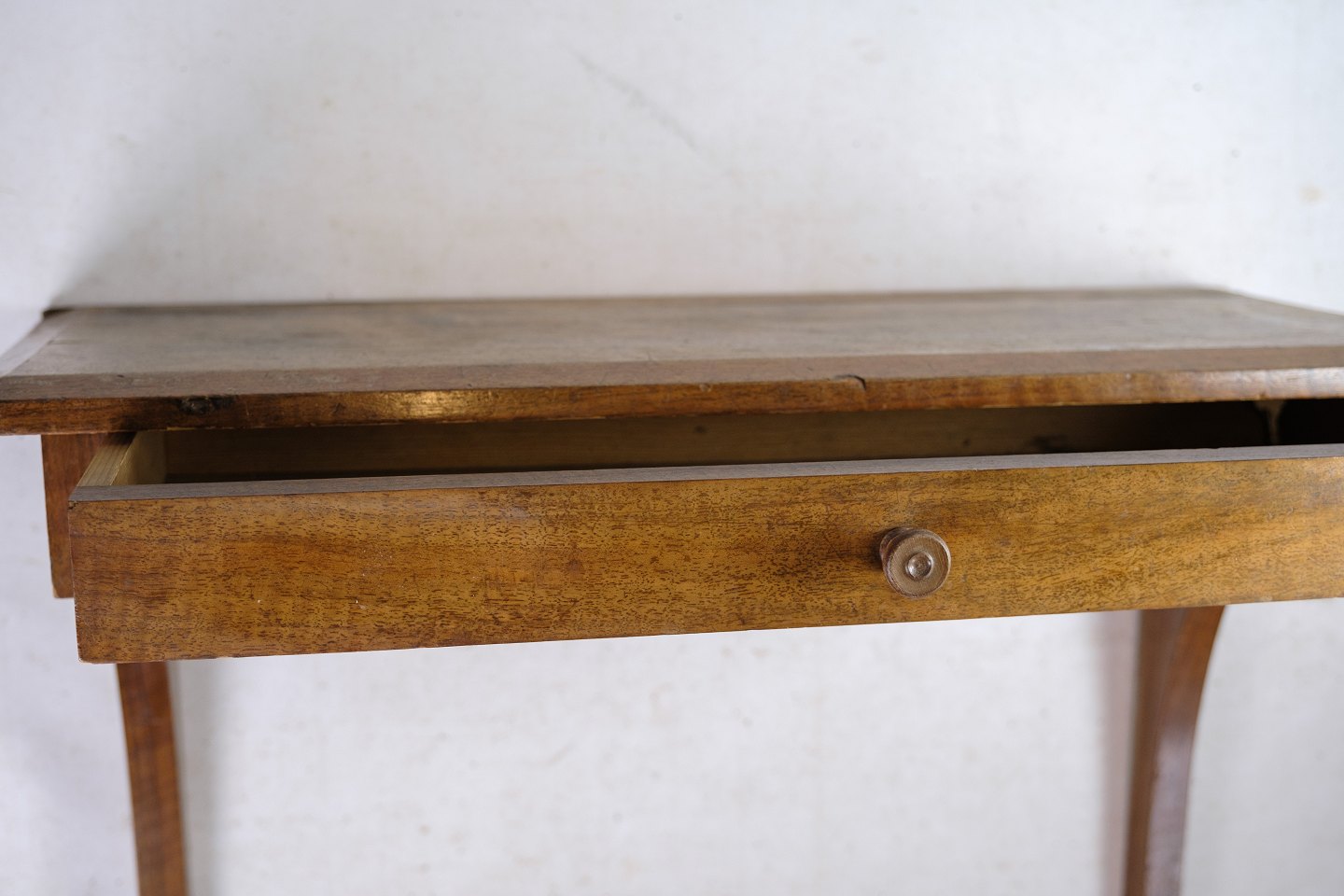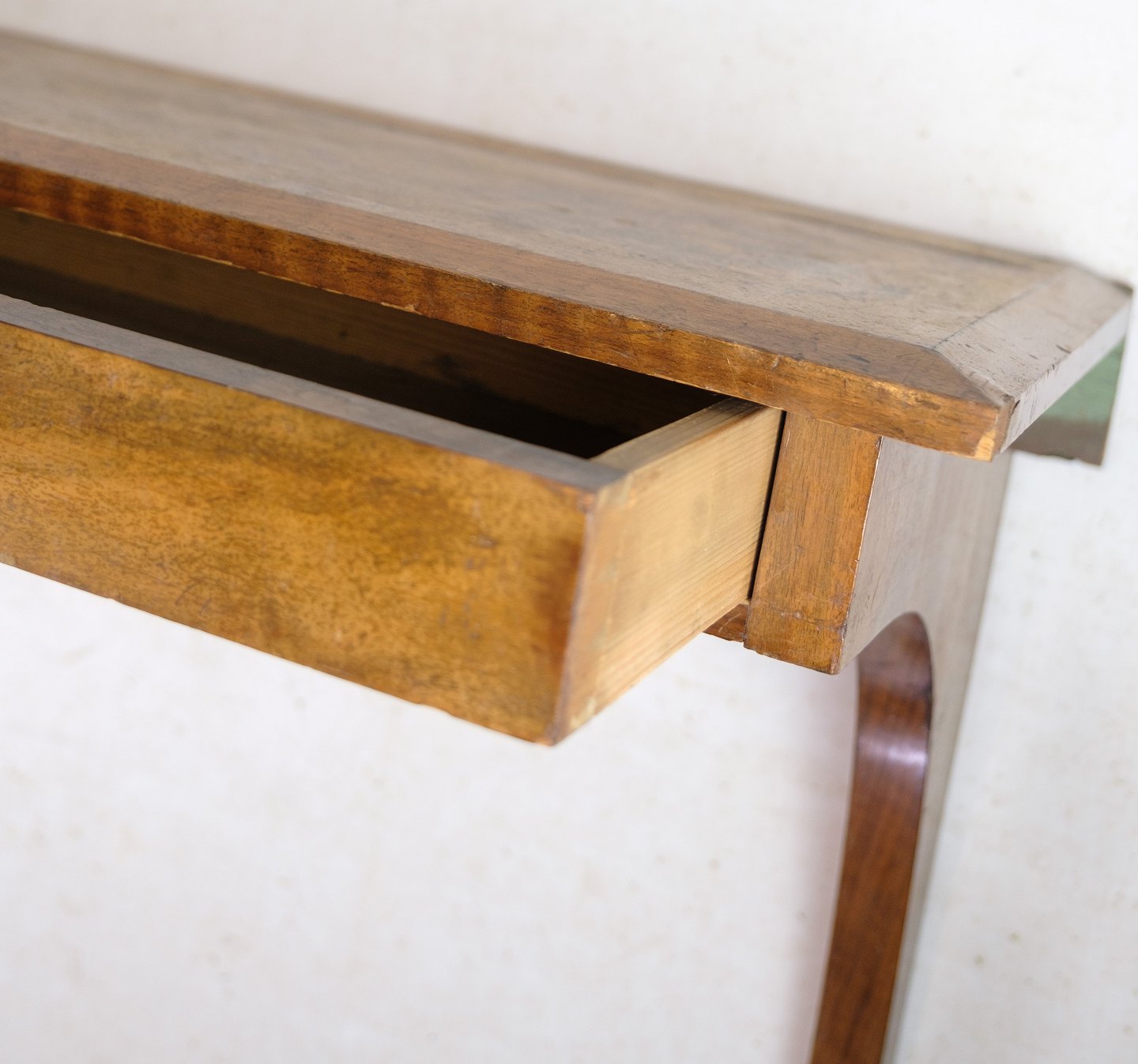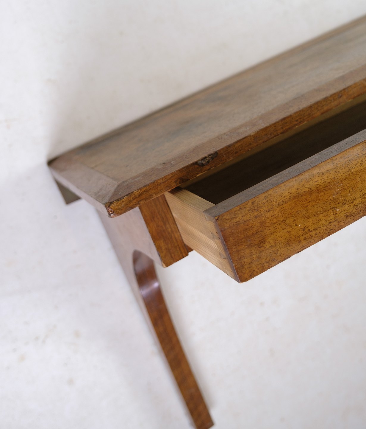 SolgtOphængt vægkonsol med skuffe udført i nøddetræ fra omkring 1920'erne.