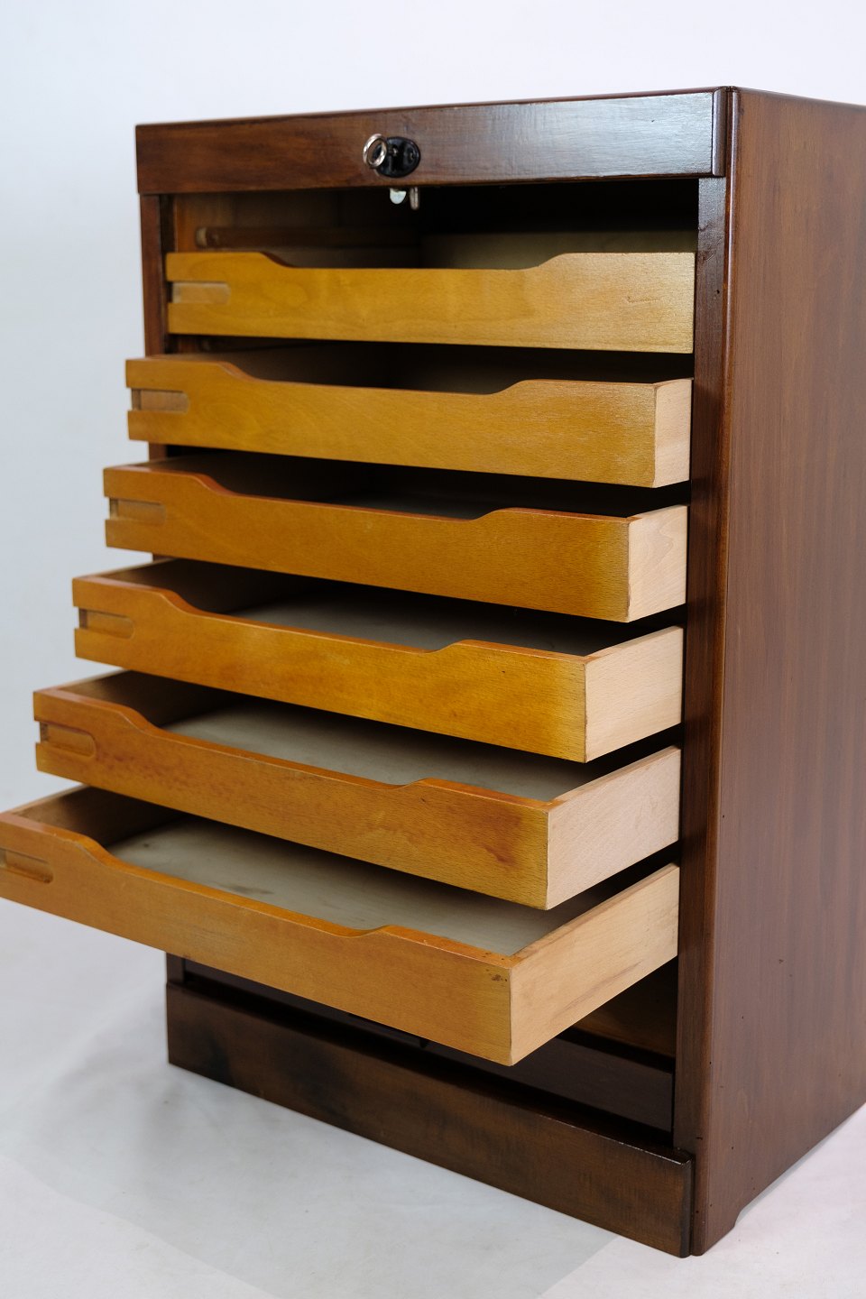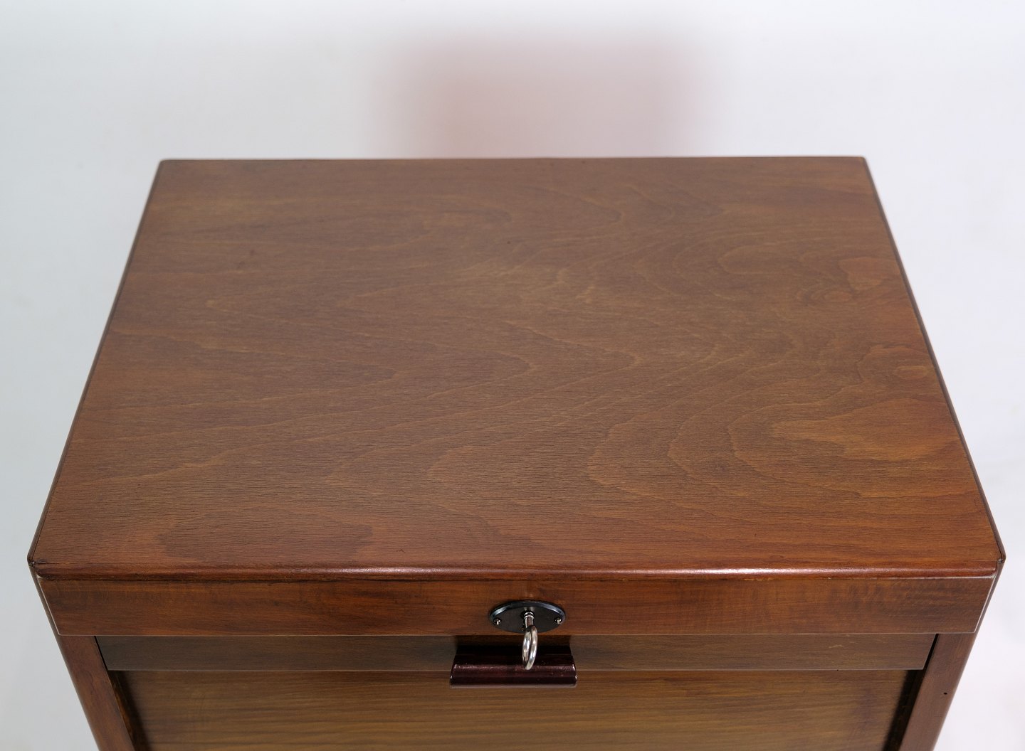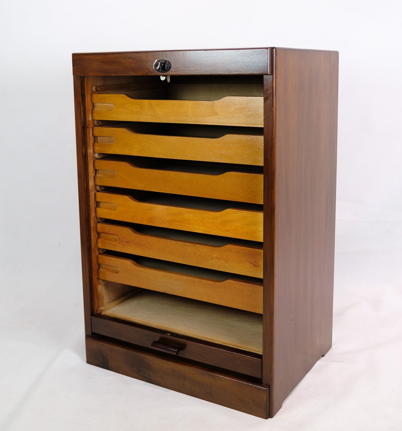 Jalousi skab i poleret træ med skuffer fra omkring 1960'erne.