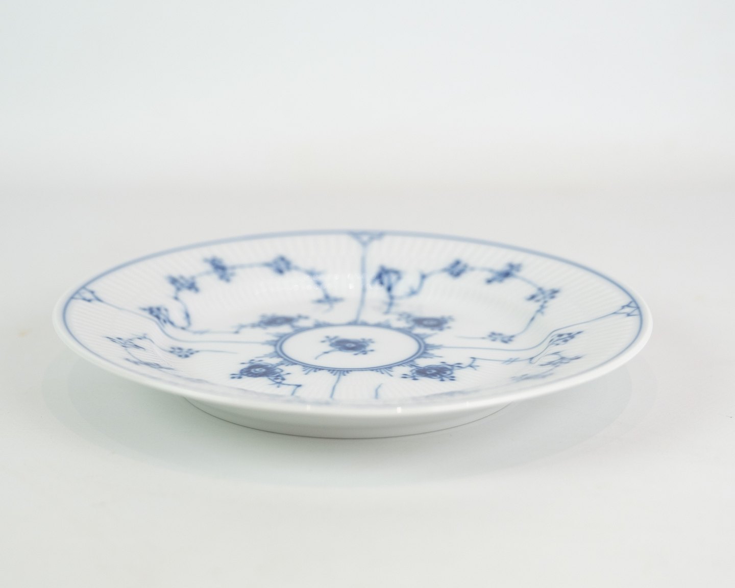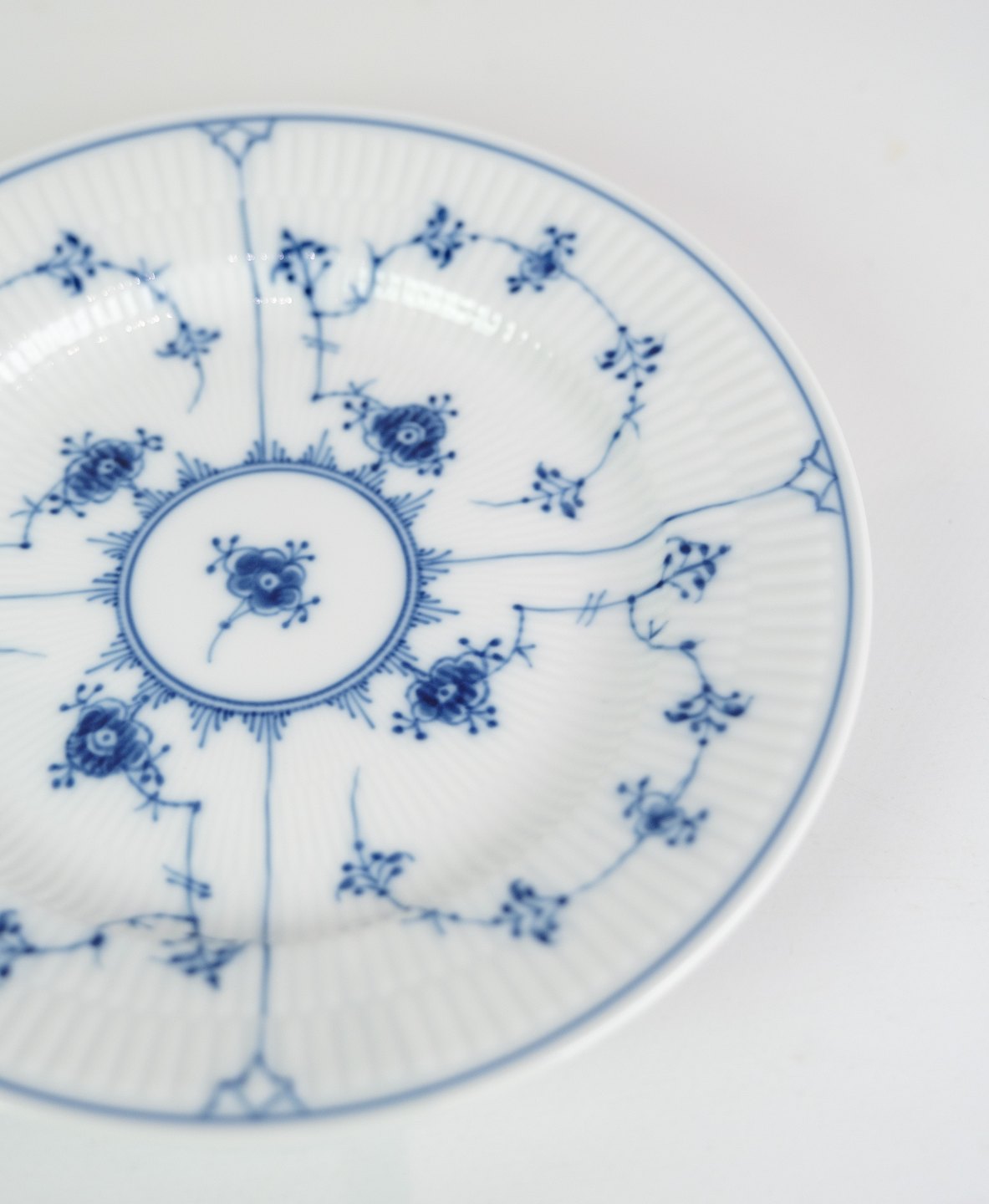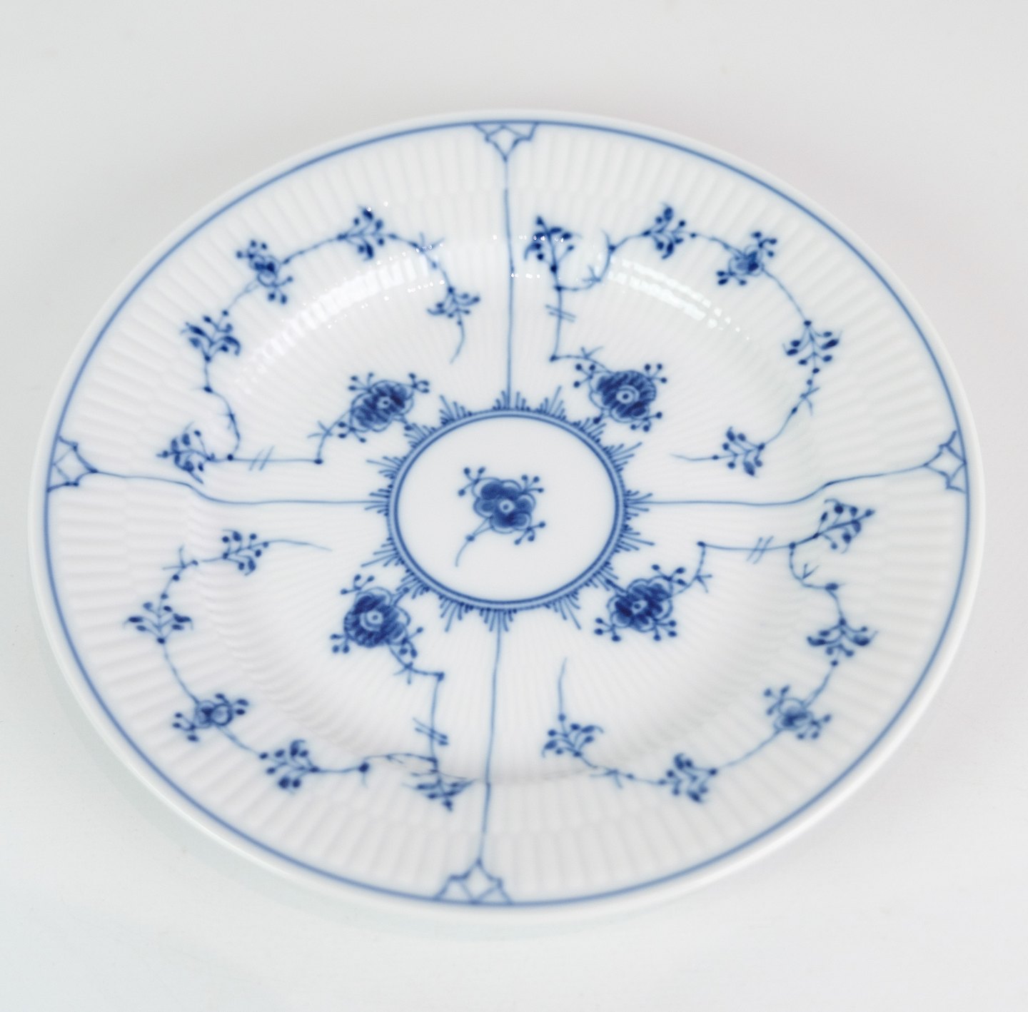 SolgtRoyal Copenhagen Musselmalet Riflet frokosttallerken er en smuk og klassisk del af den ikoniske Musselmalet Riflet-serie, der har prydet bordene i generationer, netop denne type tallerken er af ældre dato.