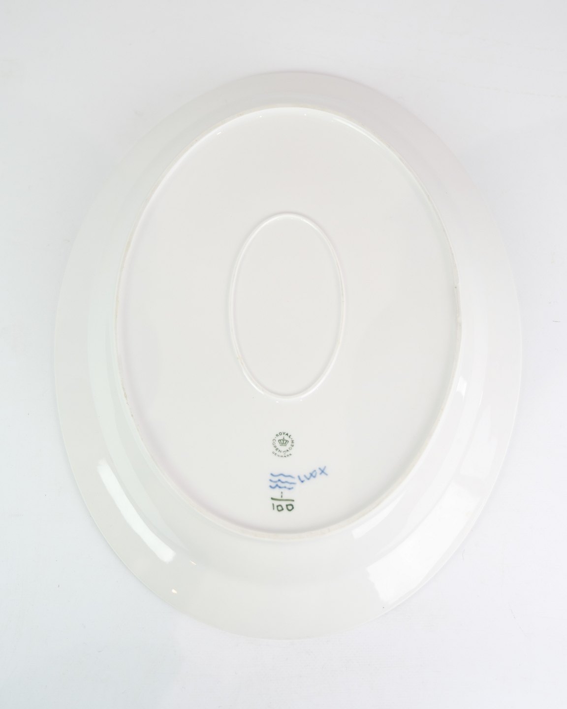 Nummeret 1/100 refererer til fadets unikke design og dekoration, og det er en smuk repræsentation af Royal Copenhagens mesterværker og deres høje standard for kvalitet og detaljer.