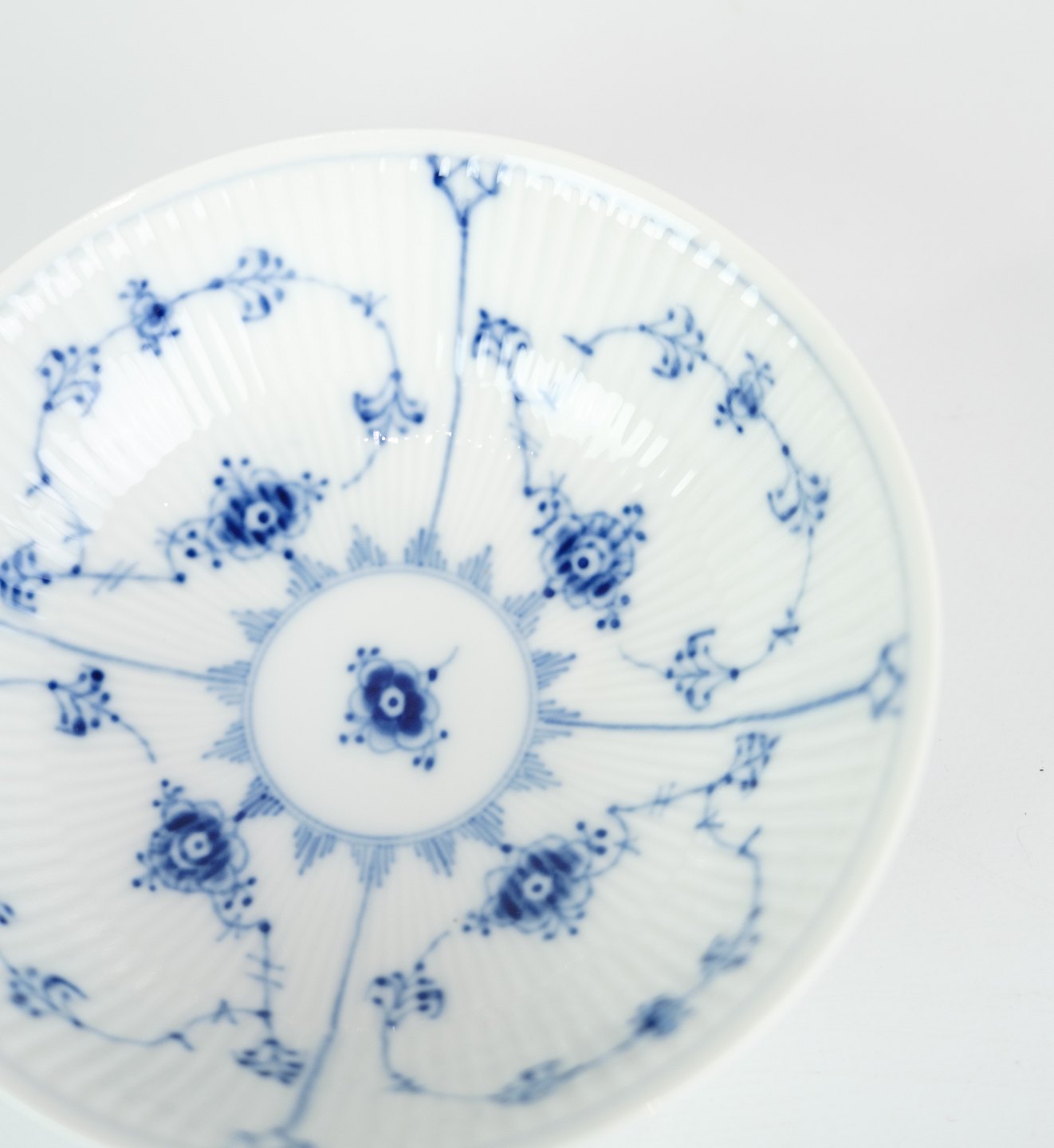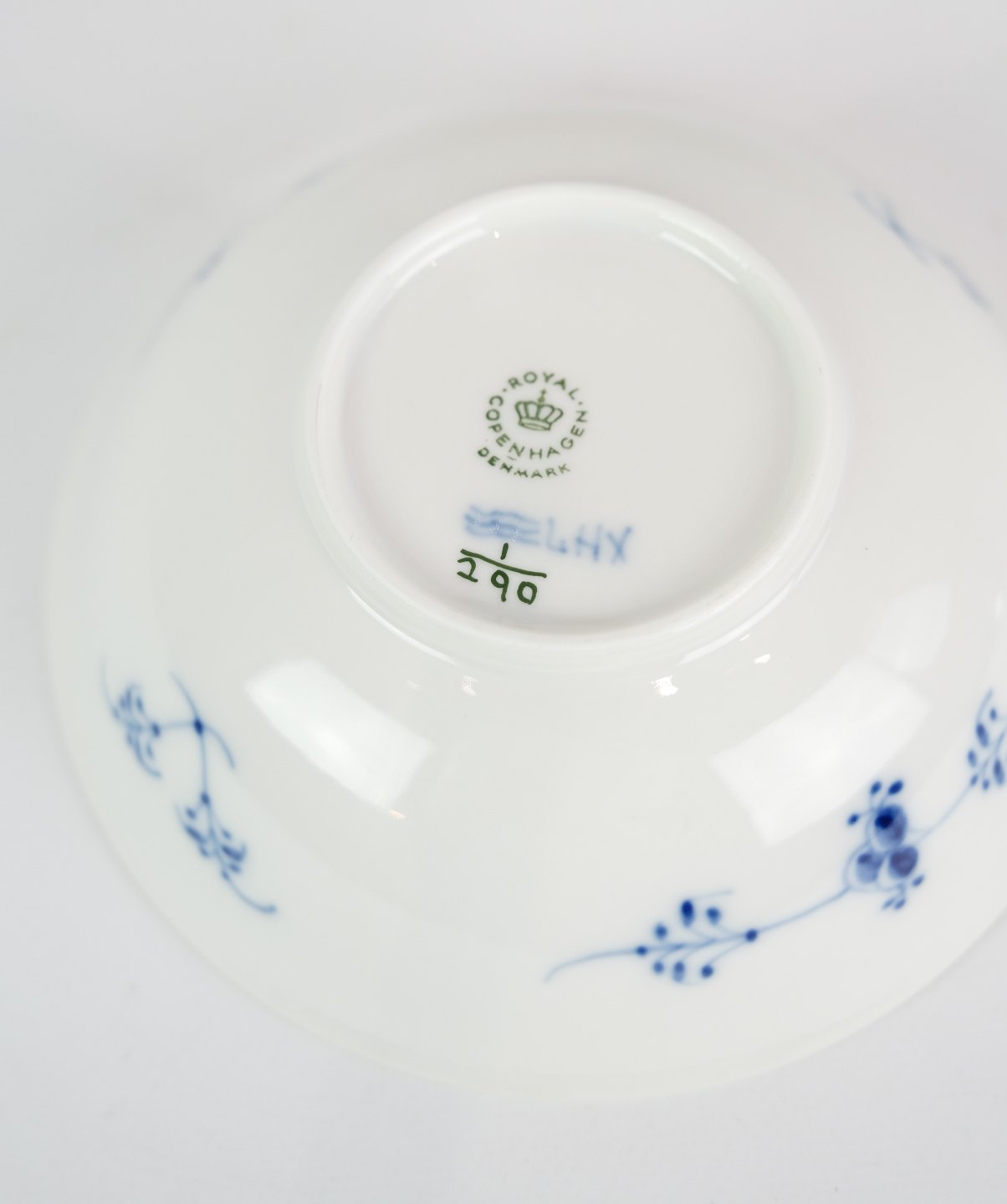 Denne Ymerskål er en del af den berømte Mussel Painted-serie af Royal Danish Porceain, der er fejret for sine sarte blå mønstre, der pryder skålens overflade, og tilføjer en atmosfære af sofistikering og dansk kulturarv til din madoplevelse.