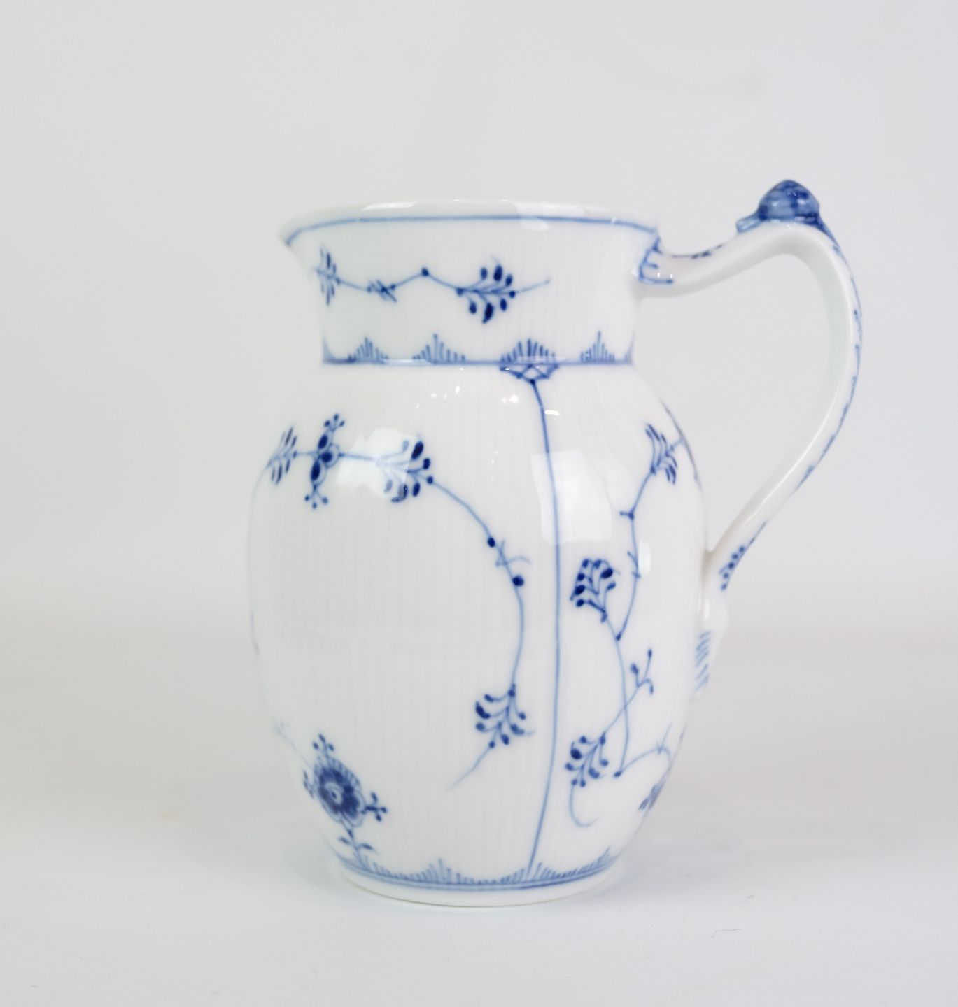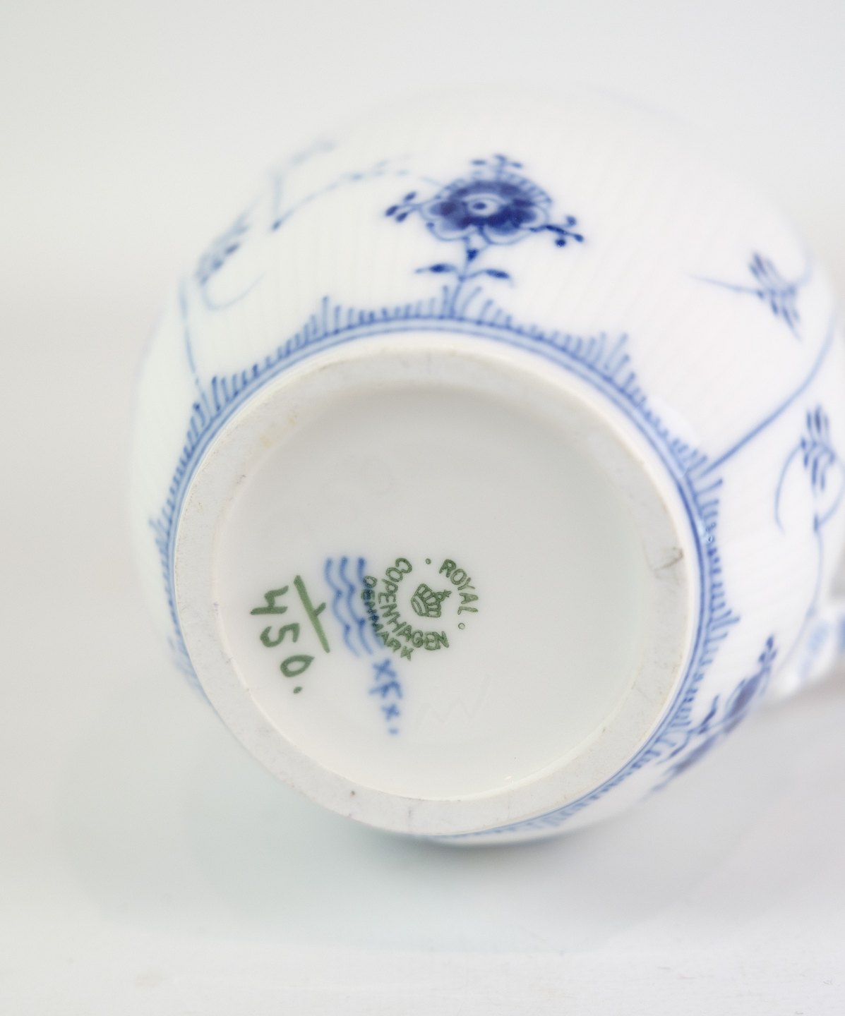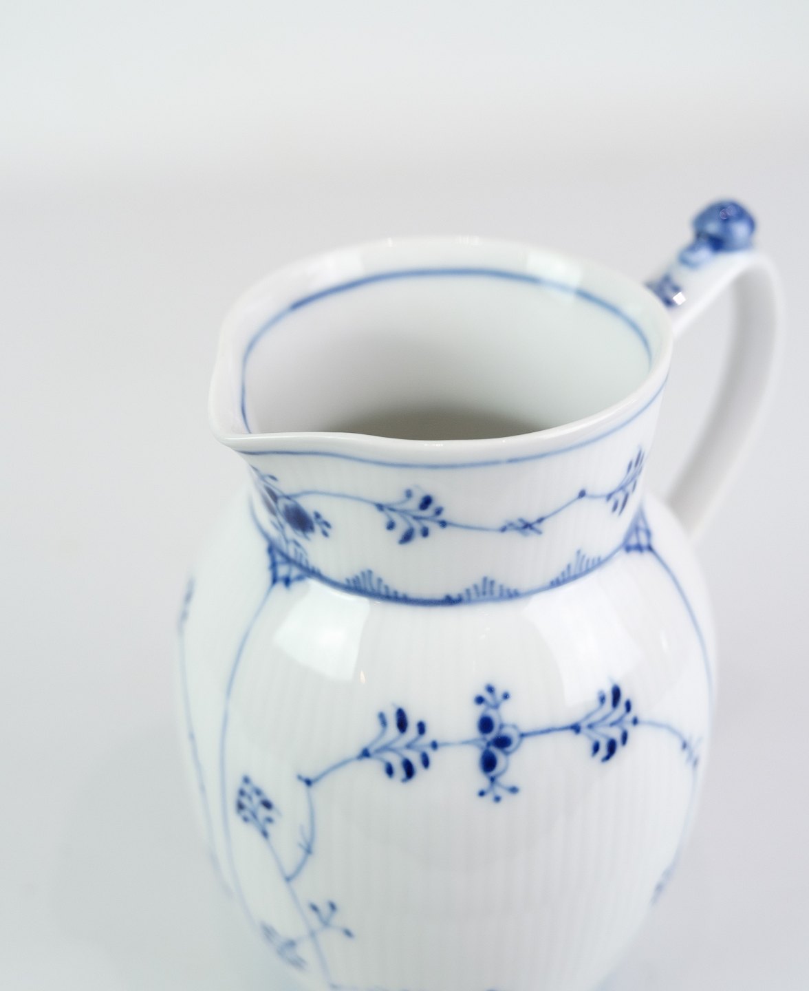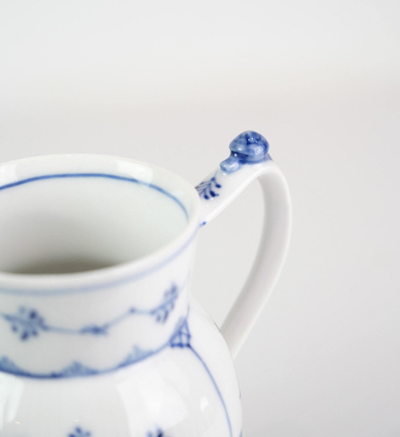 Denne mælkekande er en del af den ikoniske Musselmalet Riflet-serie, som er kendt for sit karakteristiske Riflet-mønster. Mønsteret består af delikate blåmønstre, der pryder kandens overflade og tilføjer en fornemmelse af tradition og dansk kultur til din servering.