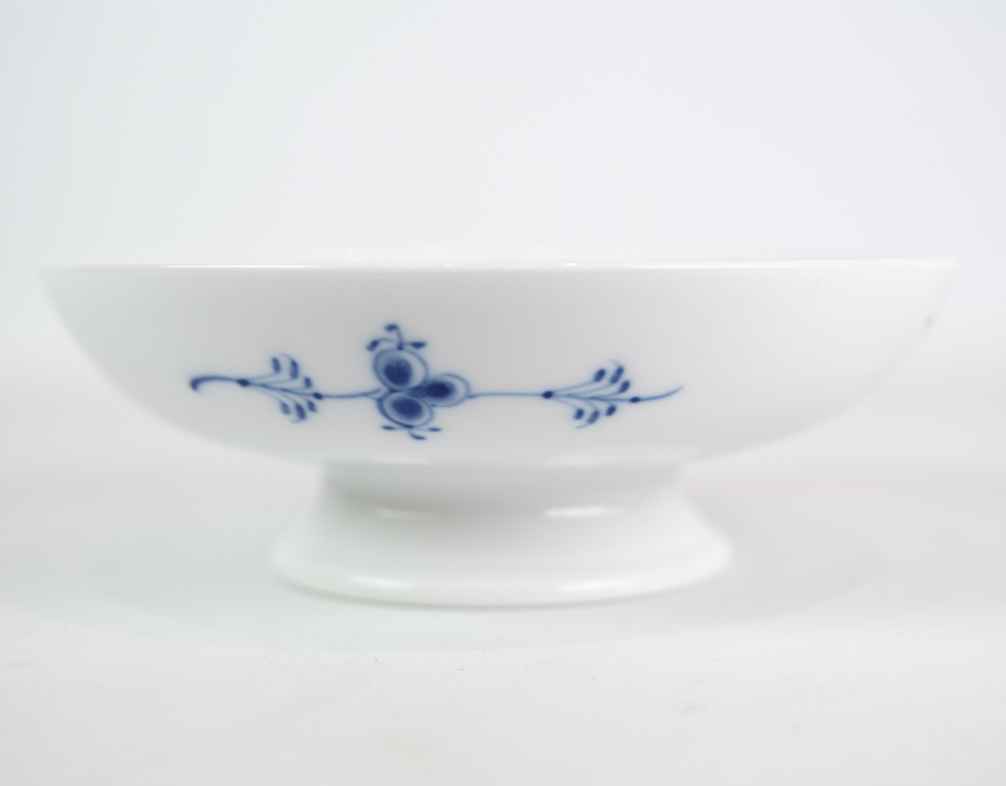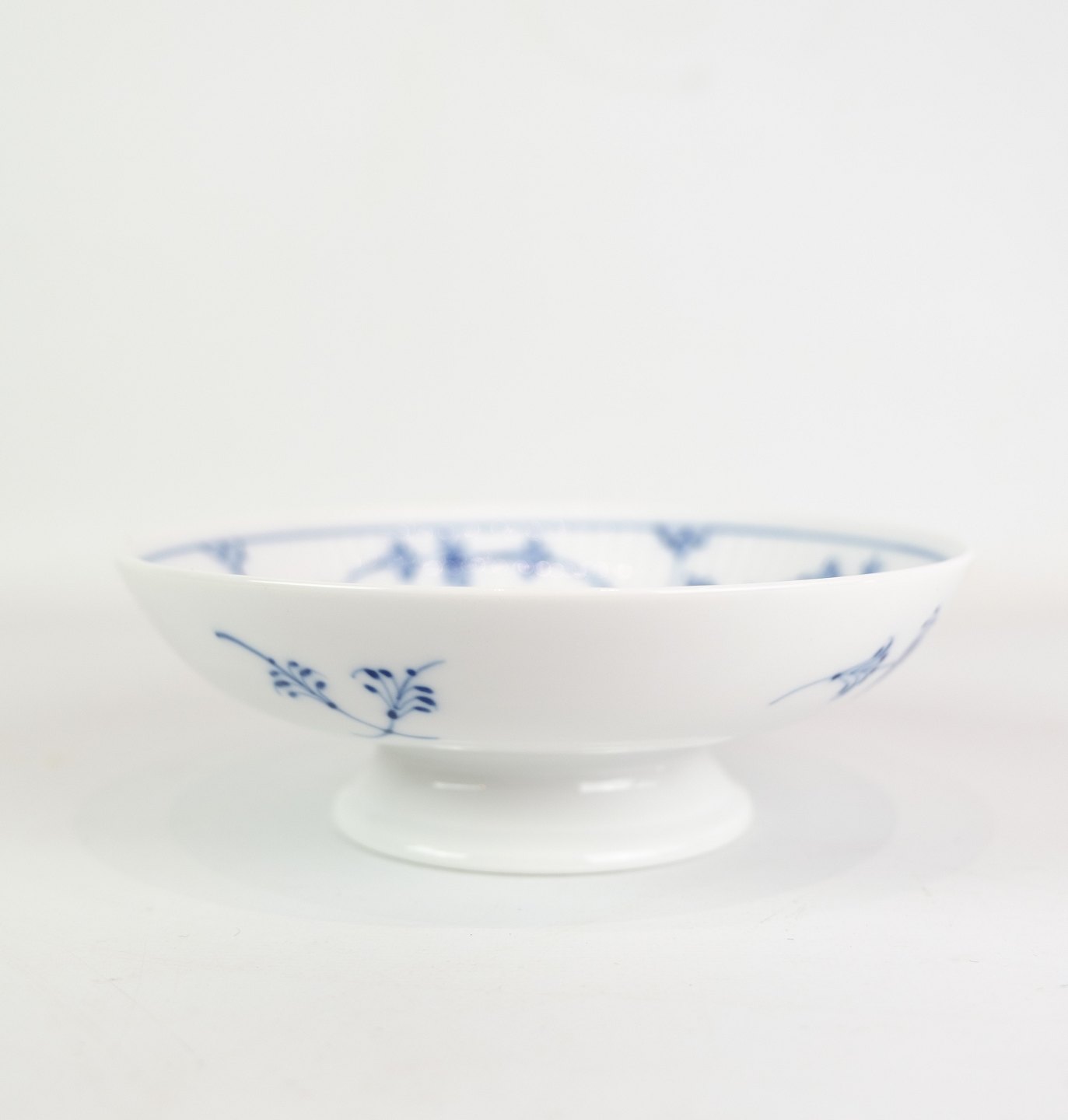 SolgtSkålen på fod fra Royal Copenhagen's Musselmalet Riflet-serie med nummer 1/18 er et raffineret og tidløst stykke porcelæn, der udstråler enestående elegance og kunsthåndværk.