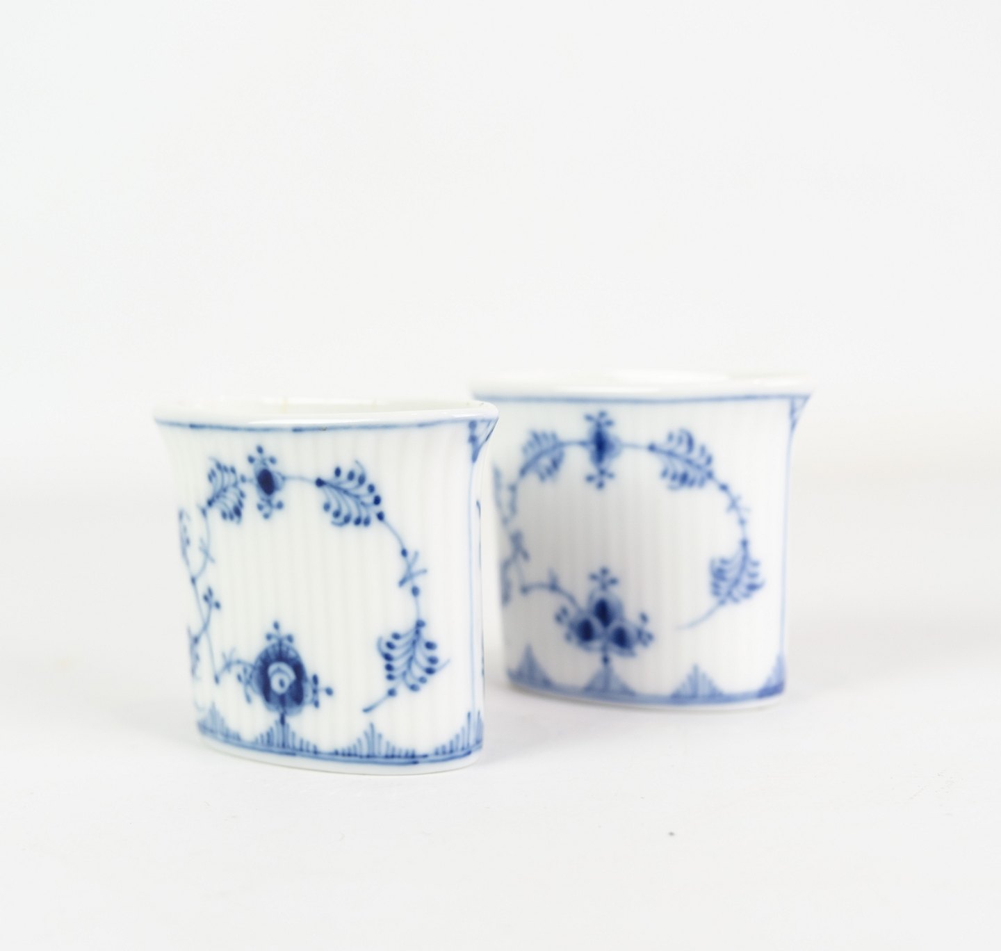 SolgtRoyal Copenhagen's Musselmalet Riflet ovalt bæger/lille vase med dekorationsnummer 1/2183 er en smuk og alsidig genstand, der udstråler klassisk elegance.