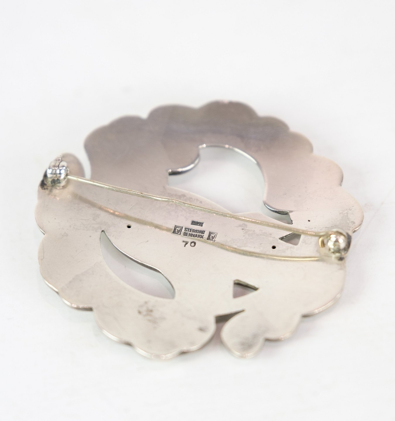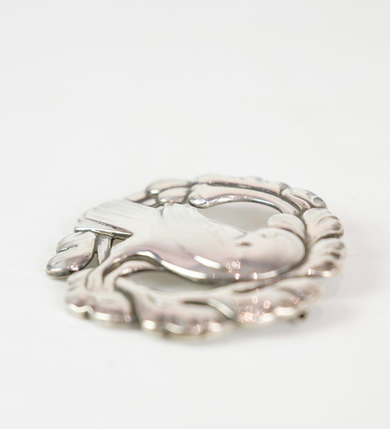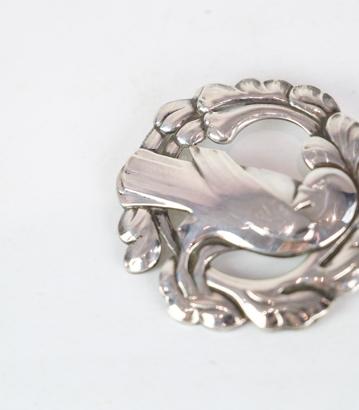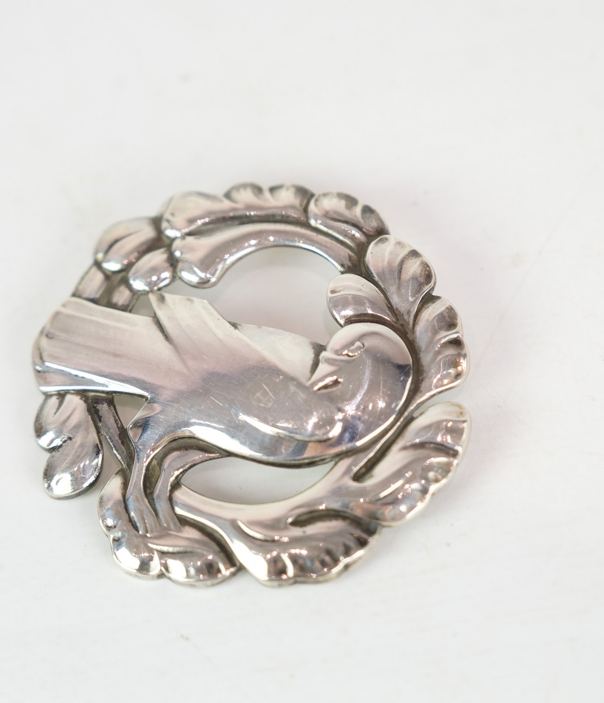 SolgtStor broche af Georg Jensen med velkendt fuglemotiv i original æske i sterling sølv 925 model nr. 70